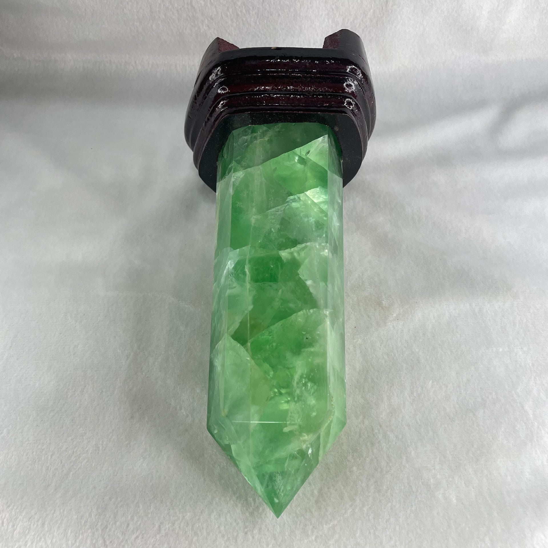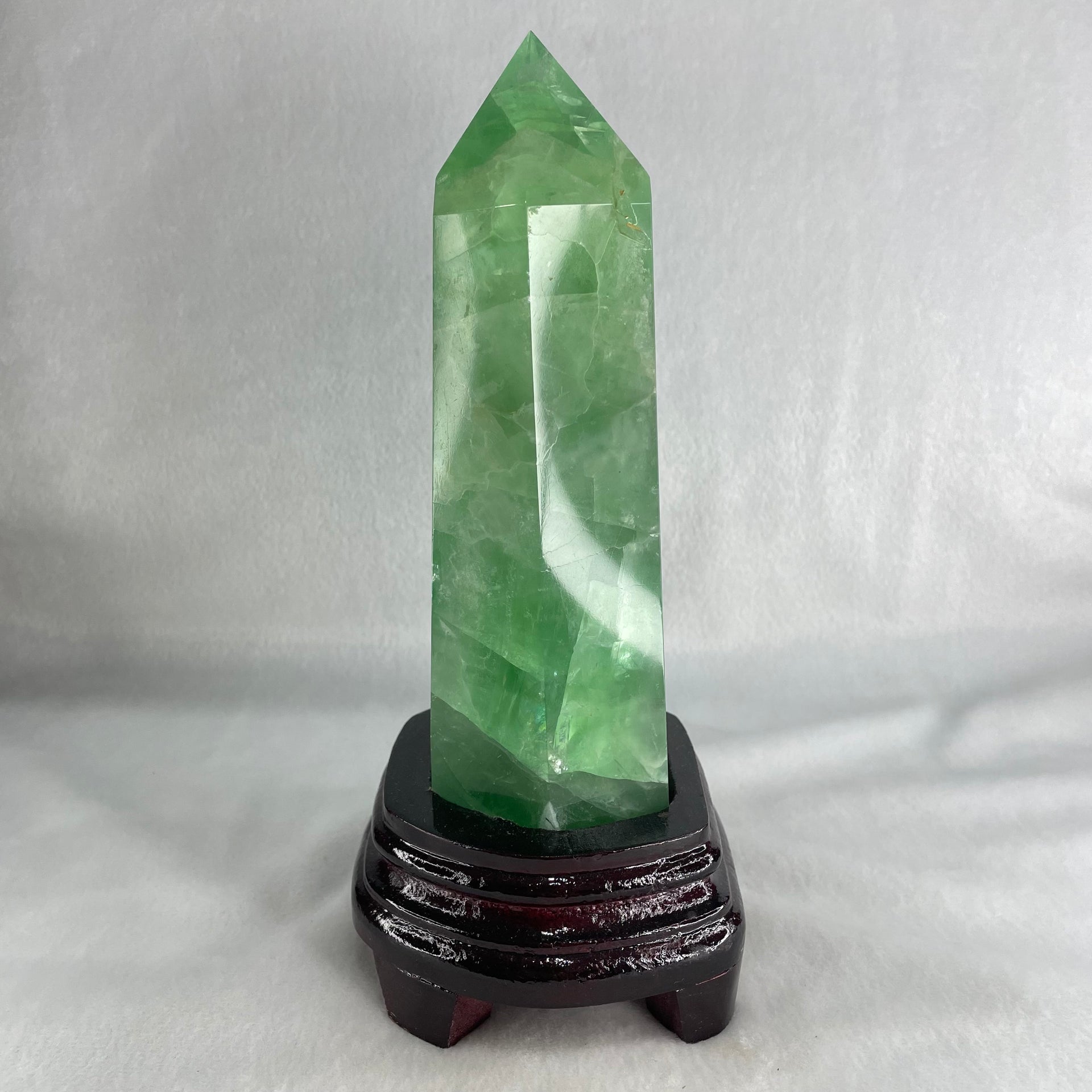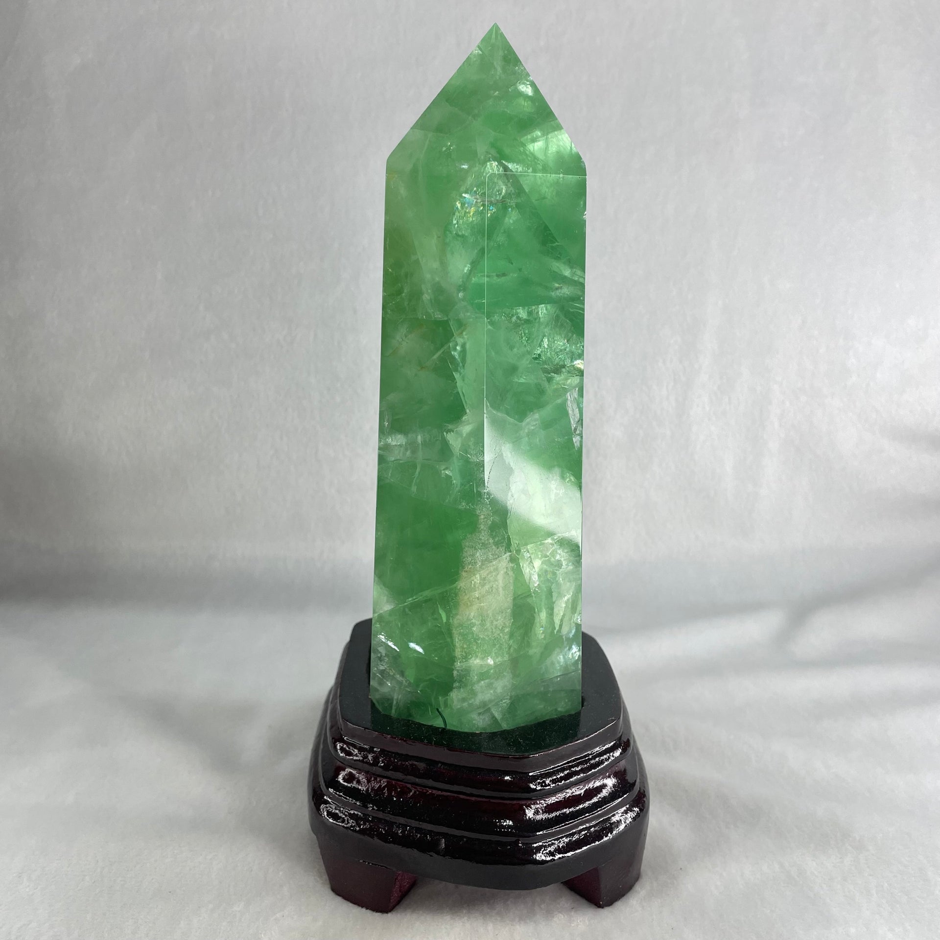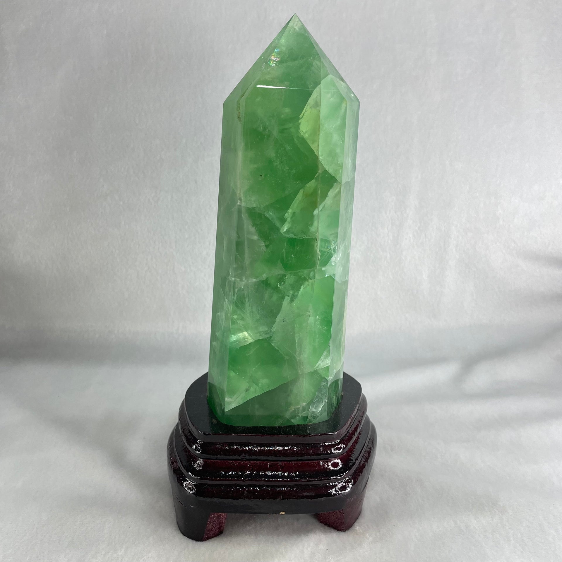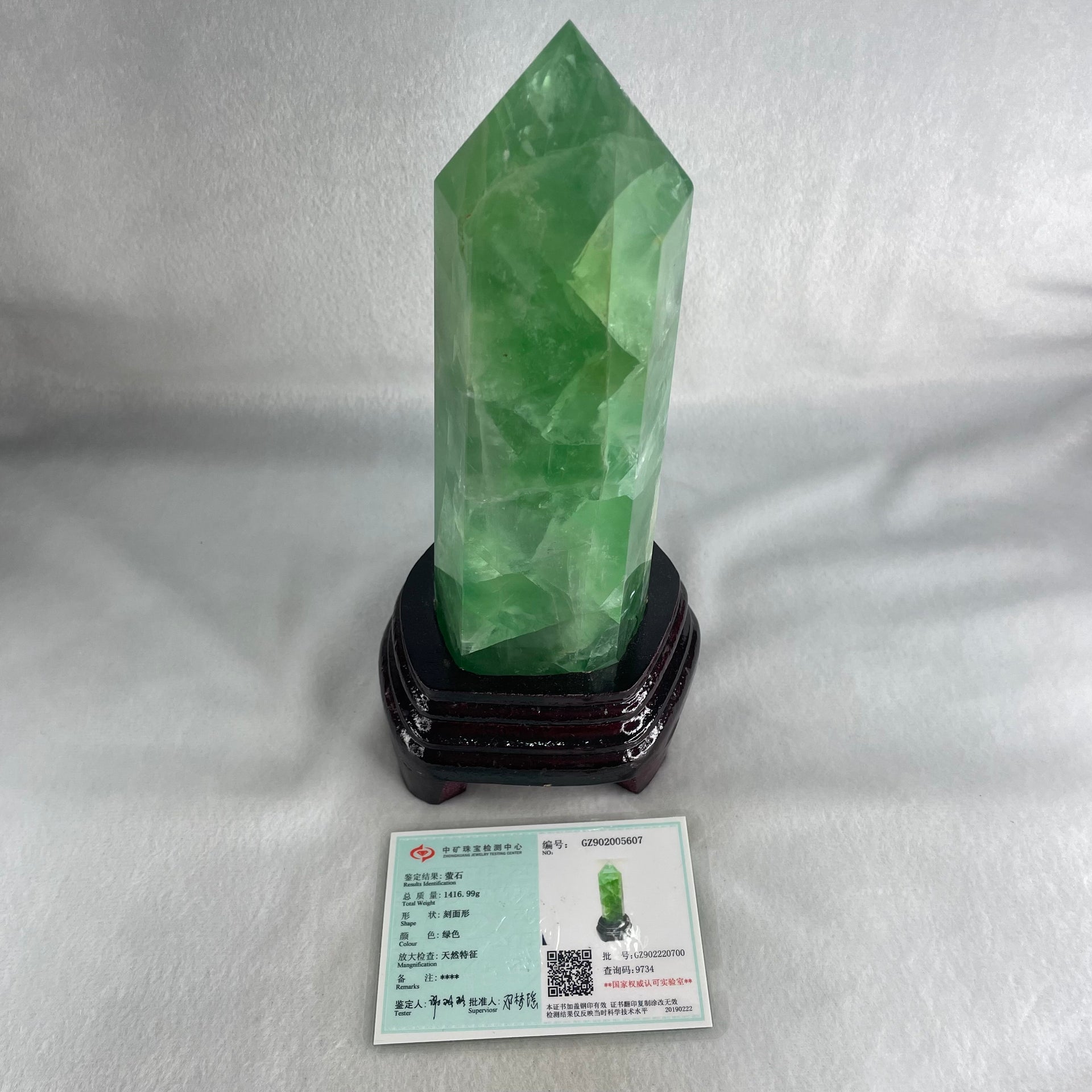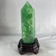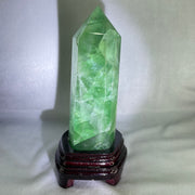 Natural Green Fluorite Quartz Tower with Wooden Stand Display 1416.99g 10.30 by 95.5 by 210.0mm