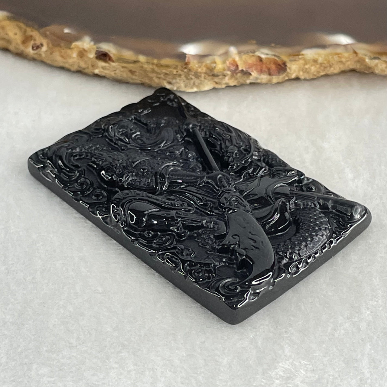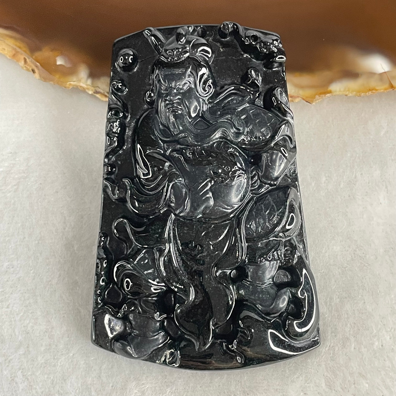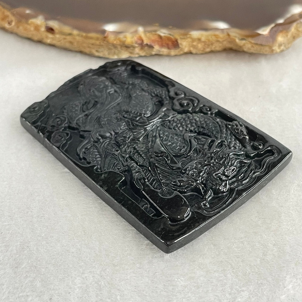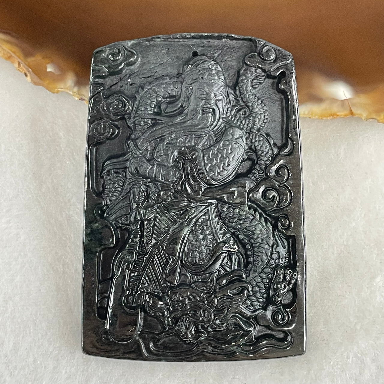 Type A Opaque to Partial Translucent Black Omphacite Jadeite Guan Gong with Dragon Pendant 33.76g 61.3 by 41.6 by 7.2mm$280.00$280.00Unit price / per -