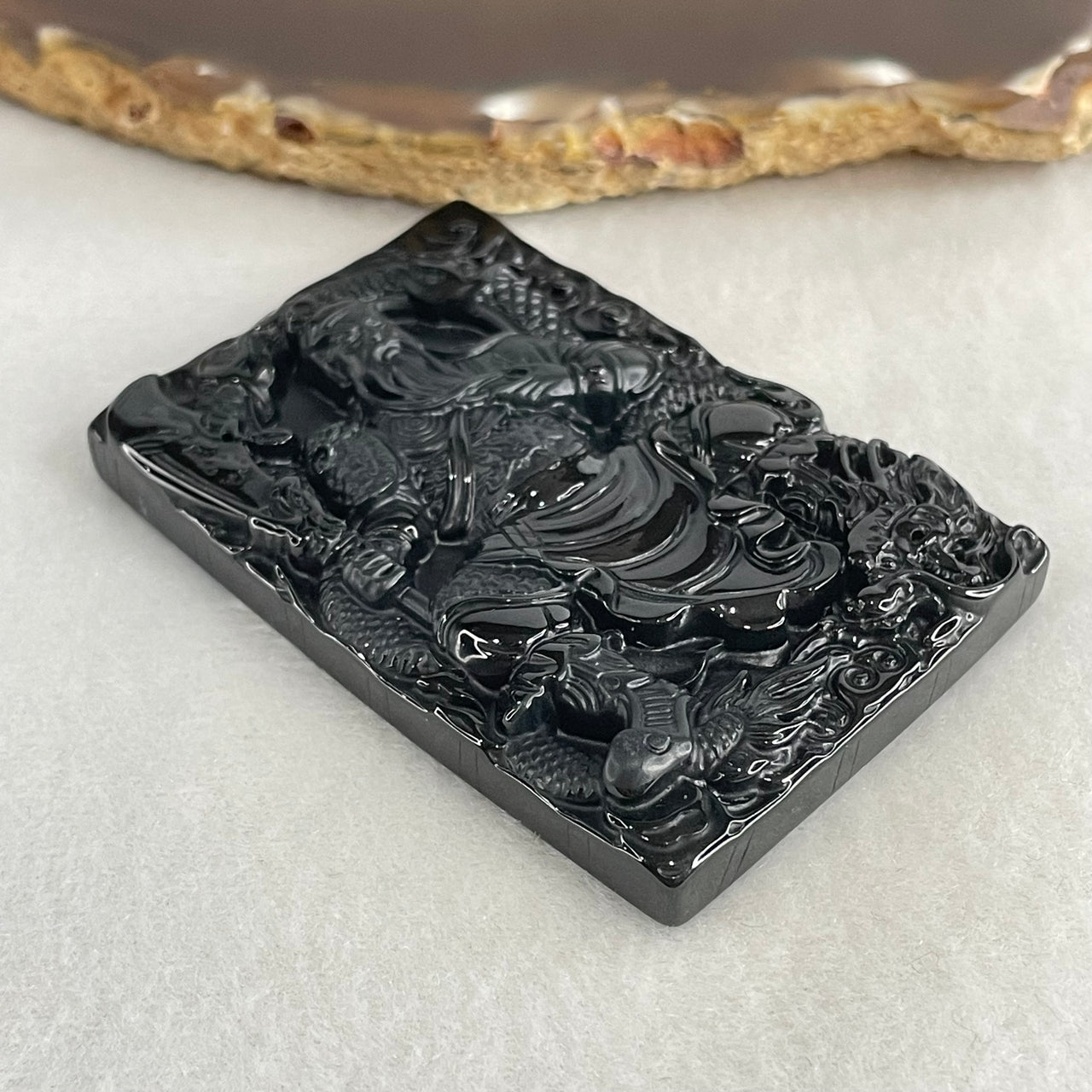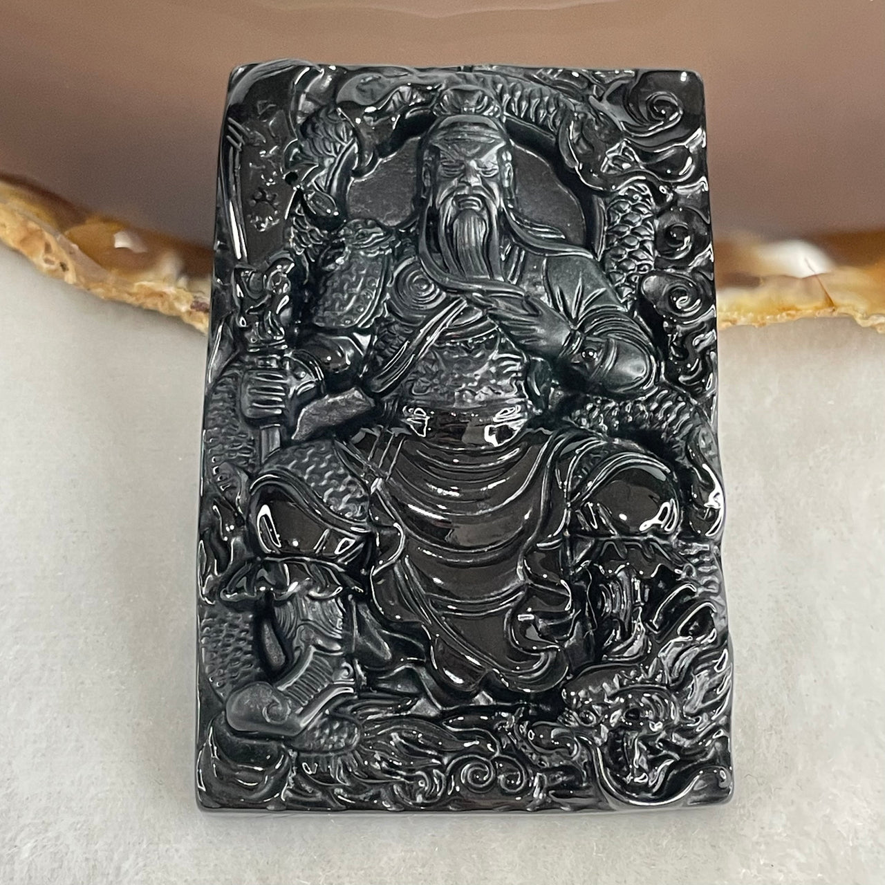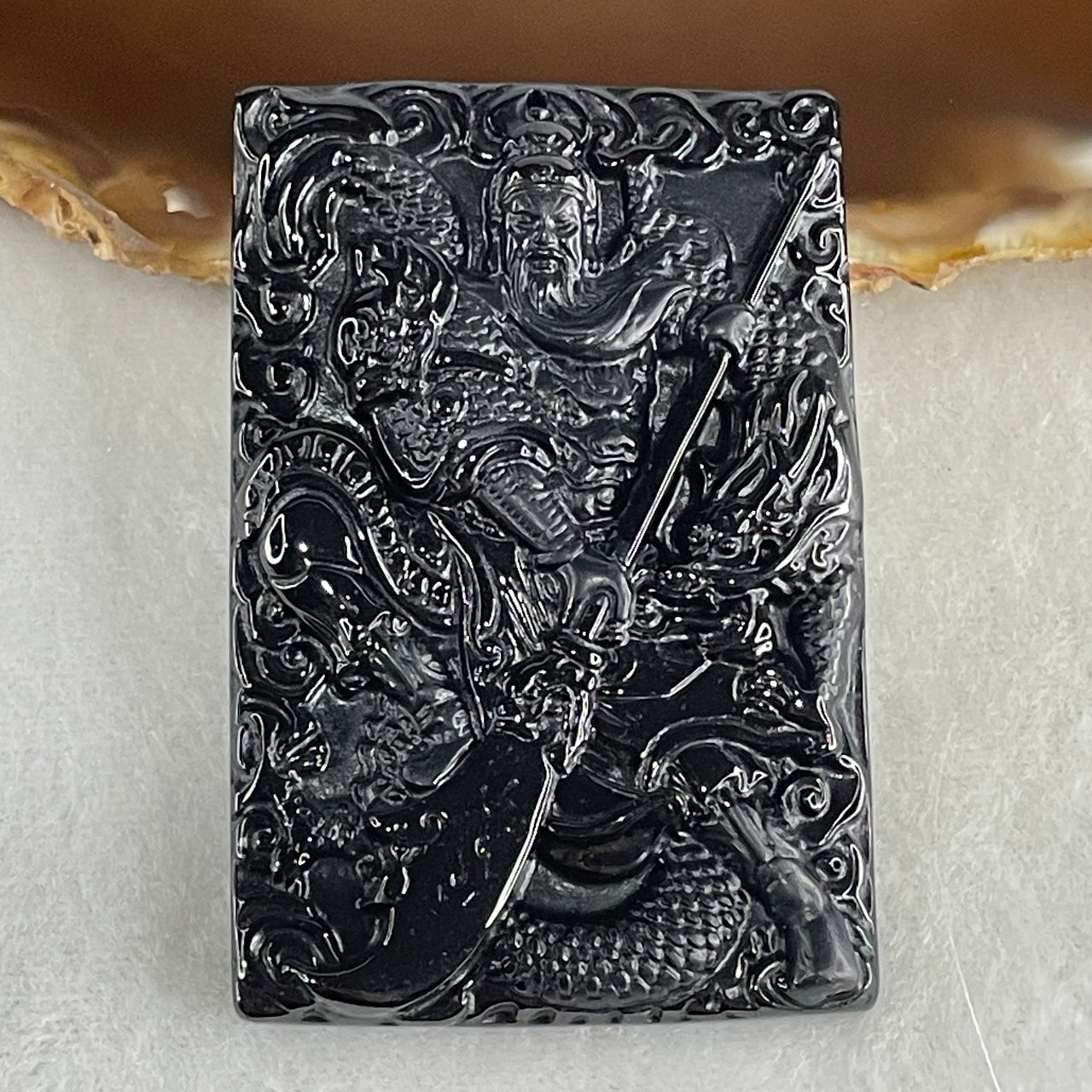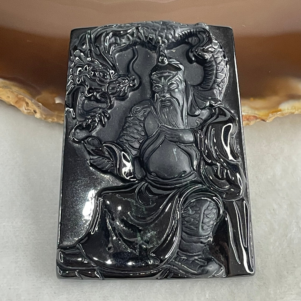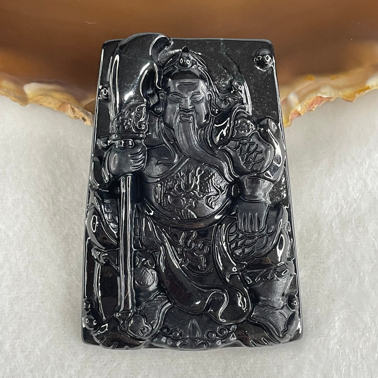 Type A Opaque to Partial Translucent Black Omphacite Jadeite Guan Gong with Dragon Pendant 33.76g 61.3 by 41.6 by 7.2mm$280.00$280.00Unit price / per -