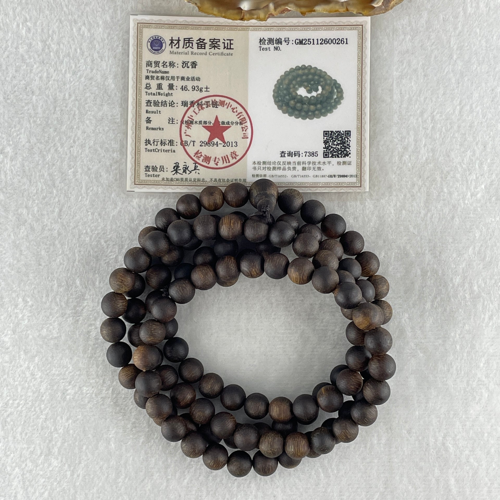 Certified Good Grade Natural Vietnam Agarwood Beads Necklace 46.93g 94cm 8.9mm 109 Beads