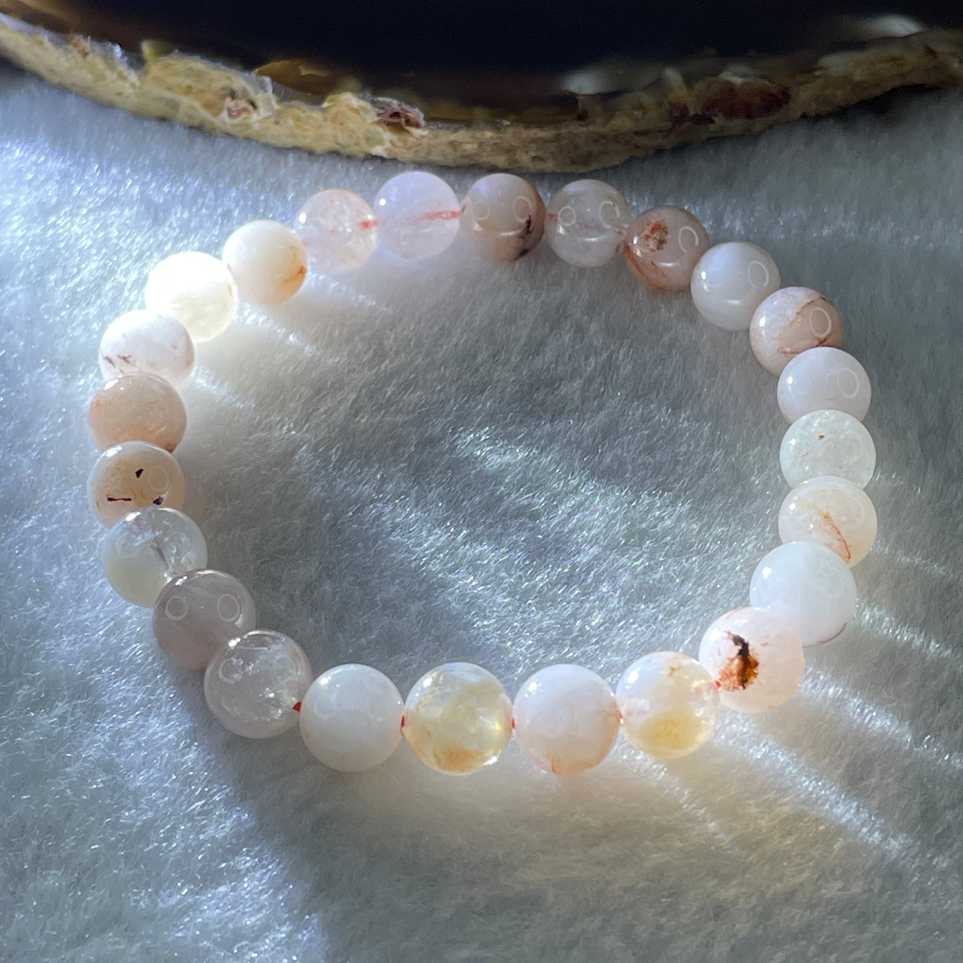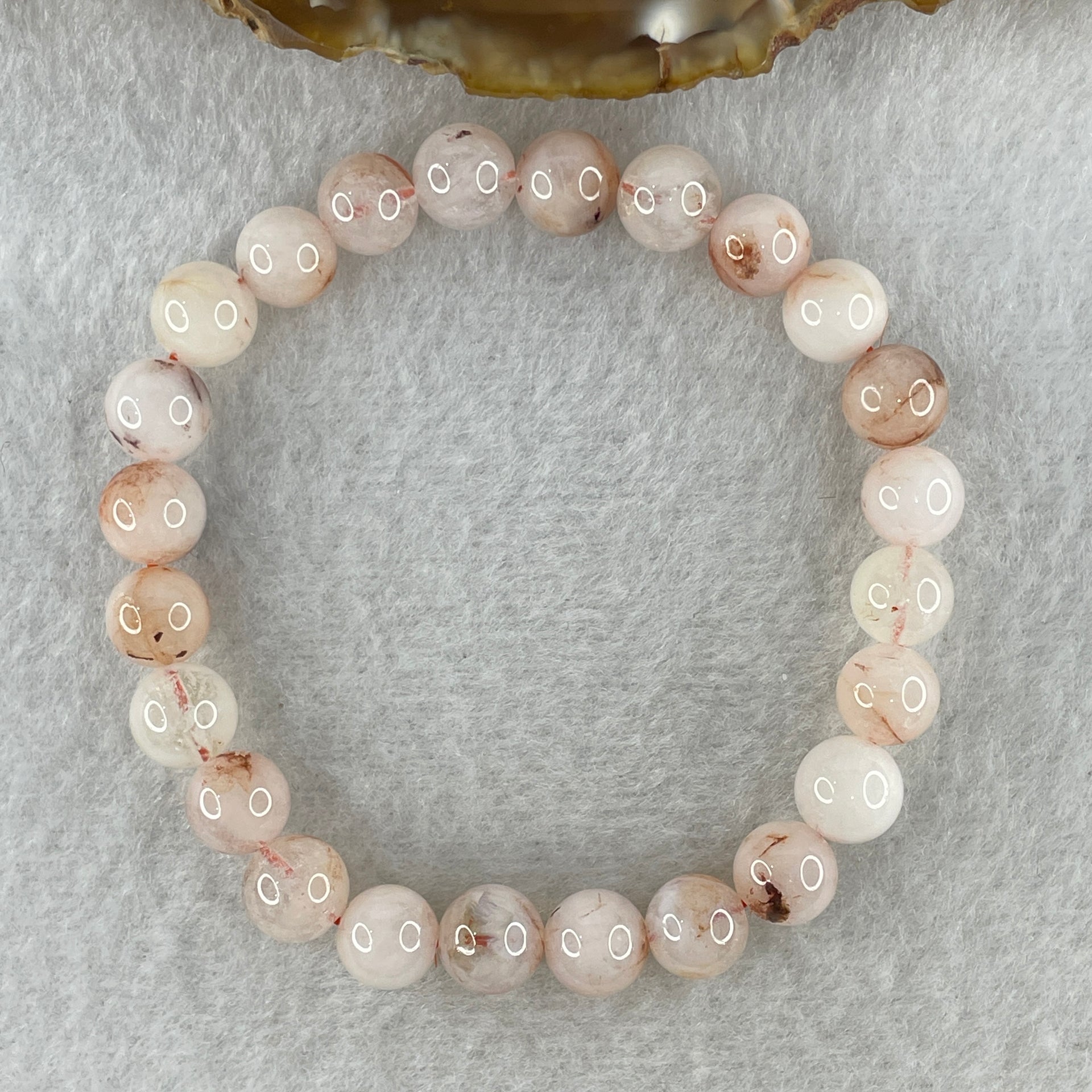 Natural Pinky Ferruginous Quartz Beads Bracelet 18.02g 16cm 8.4mm 24Beads