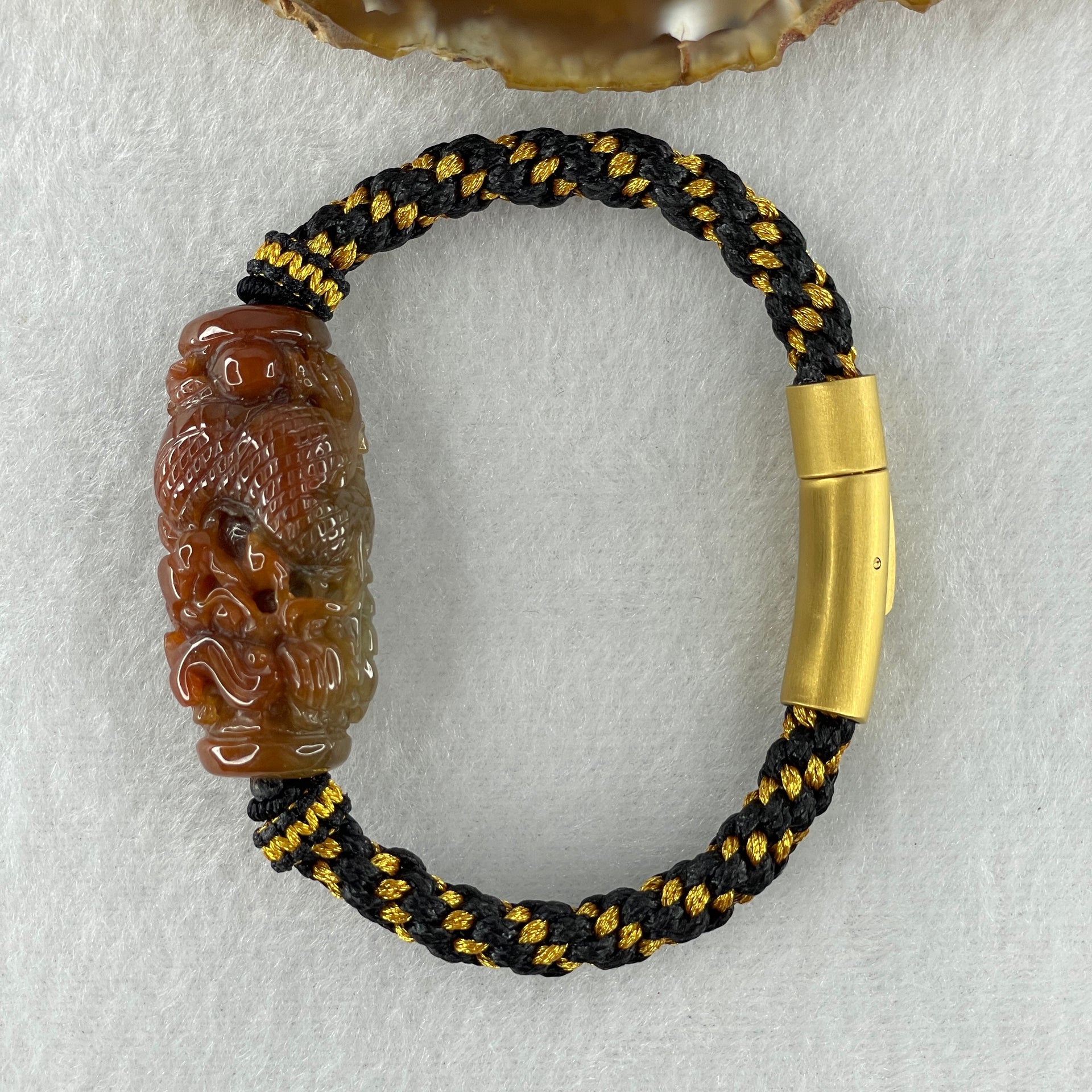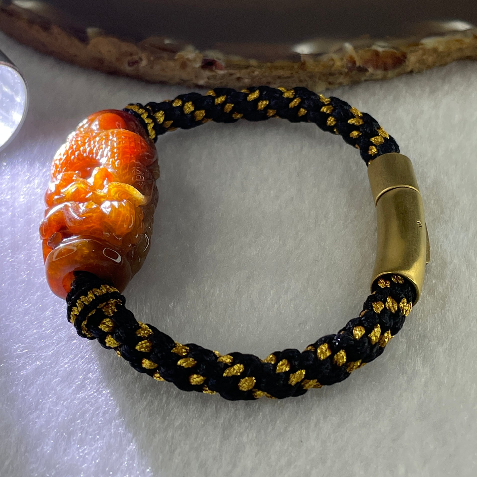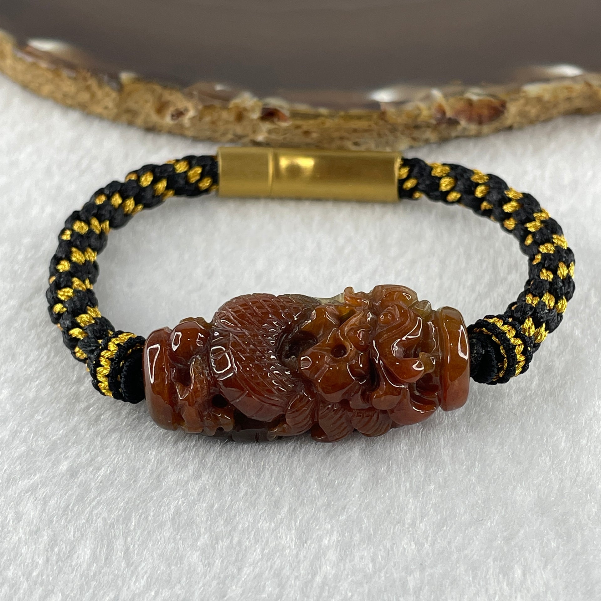 Natural Type A Red Jadeite Dragon Lulutong String Bracelet 31.74g 15cm 40.3 by 18.8 by 15.8mm
