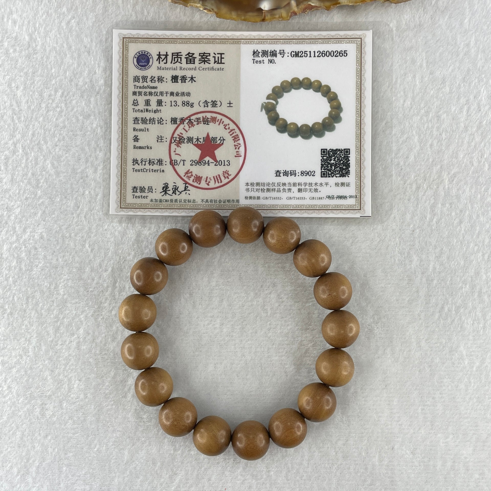 Certified Natural India Old Tree Sandalwood Beads Bracelet 13.88g 16.5cm 12.1mm 17 Beads