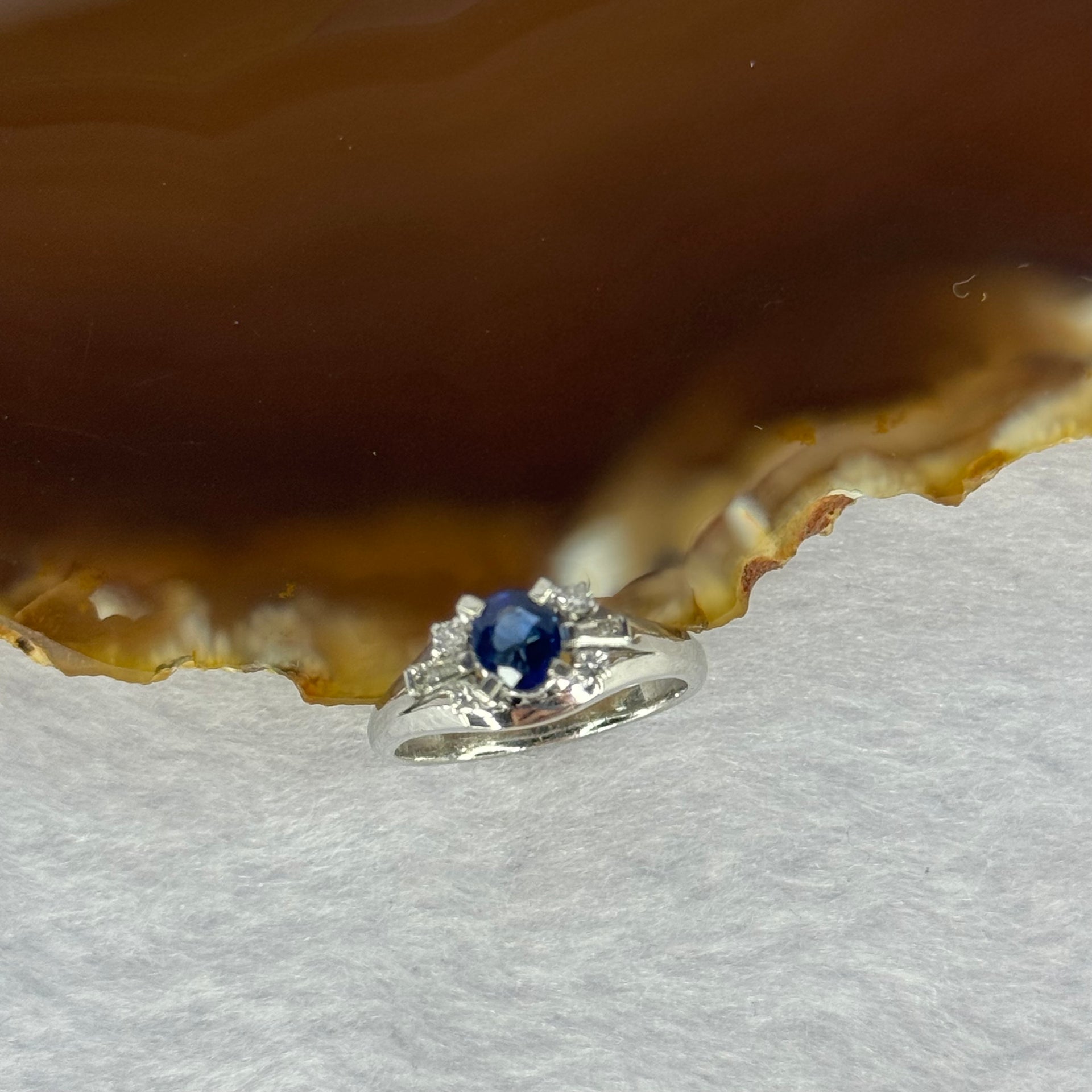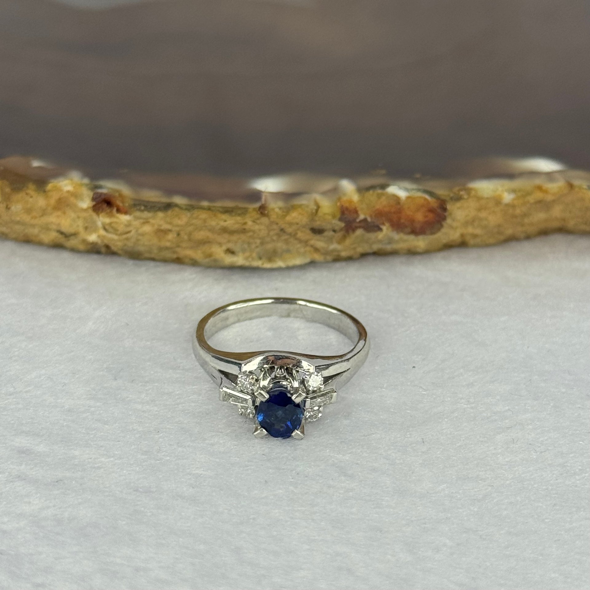 Natural Sapphire Approx 5.4 by 4.4 by 4.0mm with Natural Diamonds in Platinum PT900 Ring Total Weight 5.76g US5.75 HK12.5