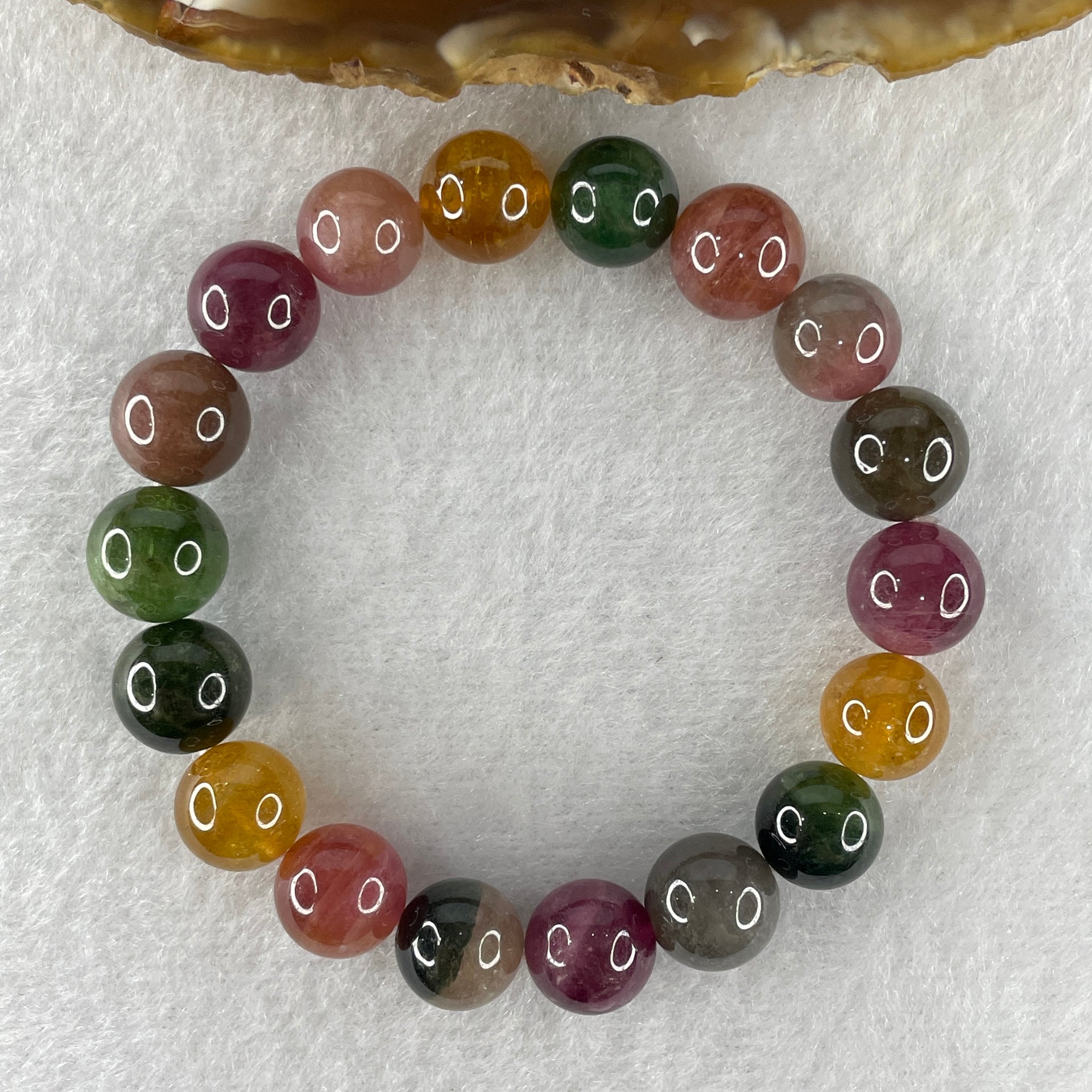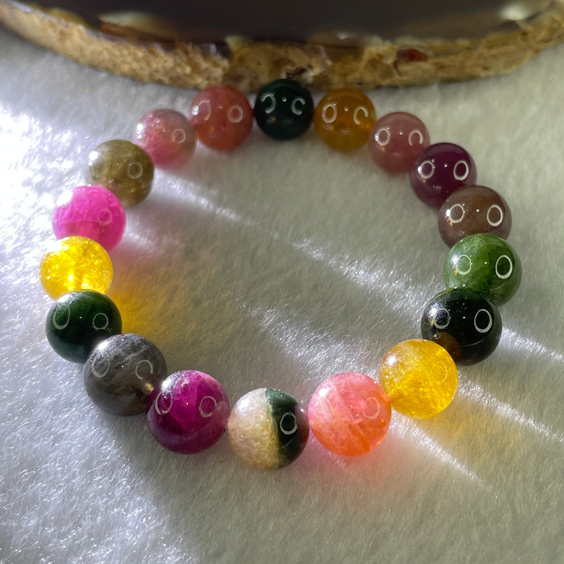 Above Average Grade Natural Intense Rainbow Tourmaline Crystal Beads Bracelet 22.93g 13.5cm 9.7mm 18 Beads