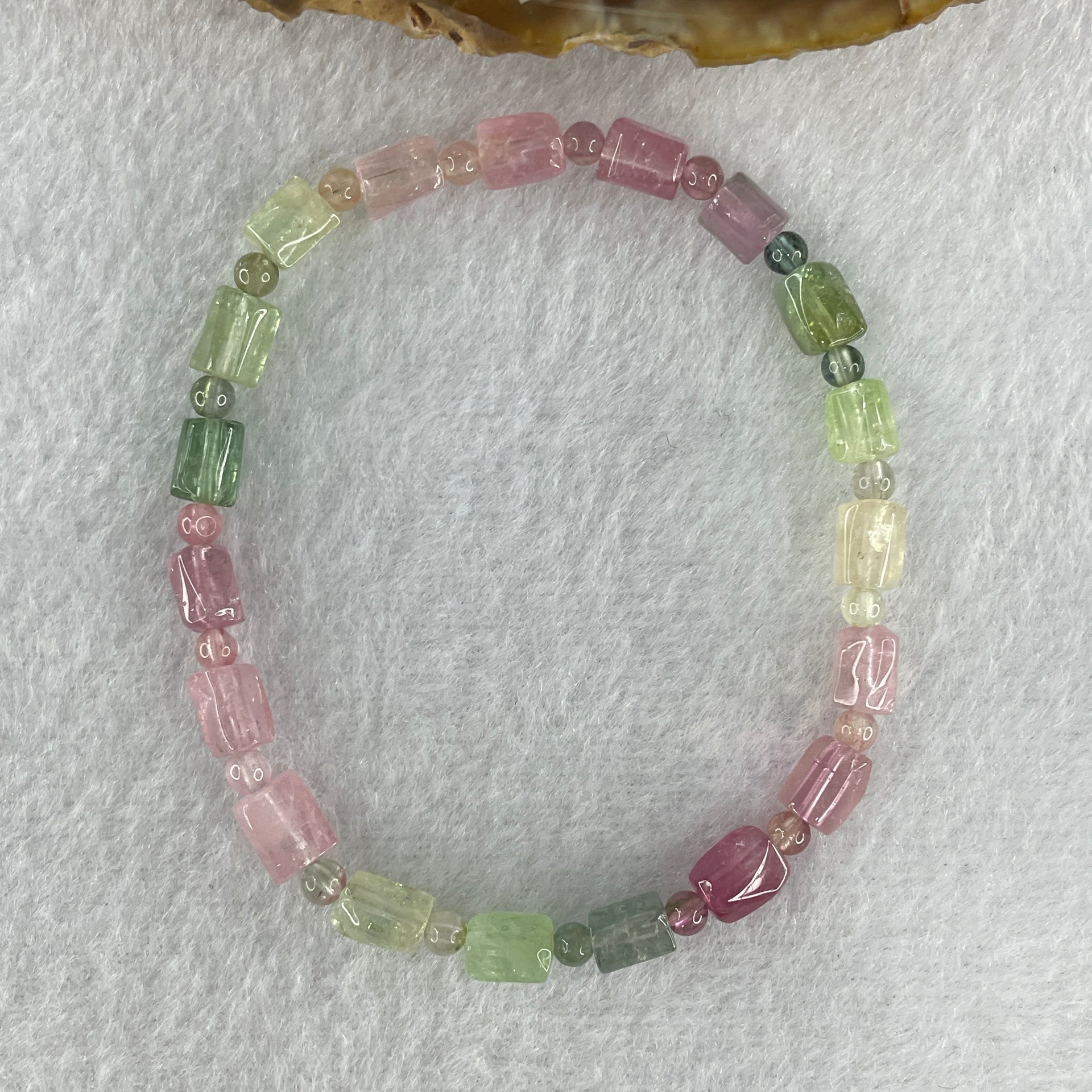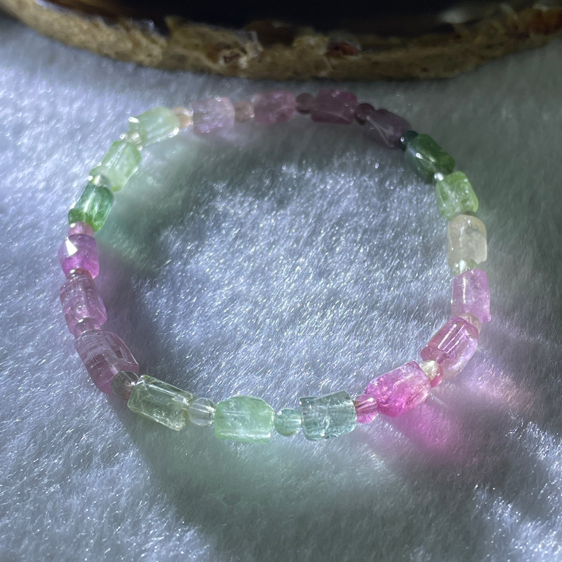 Certified Good Grade Natural Transparent Rainbow Tourmaline Crystal Irregular Beads Bracelet 7.11g 15.5cm 5.2mm 19 Beads