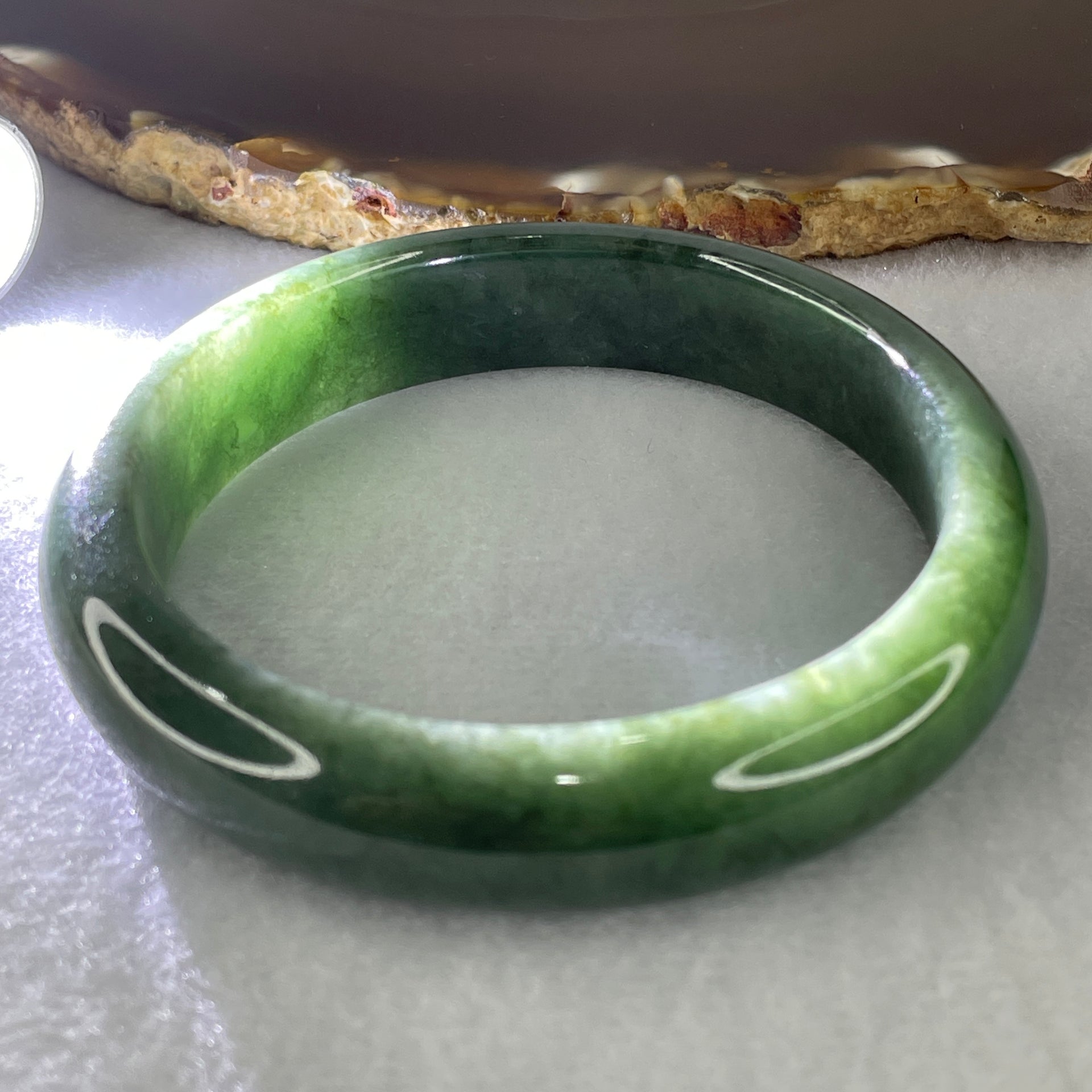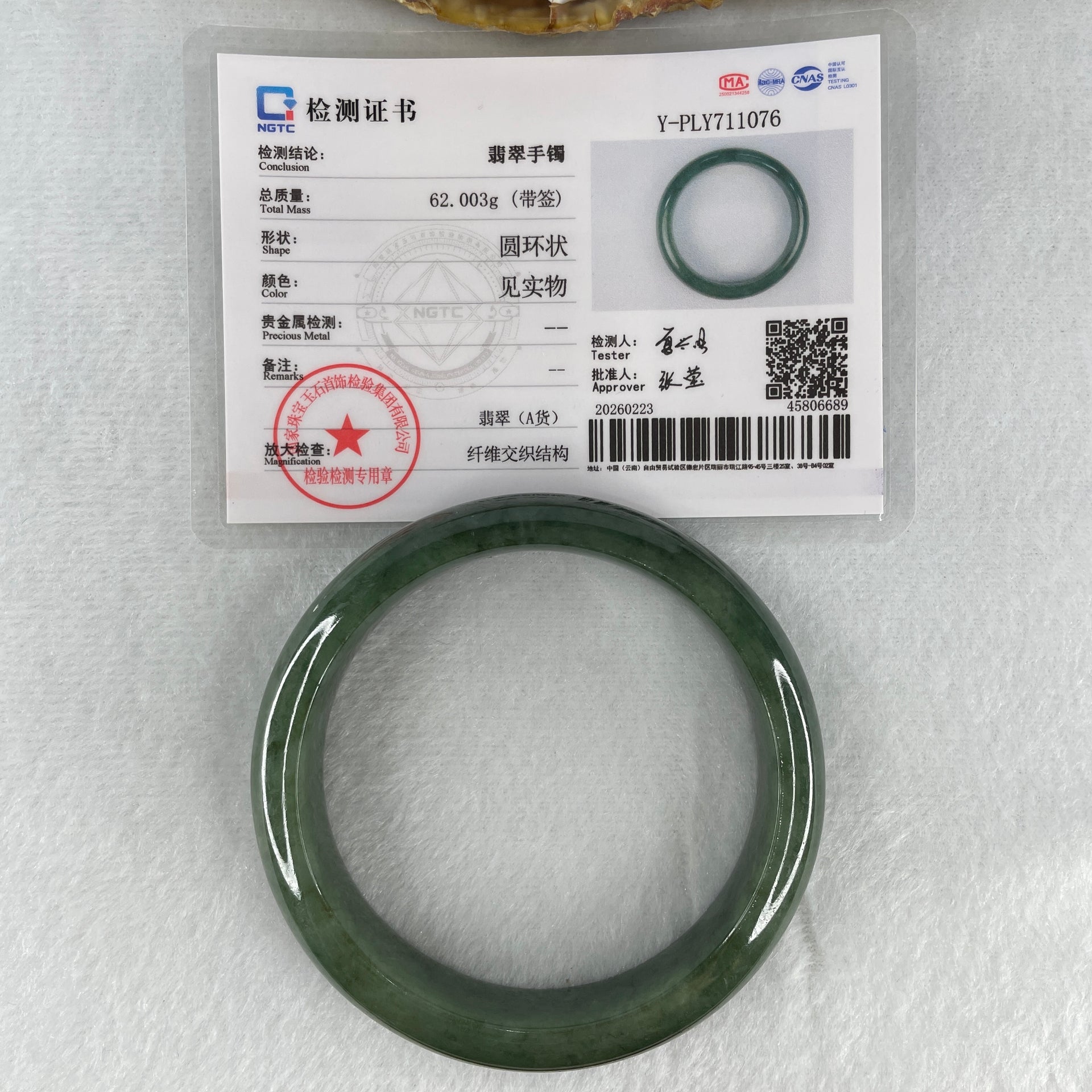 Certified Good Grade Natural Type A Old Mine Green Jadeite Bangle 62.003g Internal Diameter 58.1mm 13.9 by 8.6mm (Slight Internal Lines)