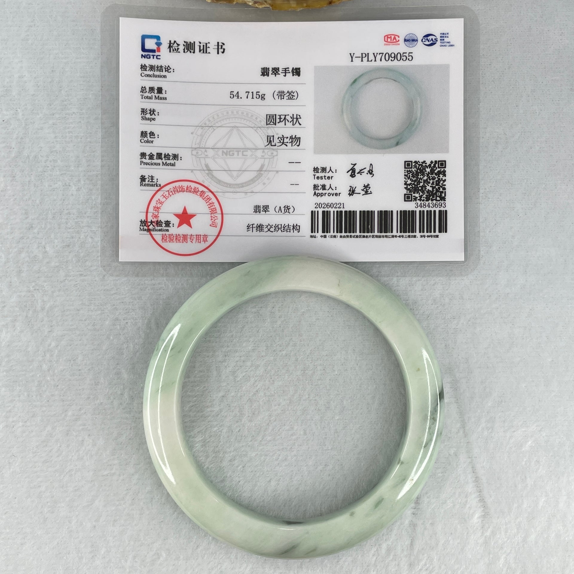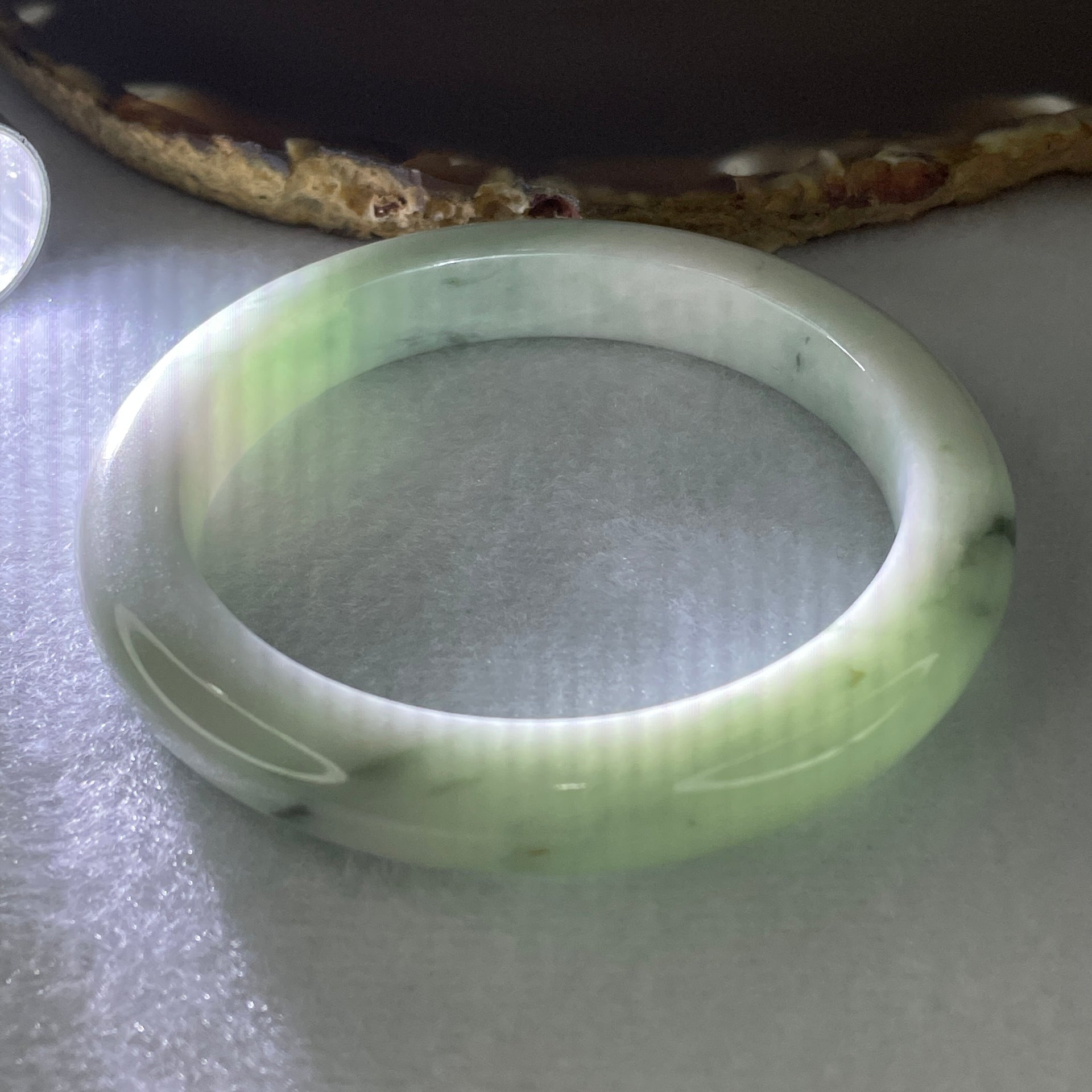 Certified Natural Type A Light Green with Green Piao Hua Jadeite Bangle 54.715g Internal Diameter 57.1mm 10.4 by 9.6mm (Very Very Slight Internal Lines)