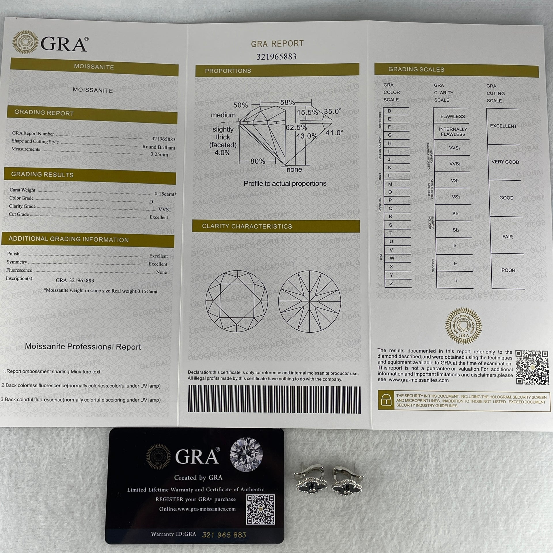 0.15Ct Colourless Round Brilliant Diameter 3.25mm VVS1 Excellent Cut Moissanite Excellent Polish Excellent Symmetry None Florescence in S925 Sliver 4 Leafs Clover Earring GRA 321965883