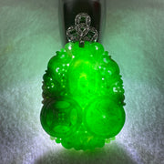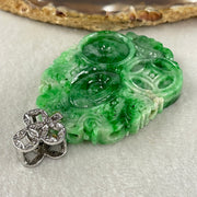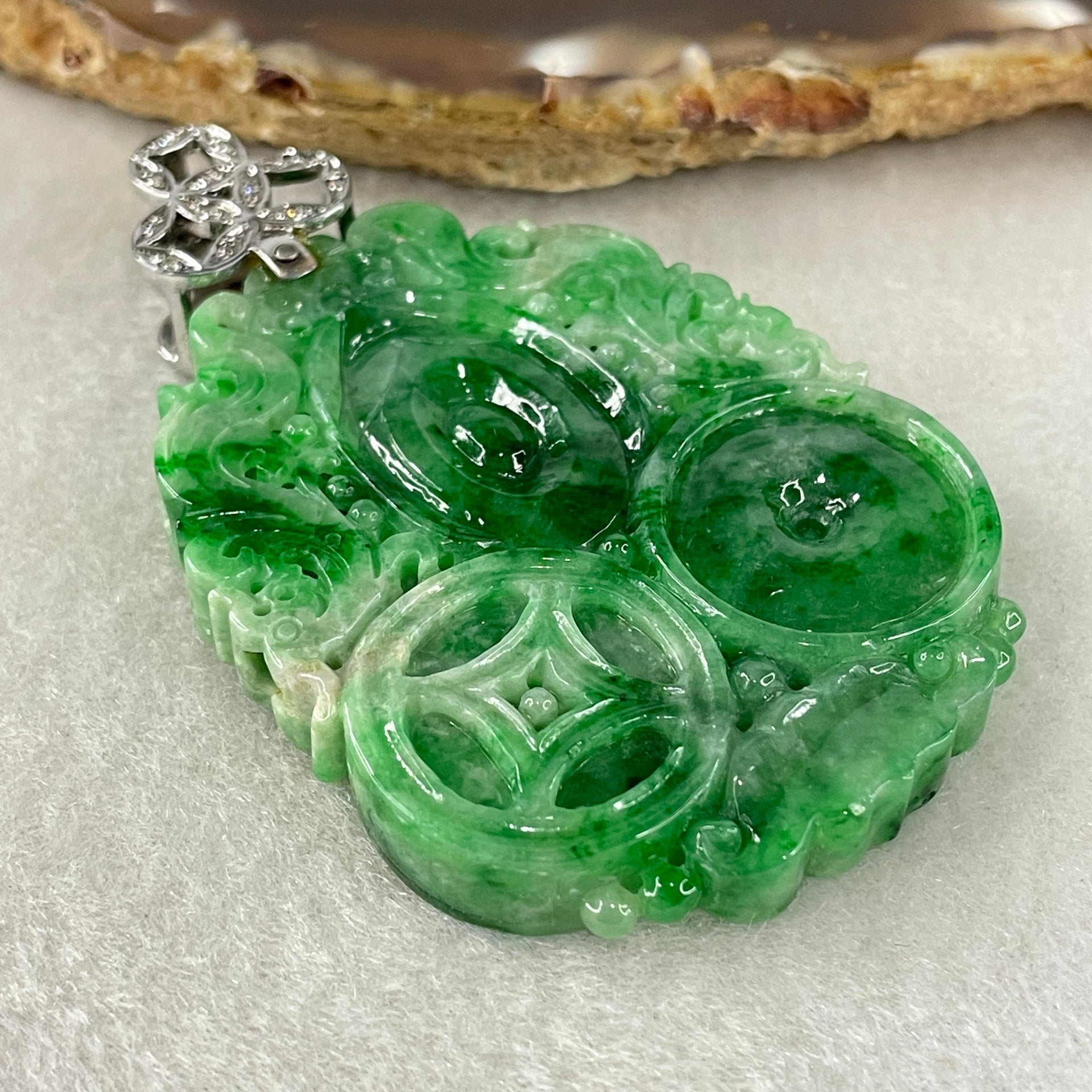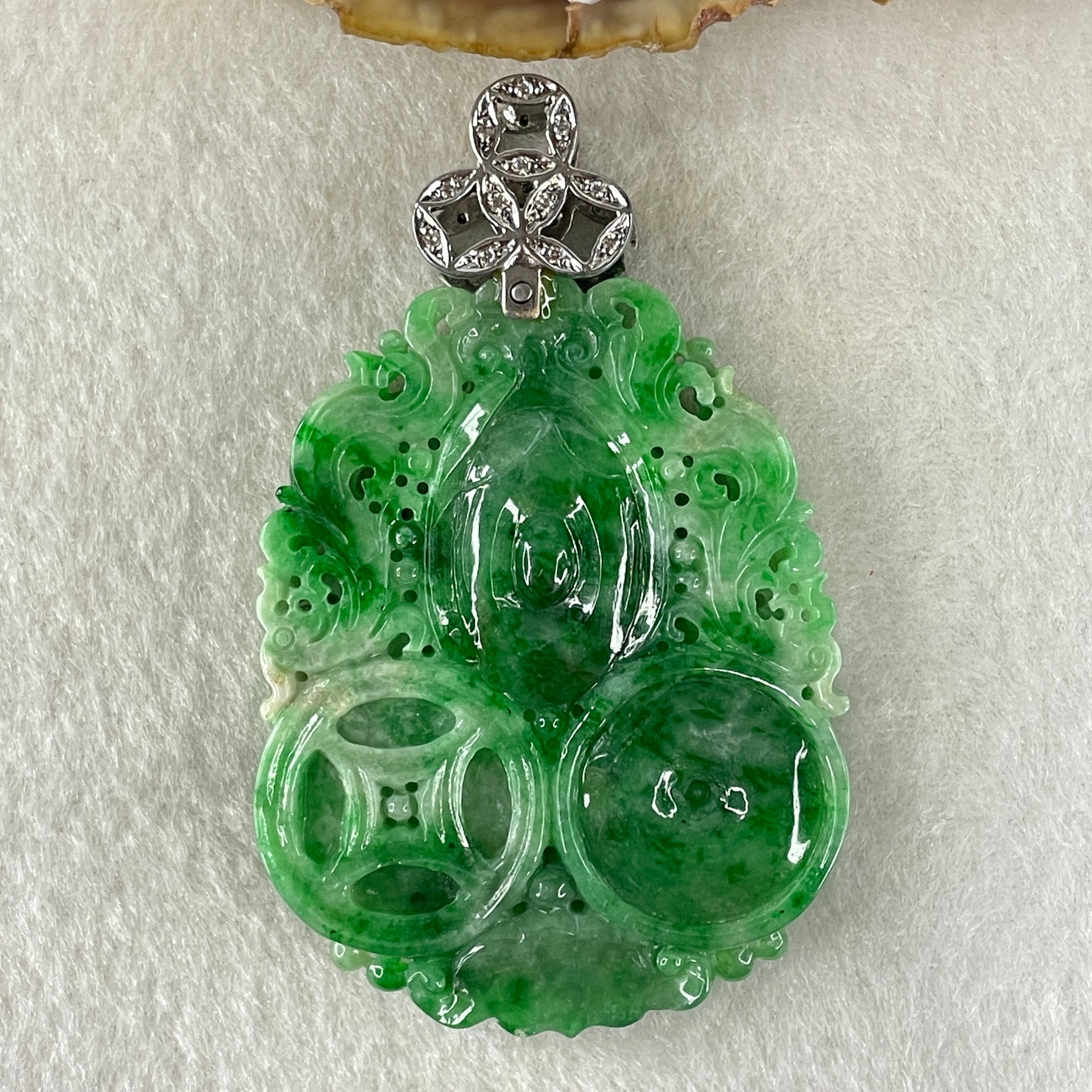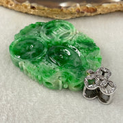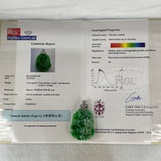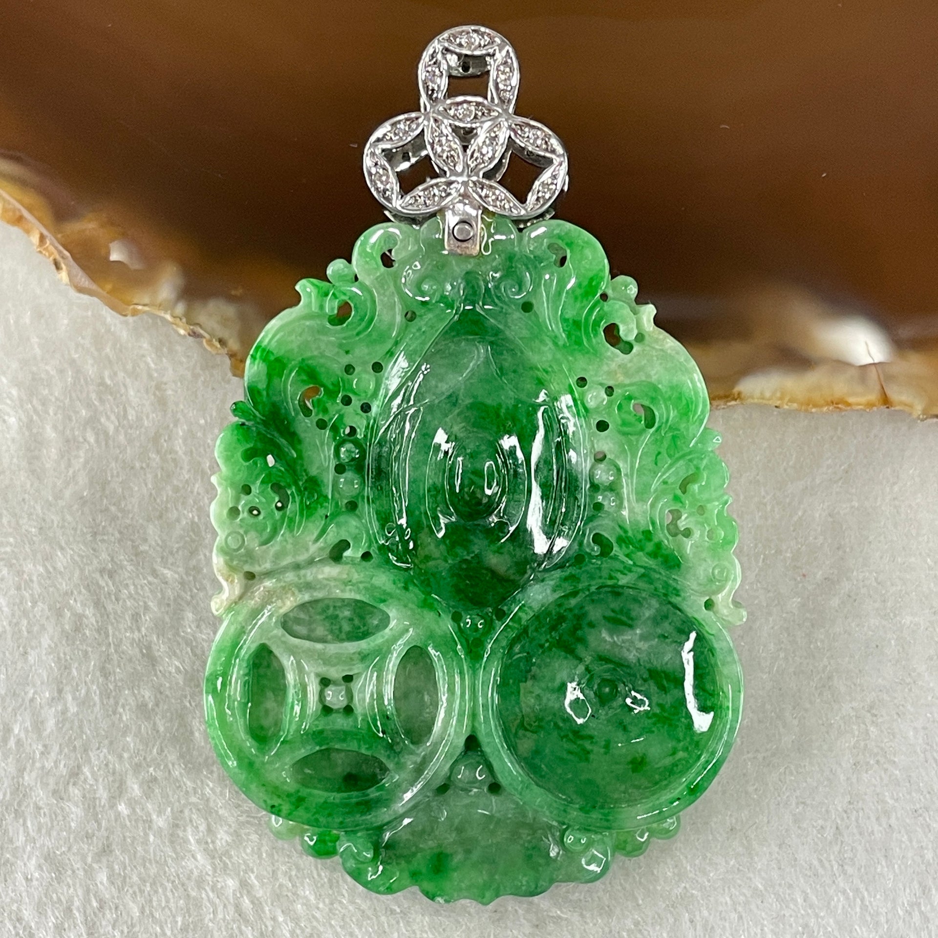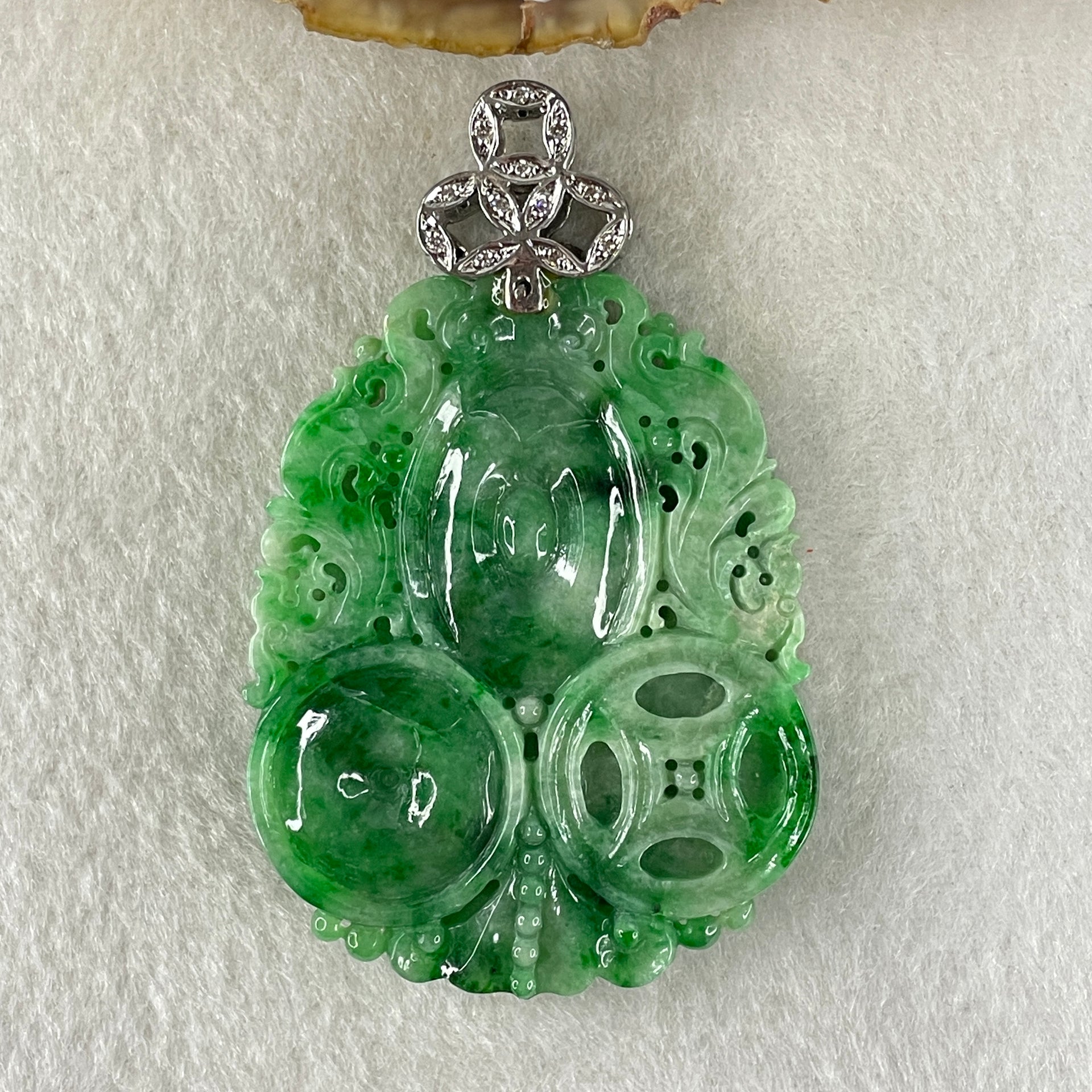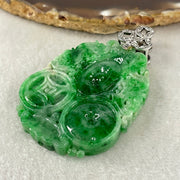 Antique Natural Type A Translucent Light Green with Old Mine Spicy Green Piao Hua Jadeite Phoenix Yuan Bao Ingot and Coins approx. 50.80 by 40.70 by 6.88mm in S925 Silver and Natural Diamonds Pendant 31.01g RGL Cert. RGL0510D1182