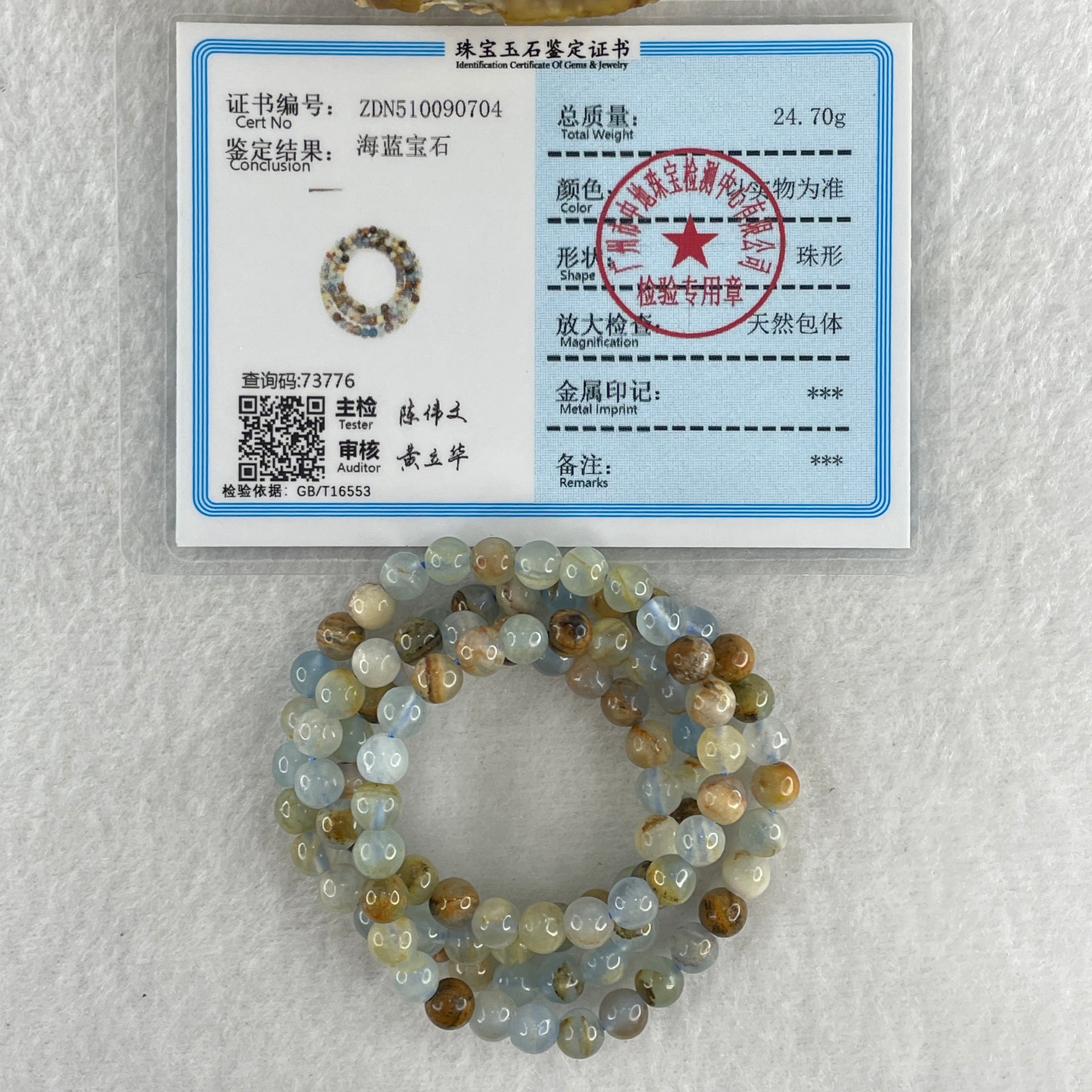 Certified Natural Aquamarine Beads Necklace 24.70g 52cm 5.7mm 102Beads