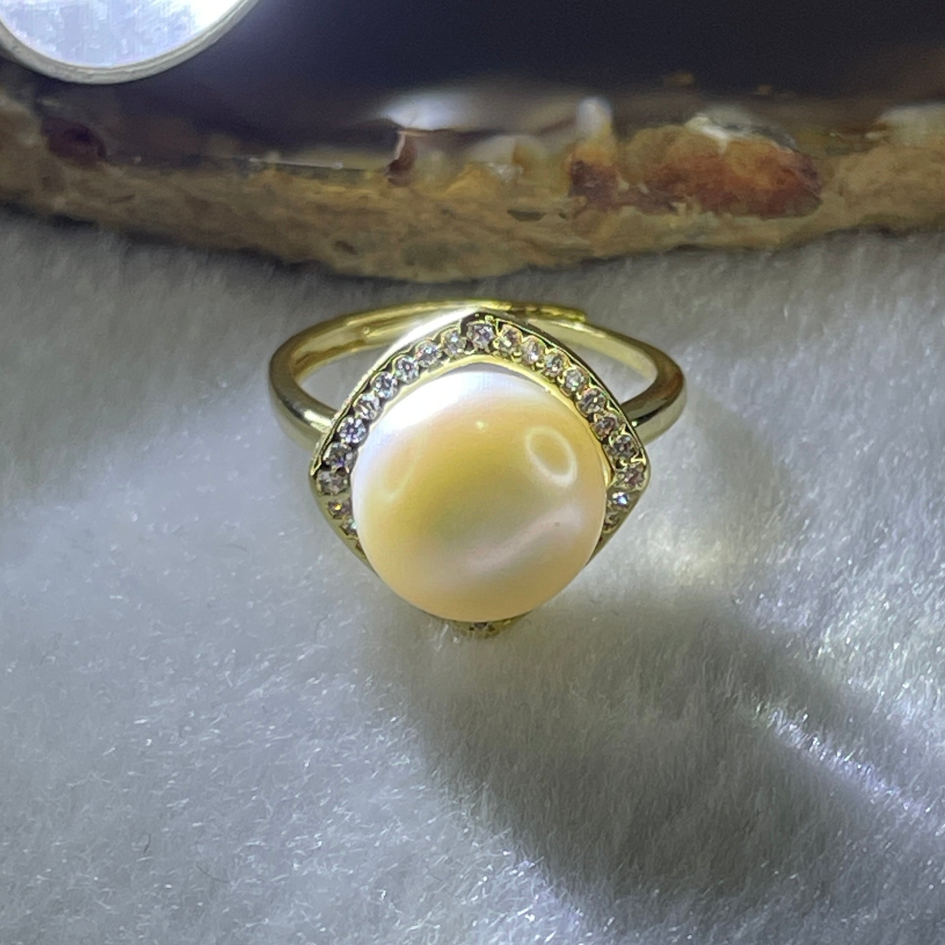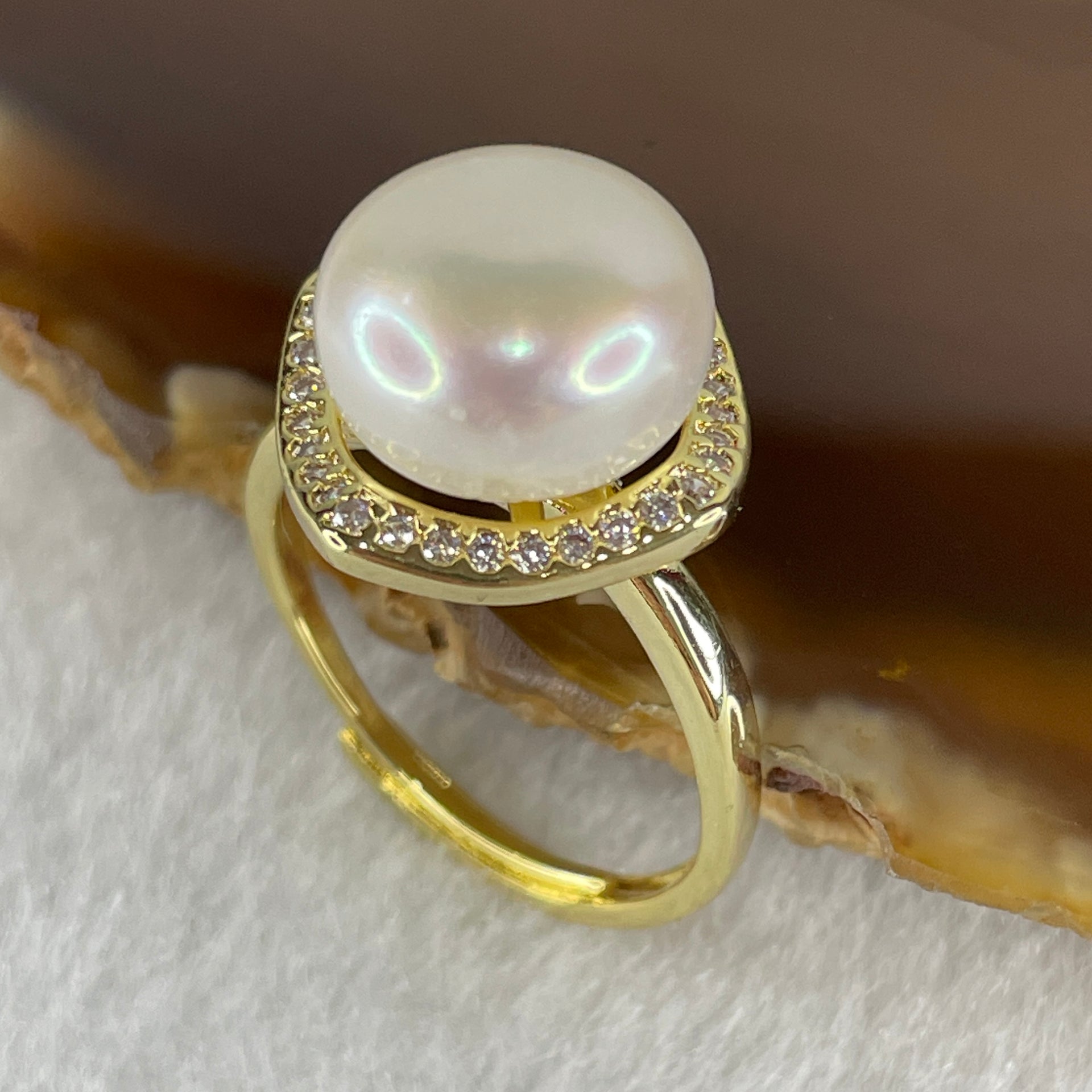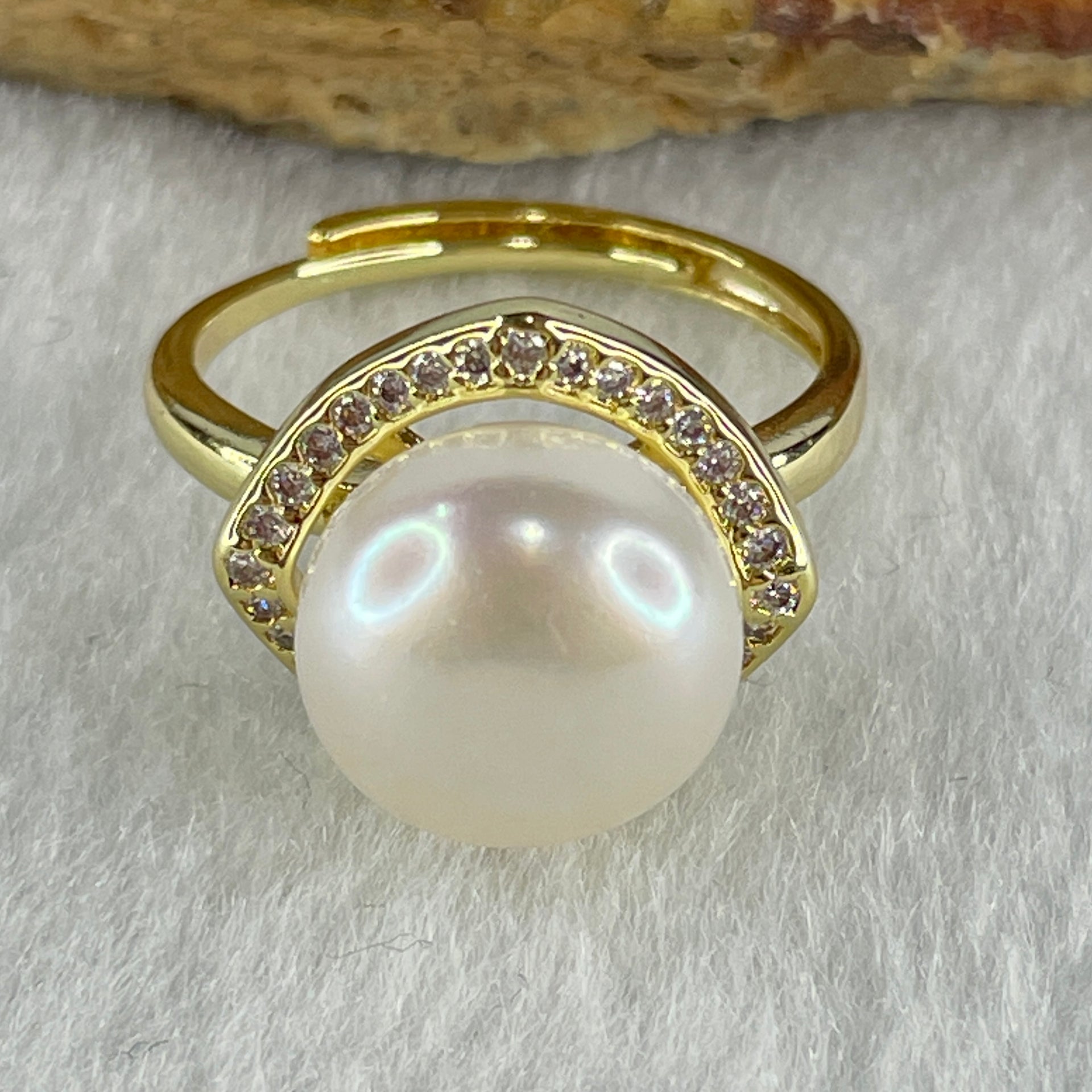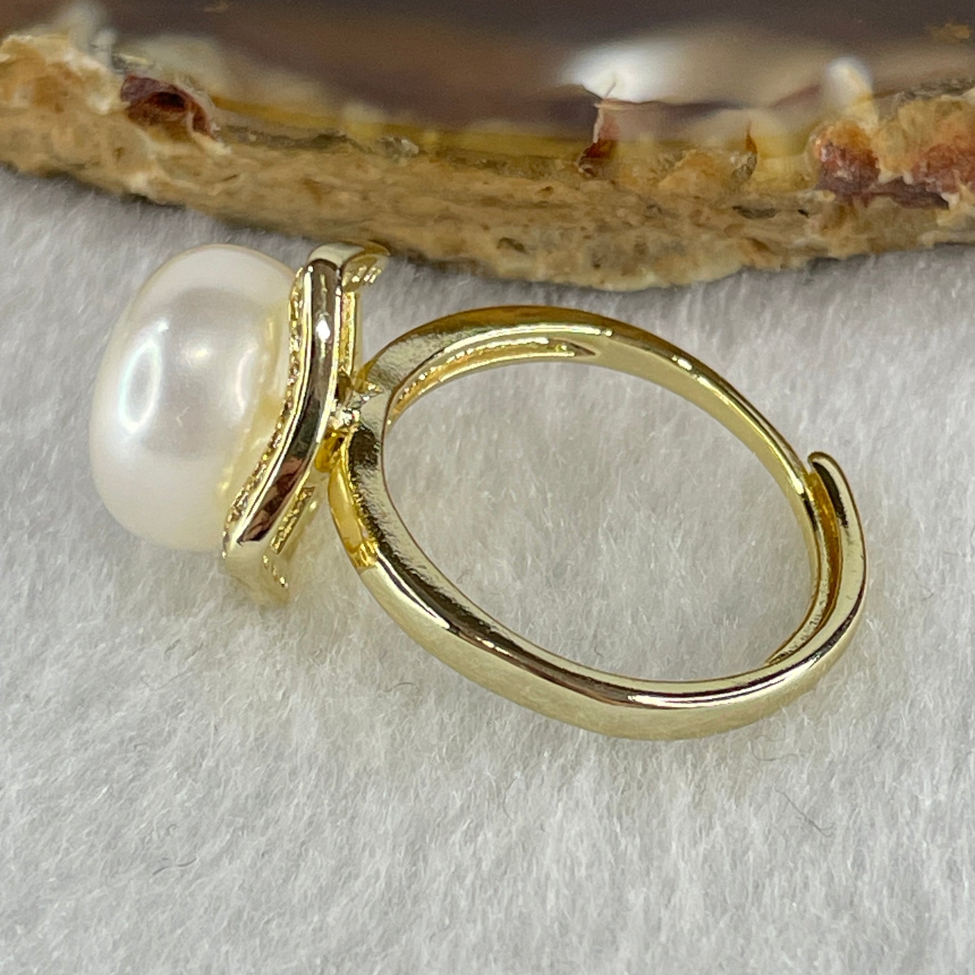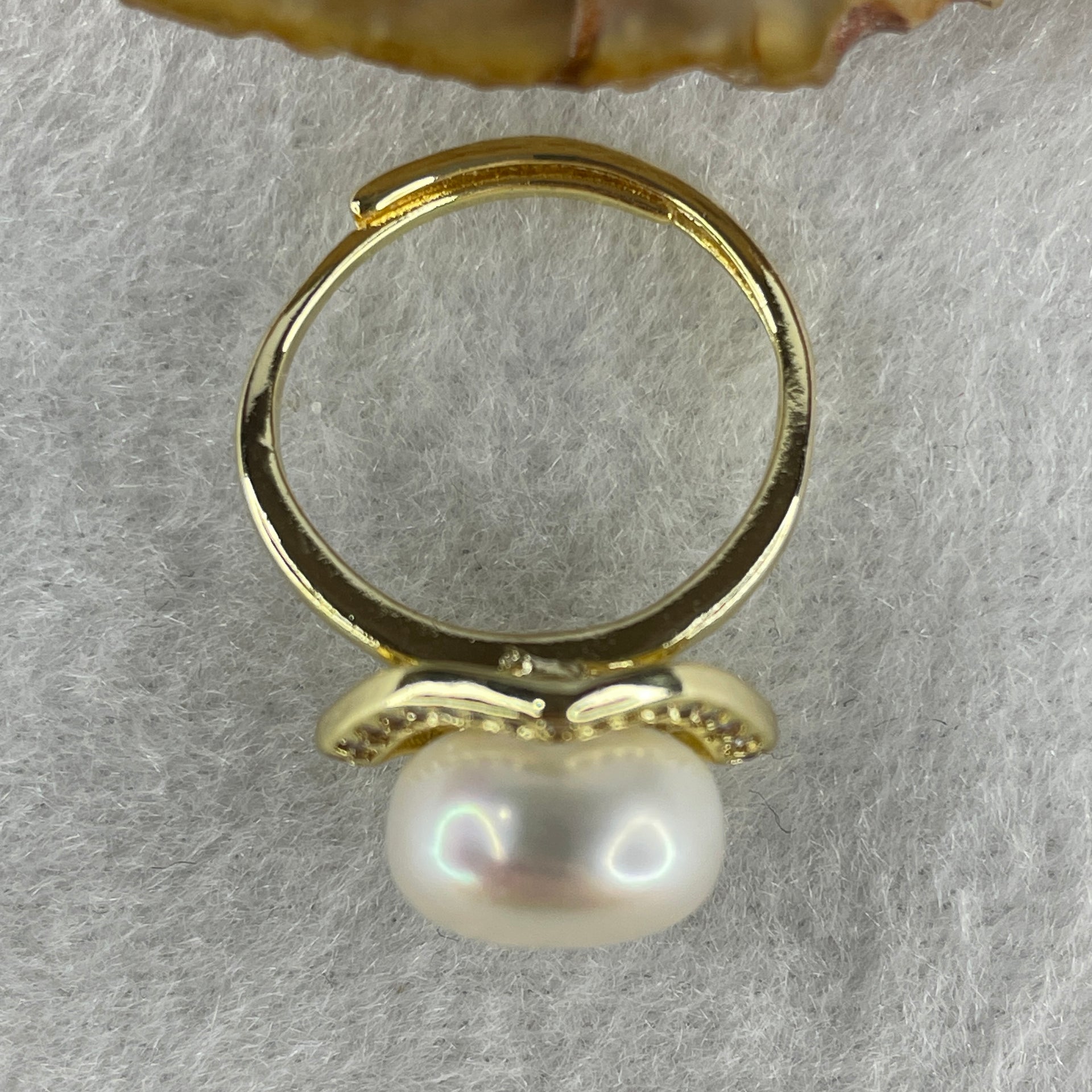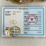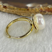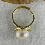 Certified Natural Fresh Water White Pearl Bead in Gold Color Ring 3.80g 11.4 by 7.5mm