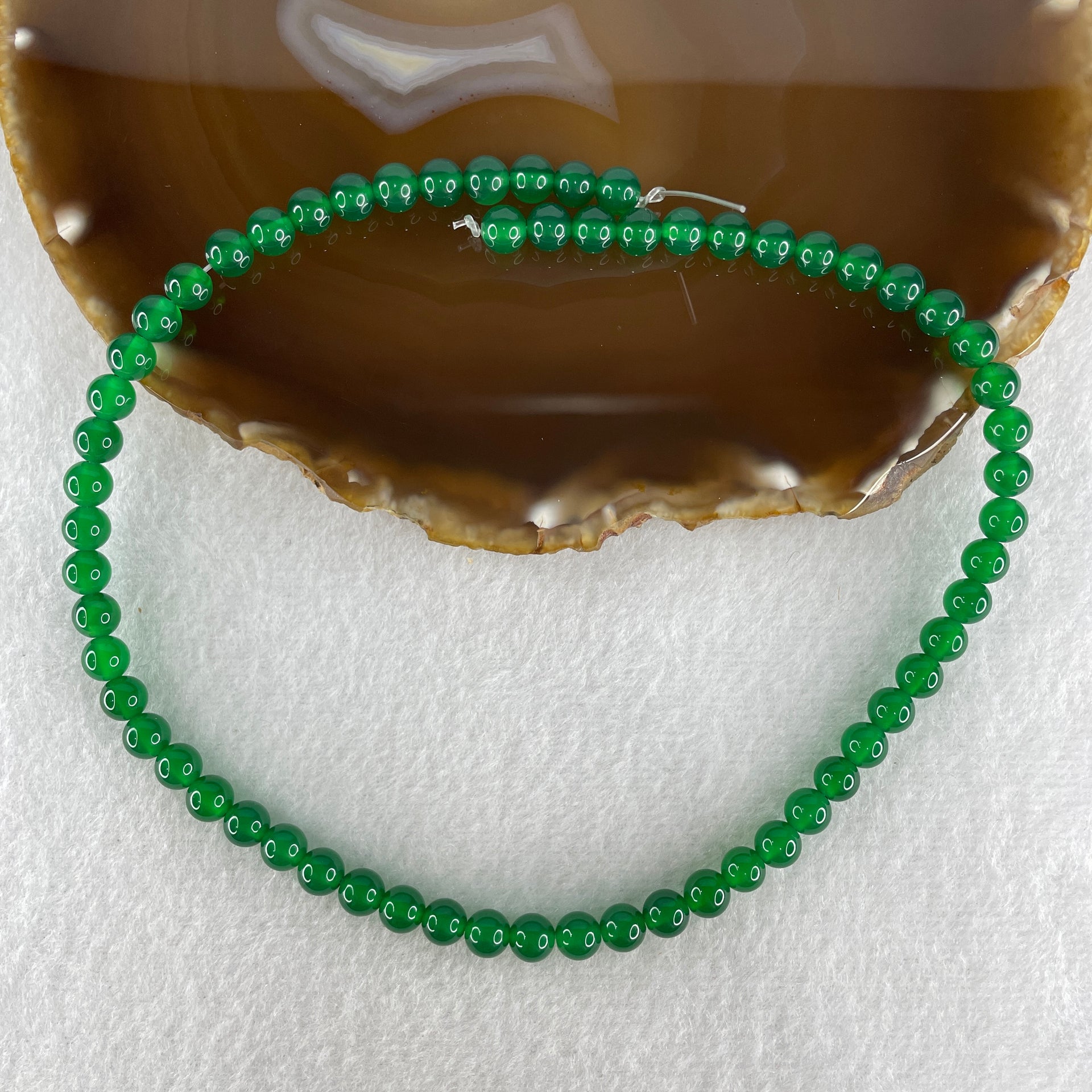 Certified Natural Green Agate Chalcedony Beads Loose Beads for Bracelet 20.23g 38cm 6.4mm 62 Beads