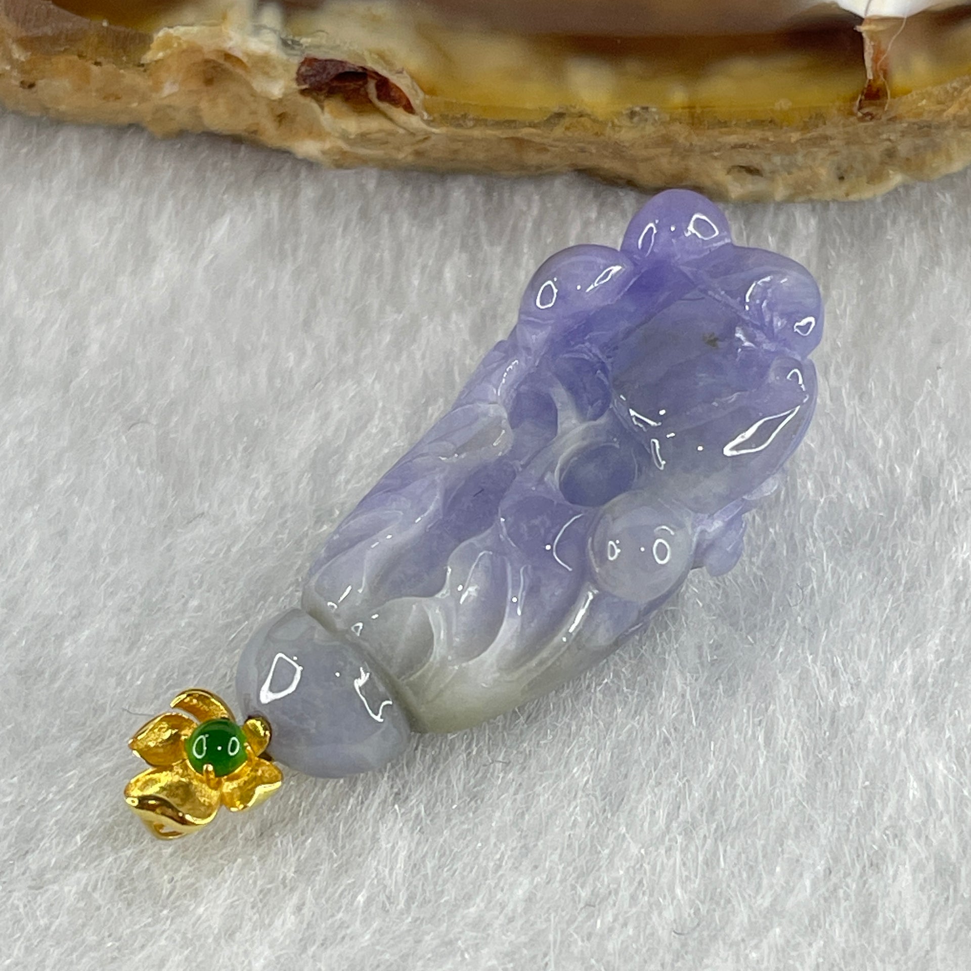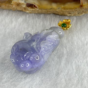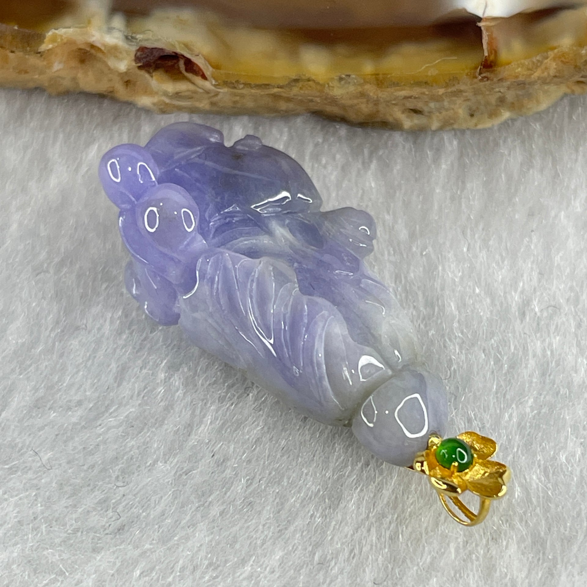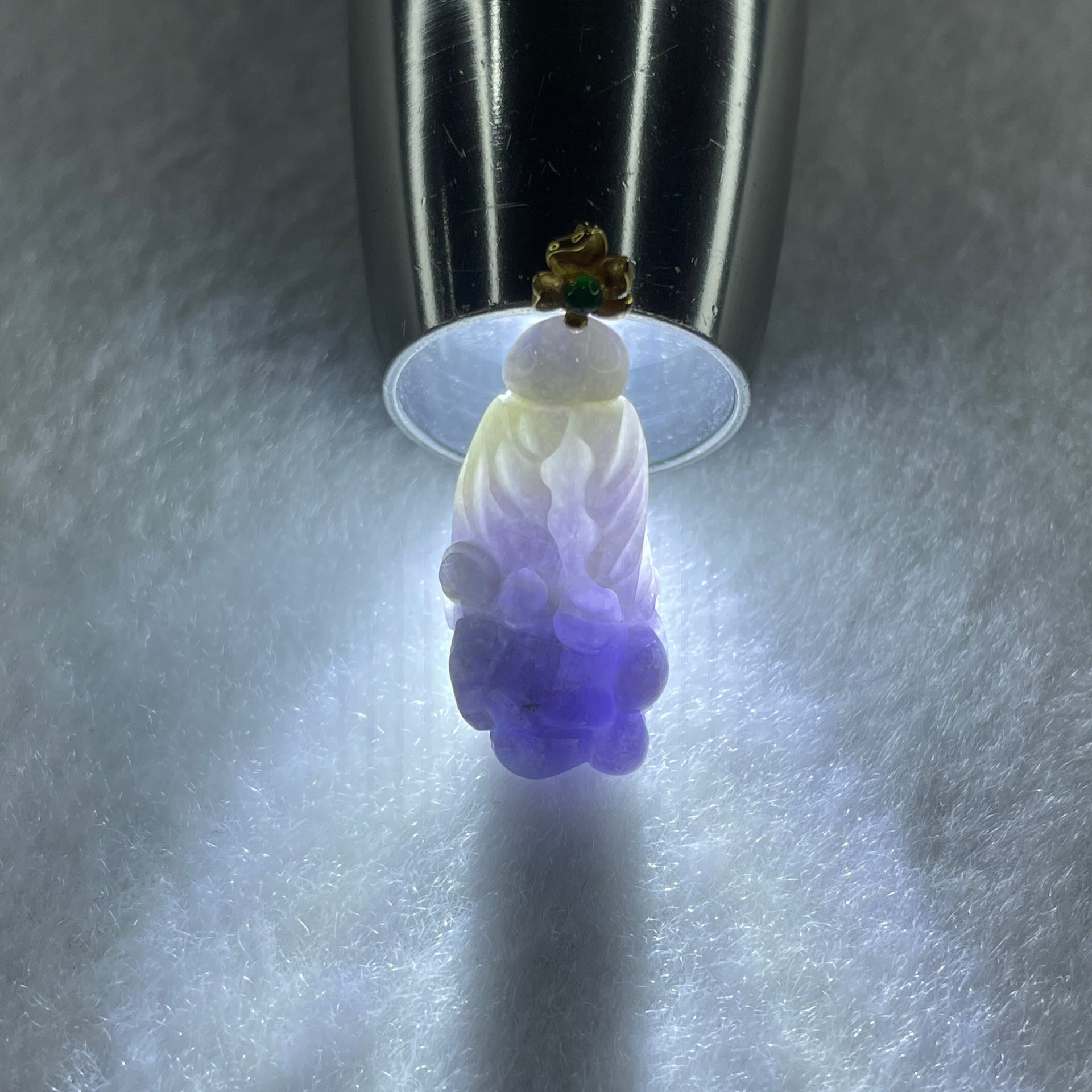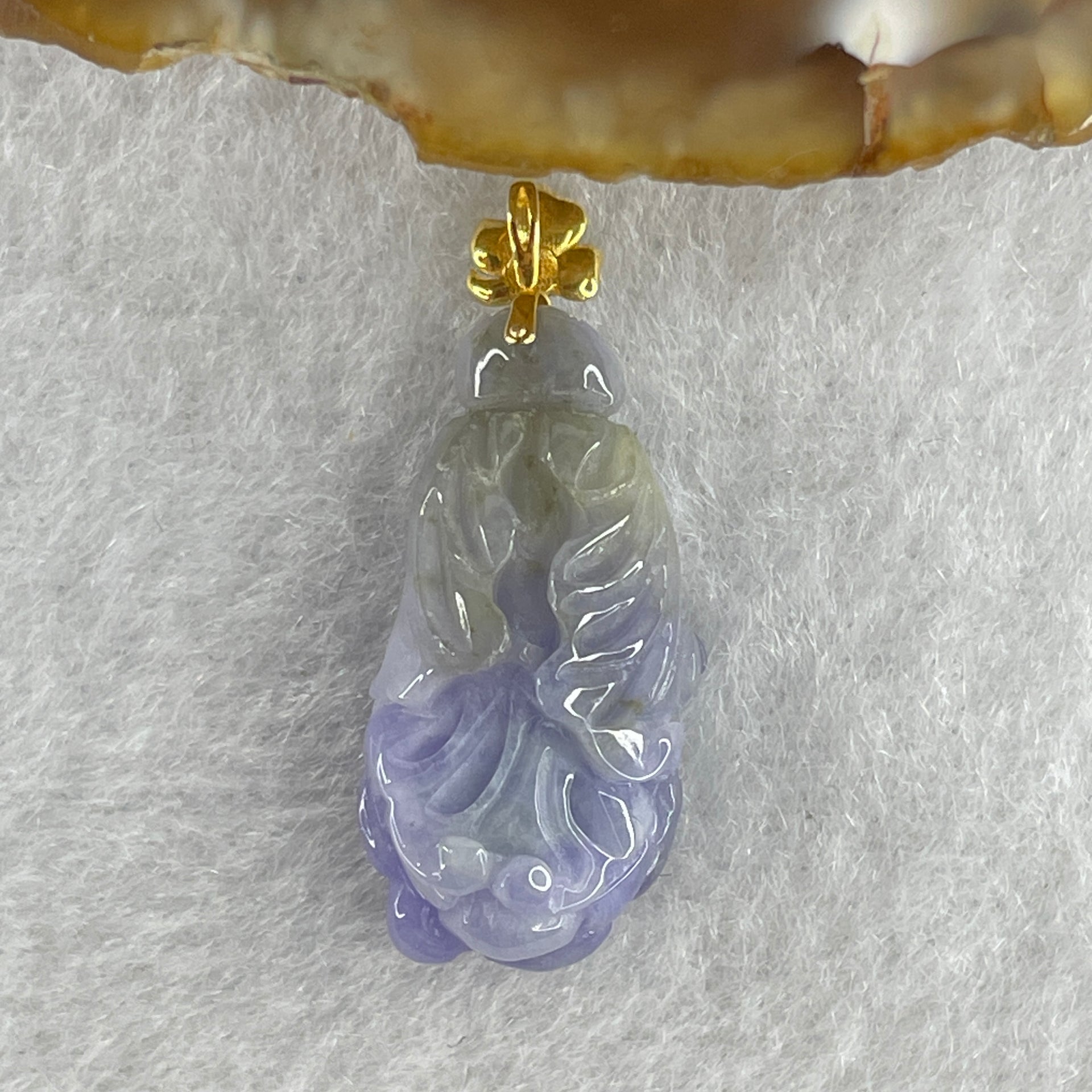 Certified Natural Type A Intense Deep Lavender Jadeite Cabbage with Icy Green Jadeite in 18K Yellow Gold Clasp Pendant 3.52g 23.1 by 11.5 by 9.0mm