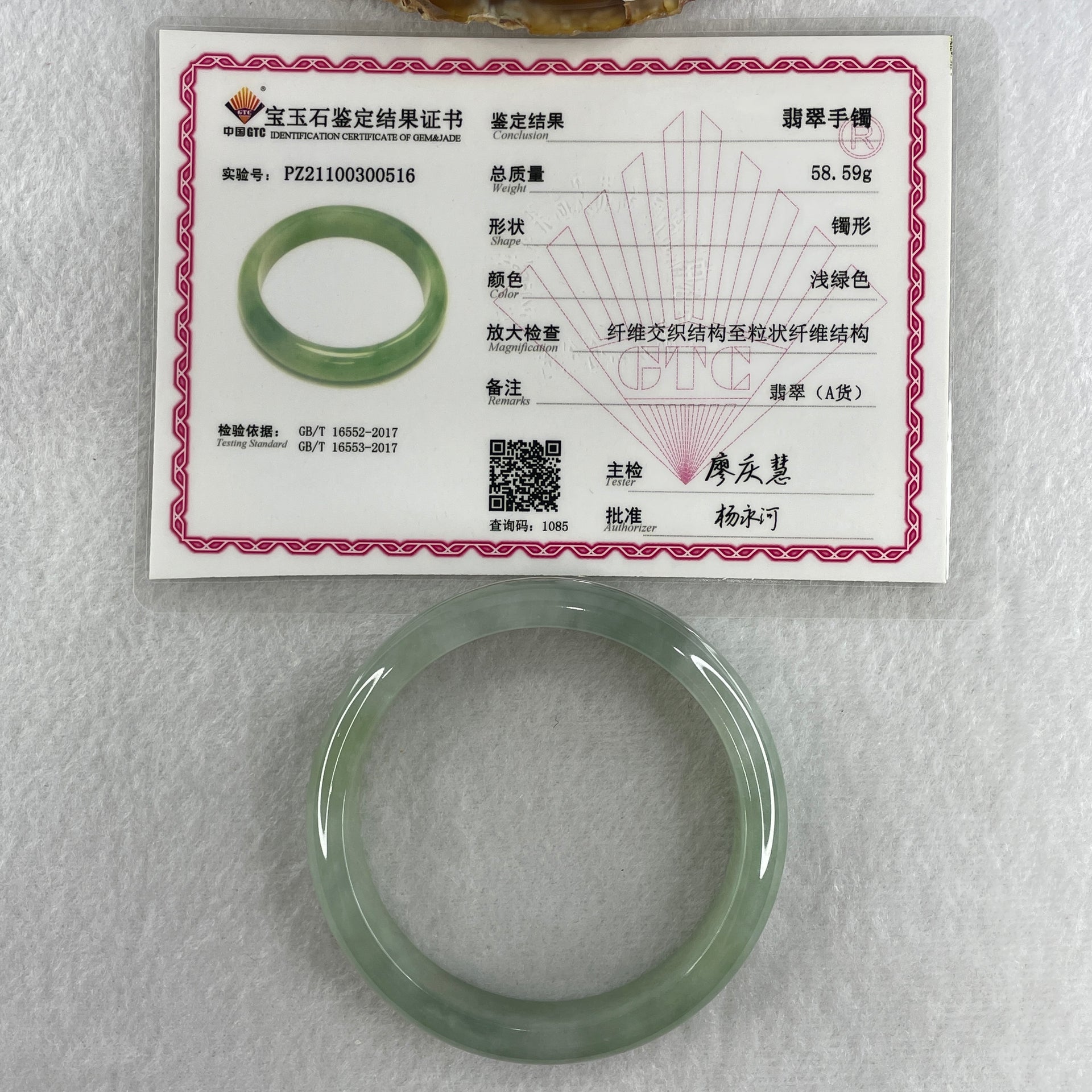 Certified Natural Type A Jelly Green Jadeite Bangle 58.59g Internal Diameter 58.2mm 13.9 by 8.7mm (Close to Perfect)