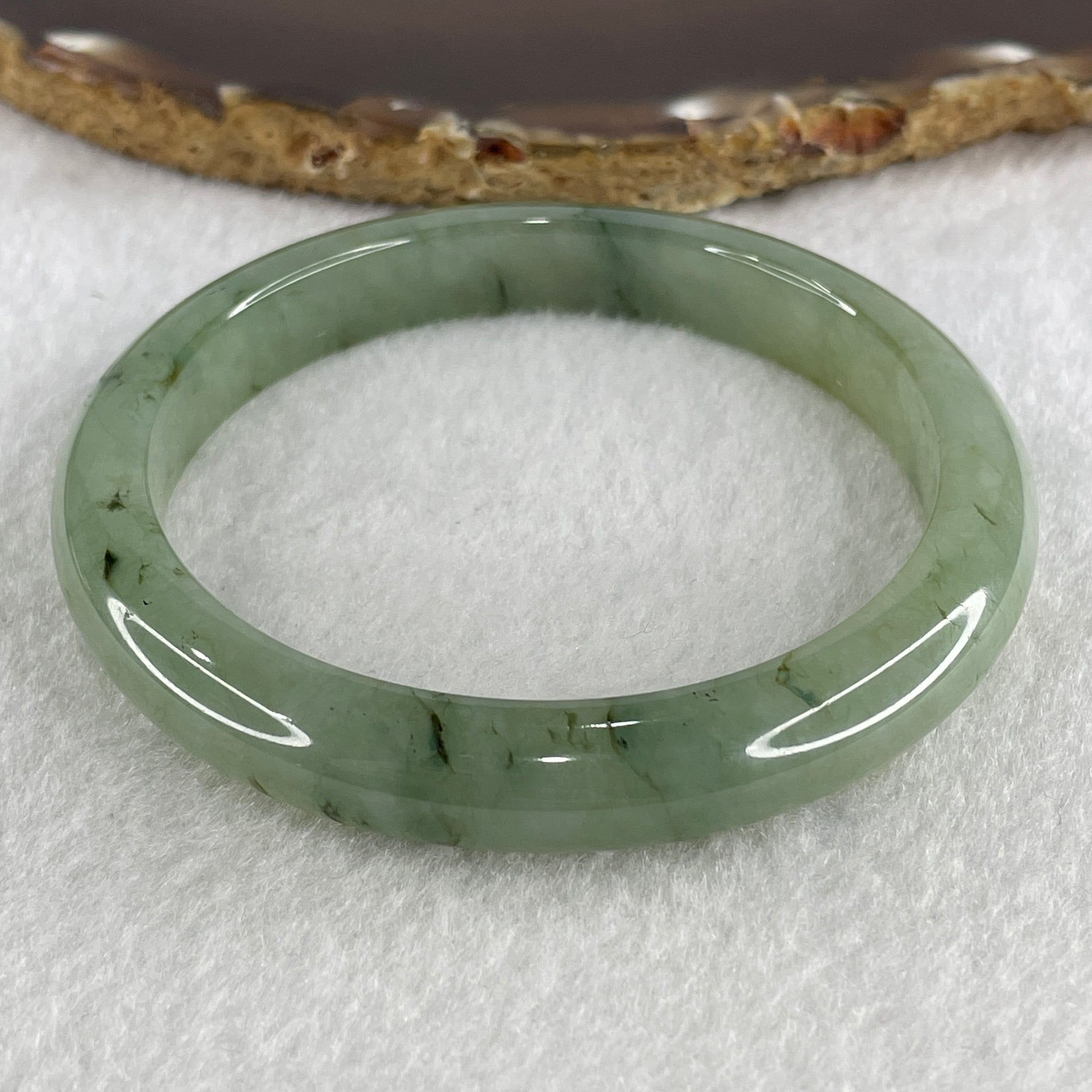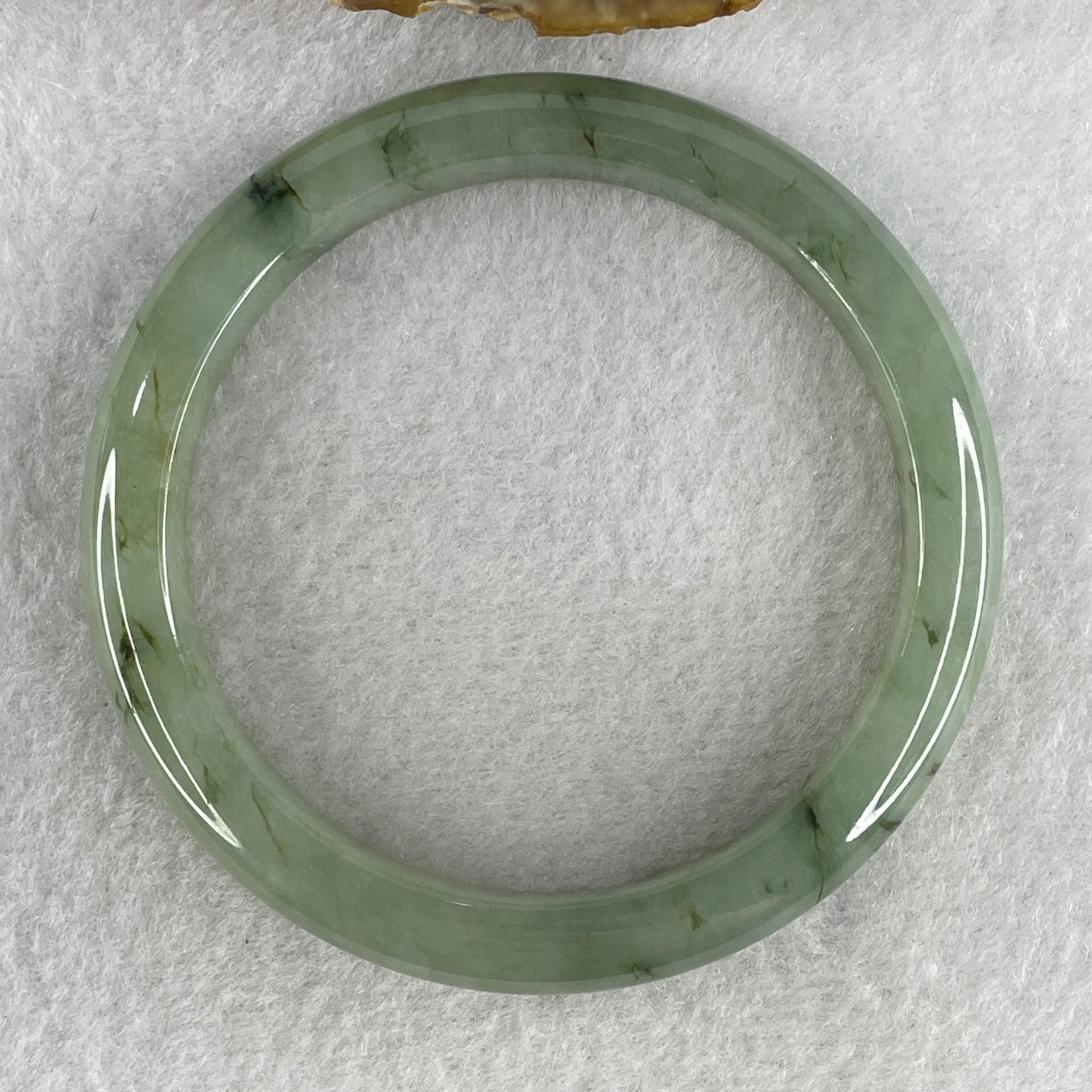 Certified Natural Type A Jelly Green with Brownish Spot Jadeite Bangle 45.20g Internal Diameter 58.6mm 10.0 by 8.1mm (Very Very Slight Internal Line)