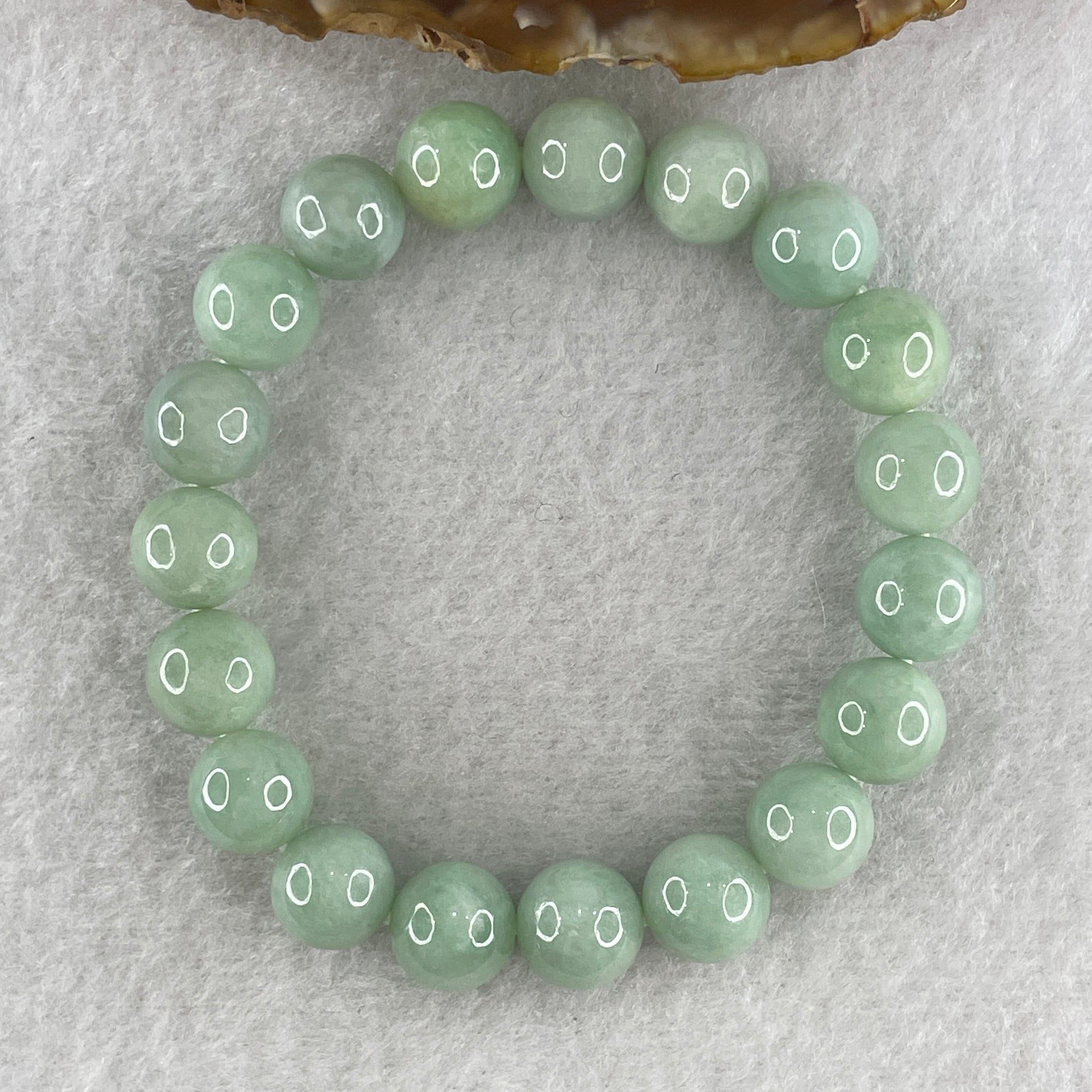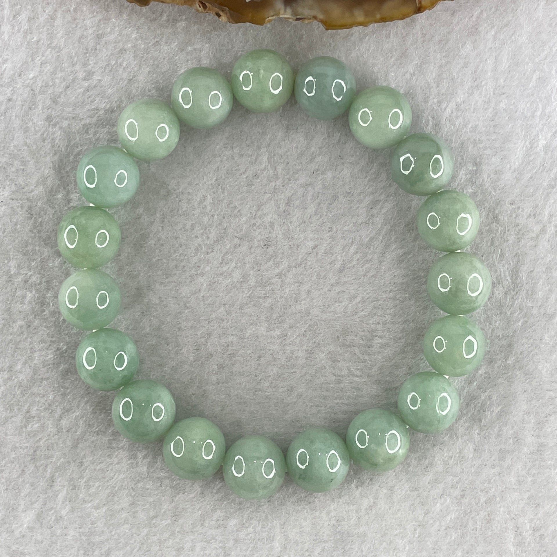 Certified Natural Type A Light Green Beads Bracelet 35.93g 16cm 10.4mm 19Beads