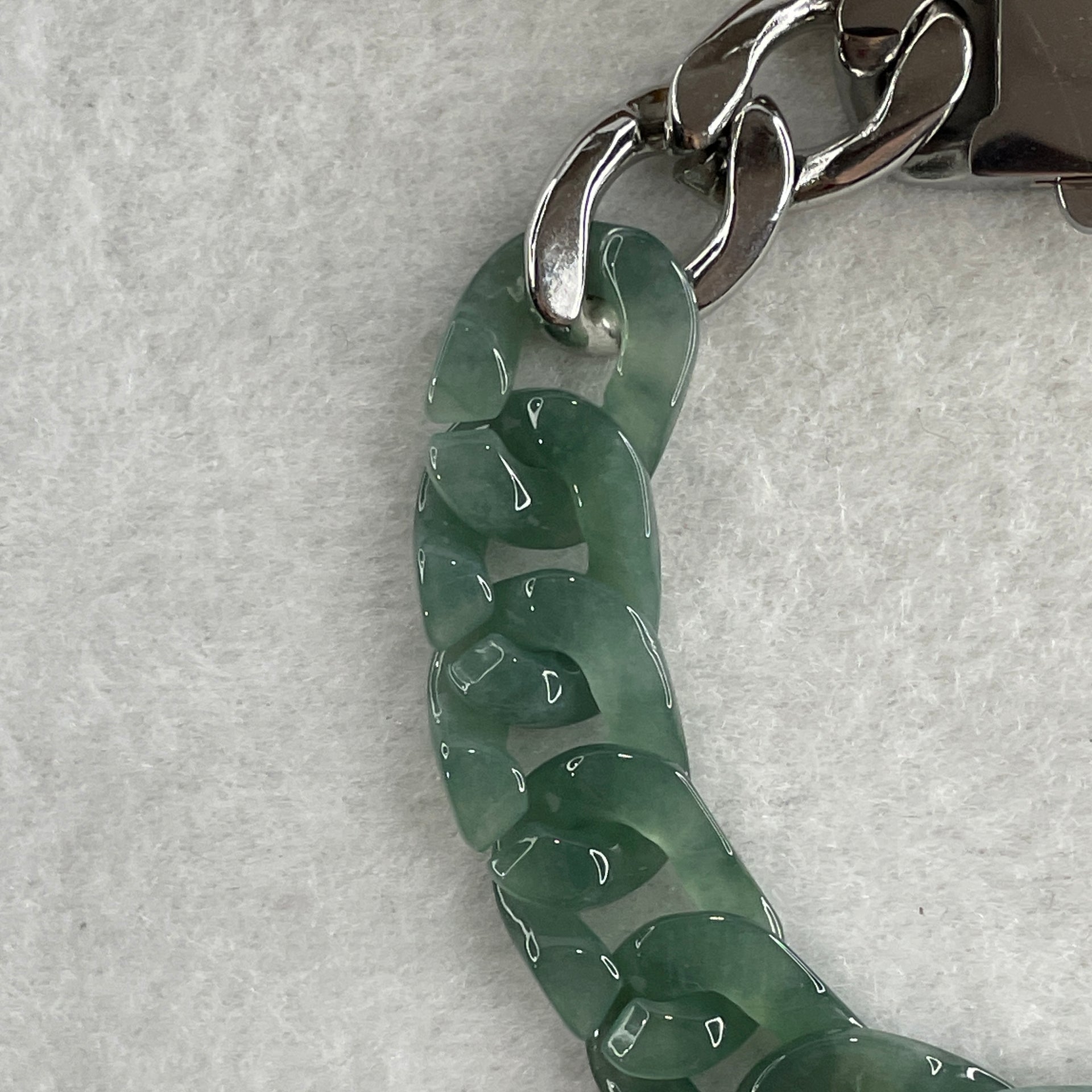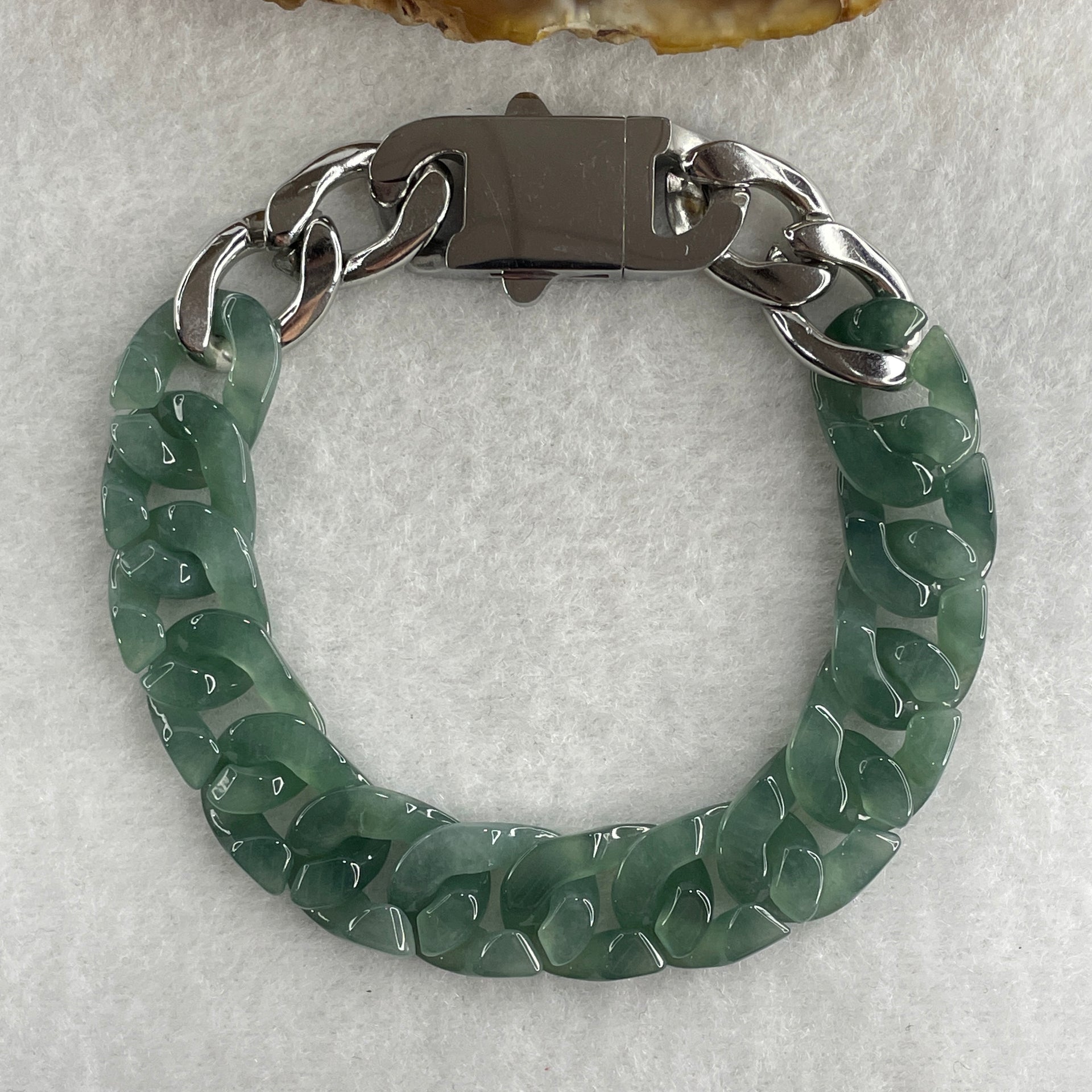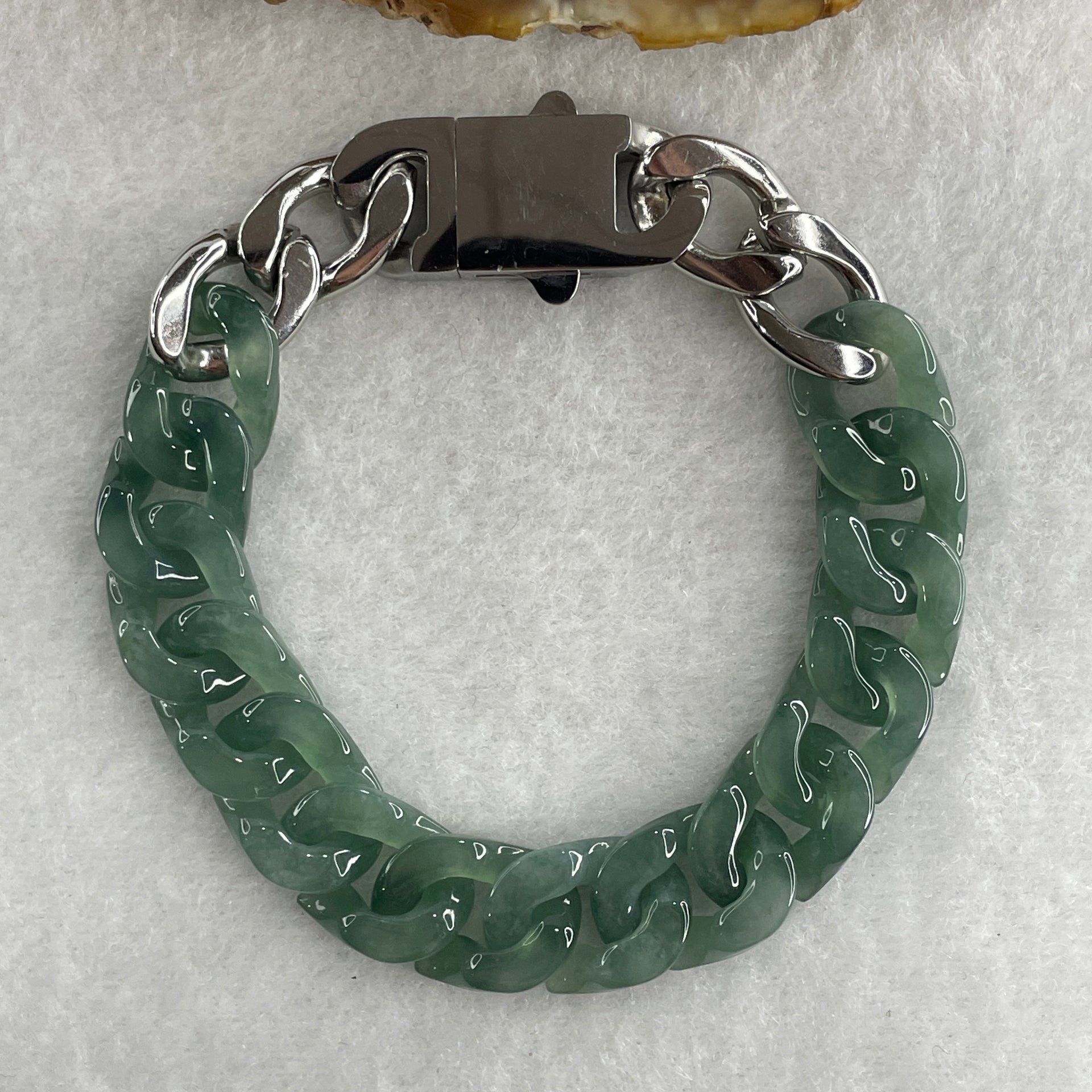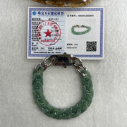 Certified Natural Type A Semi Icy Blueish Green Jadeite Cuban Tennis Bracelet with Metal Clap 30.93g 17.5cm 12.8 by 17.5 by 4.1mm 14 Pcs