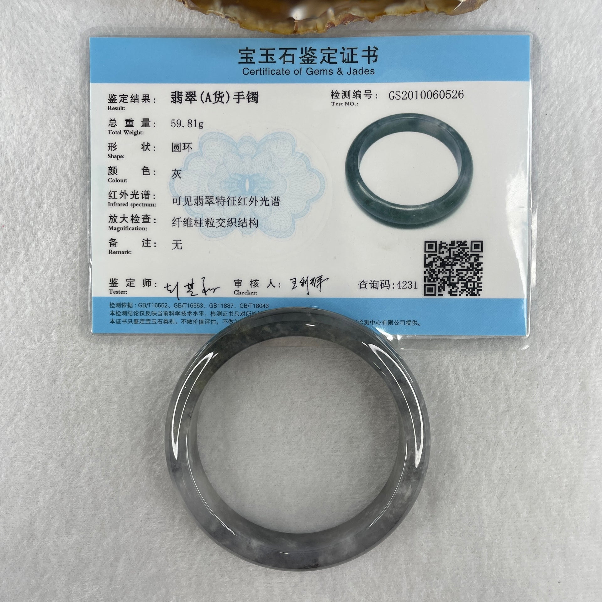 Certified Type A Natural Jelly Wuji Grey Jadeite Bangle 59.81g Inner Diameter 59.1mm 13.3 by 8.6mm (Perfect)