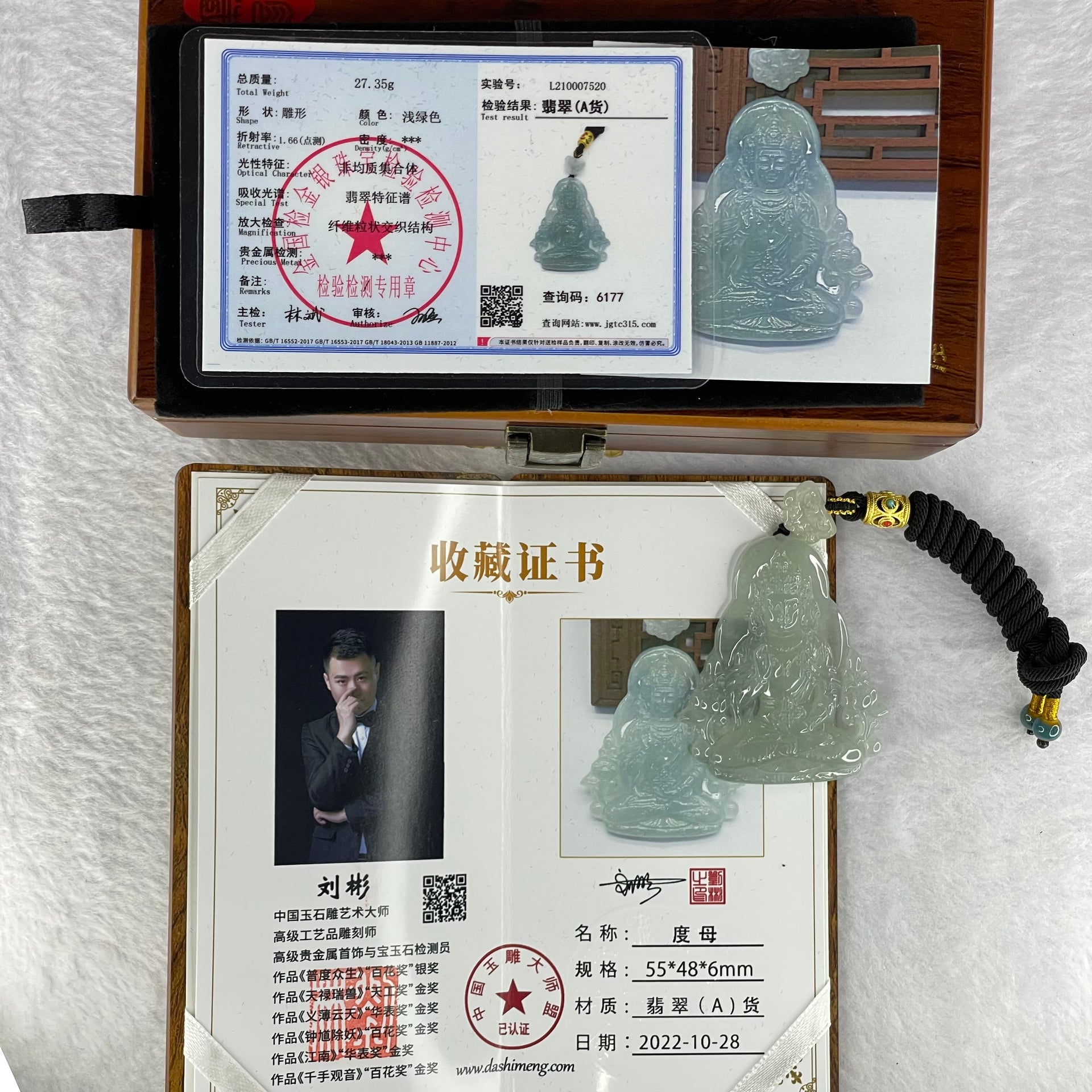Grand Master Icy Type A Sky Blue Jadeite Du Mu 度母 Jadeite Pendant 27.35g 55.0 by 48.0 by 6.0mm