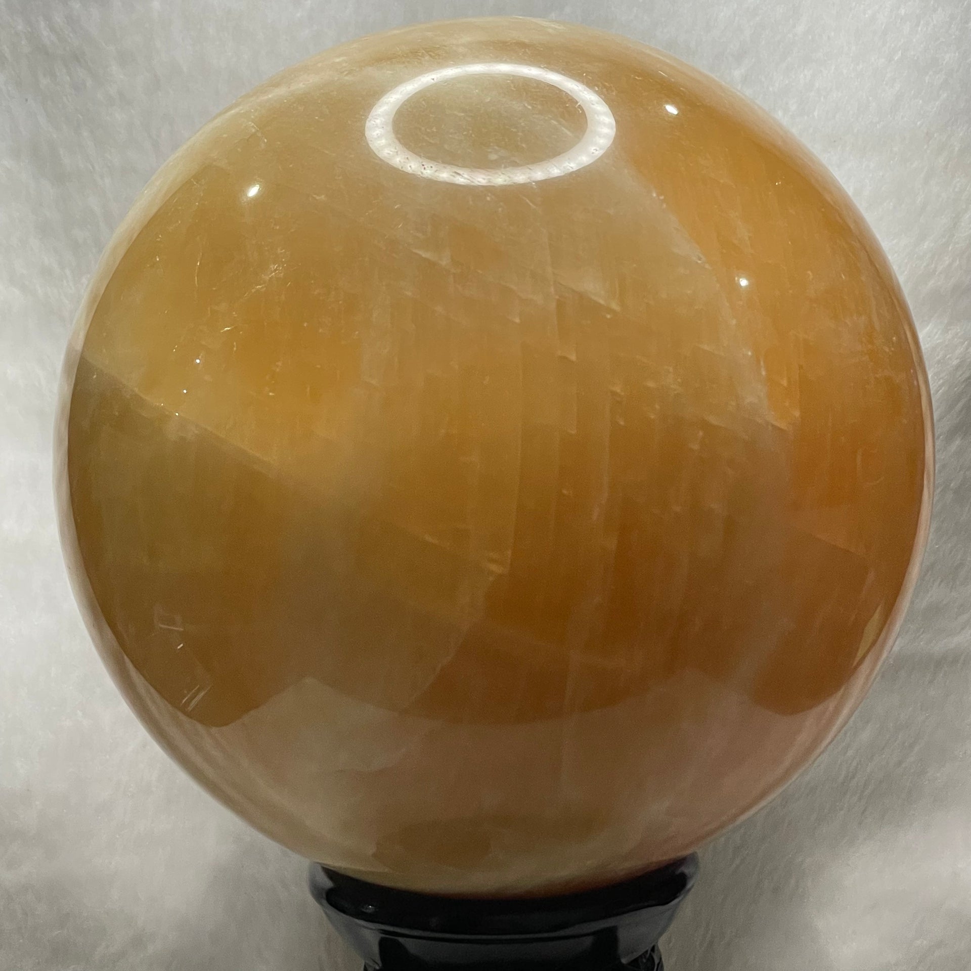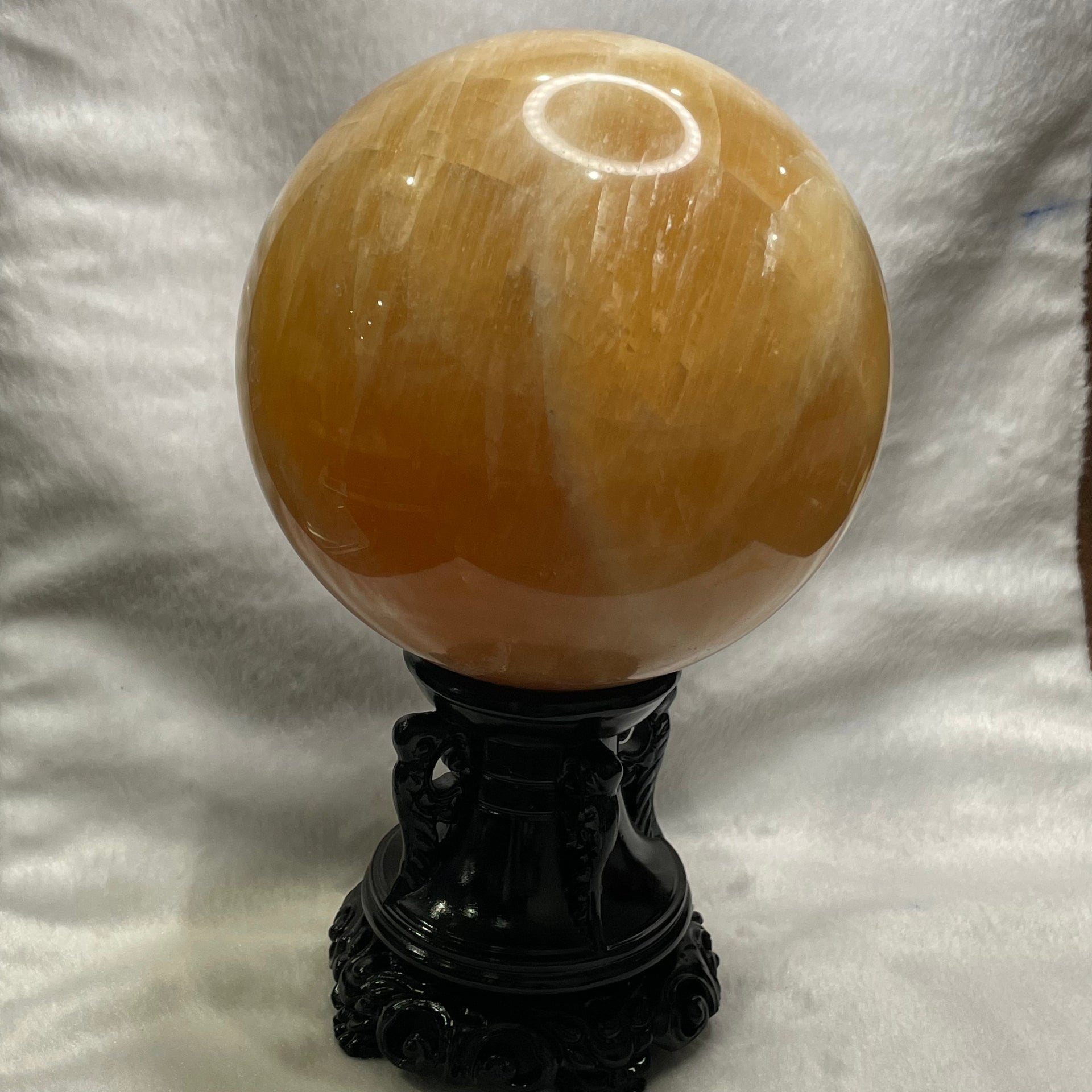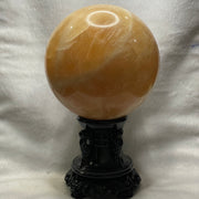 Natural Citrine Crystal Ball Display with Wooden Stand - 6555g Dimensions with Stand: 253.9 by 242.5 by 165.9mm Crystal Ball Dimensions: 139.2 by 139.2mm