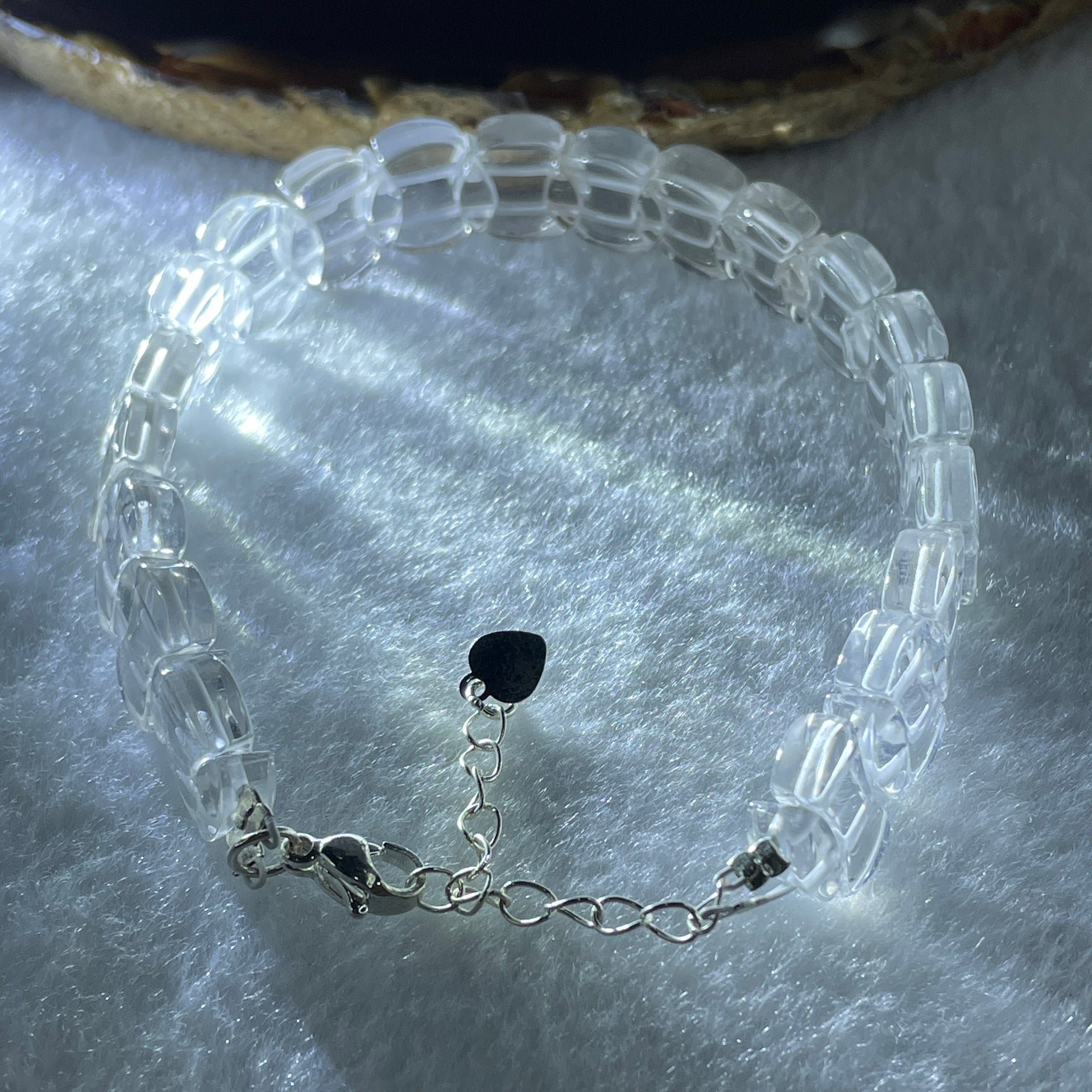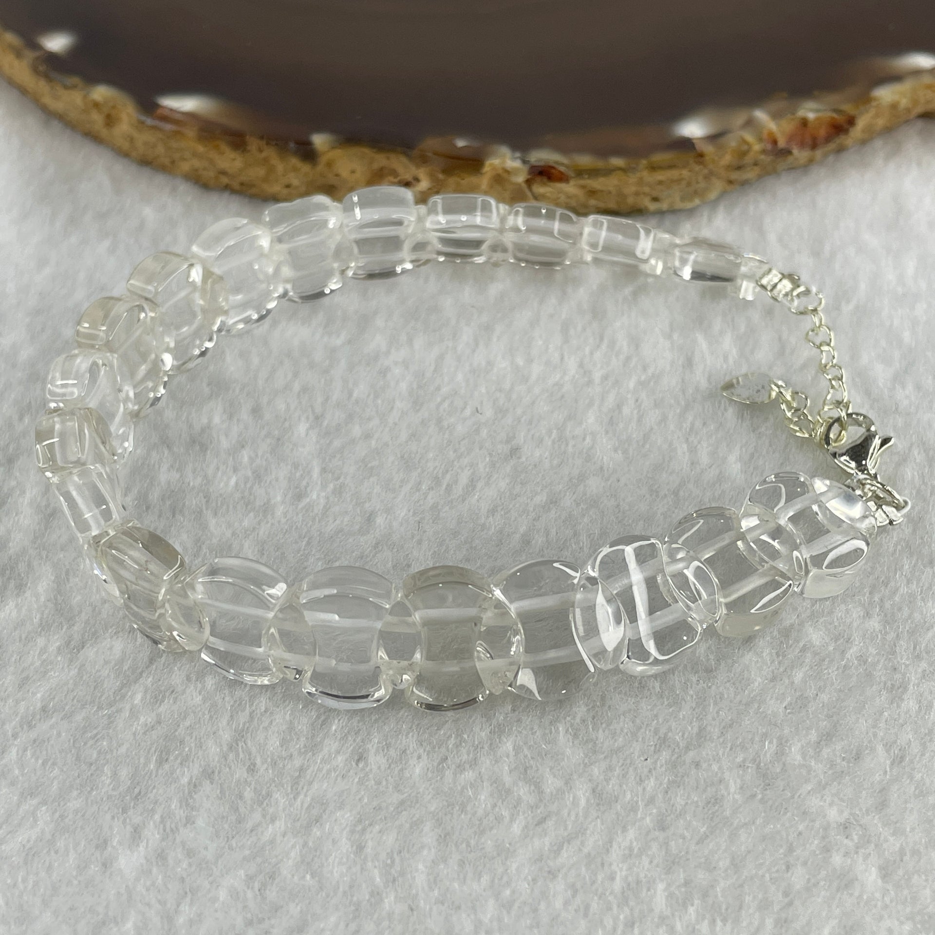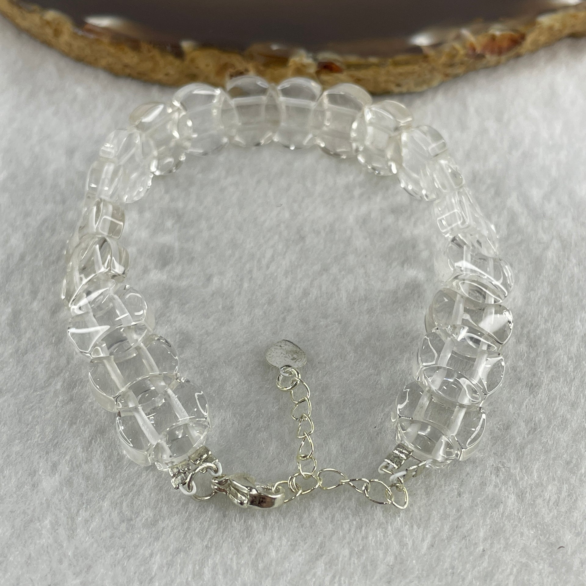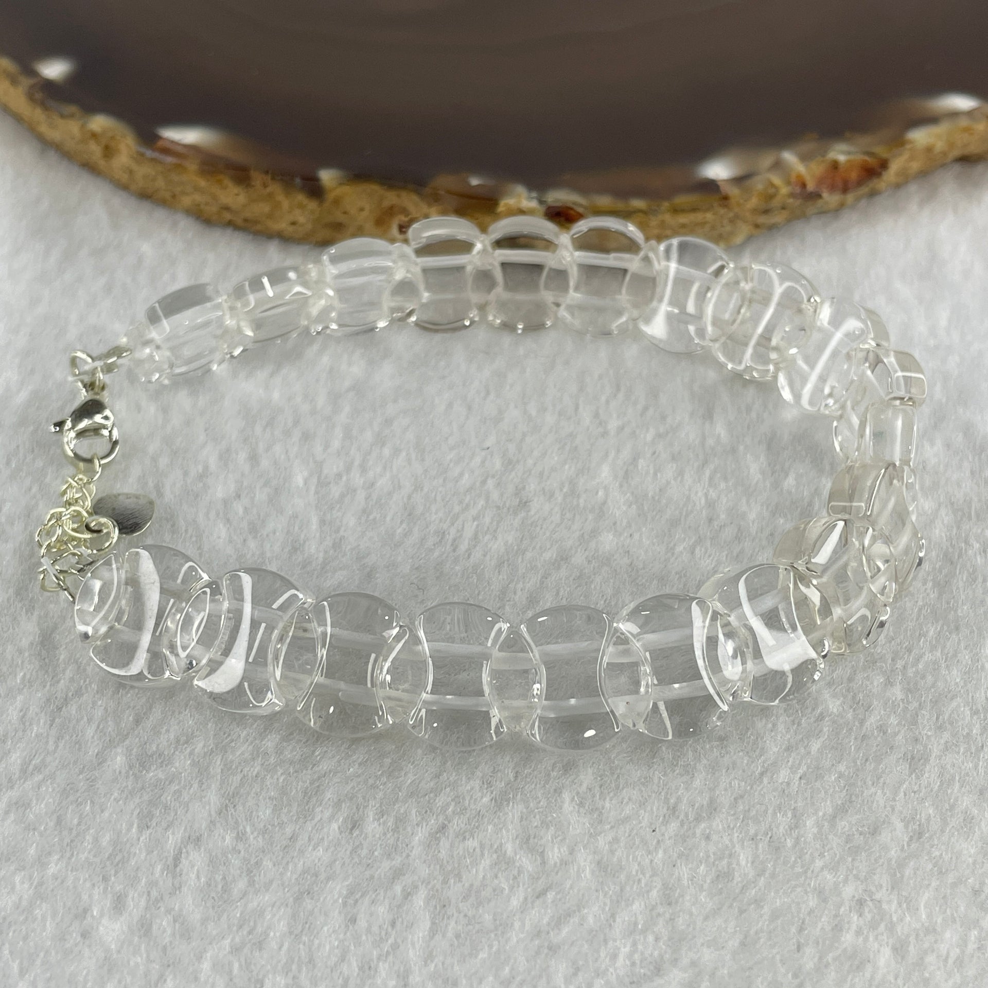 Natural Clear Quartz Coins Beads Bracelet 22.05g Adjustable 17-22cm 12.3mm 20pcs