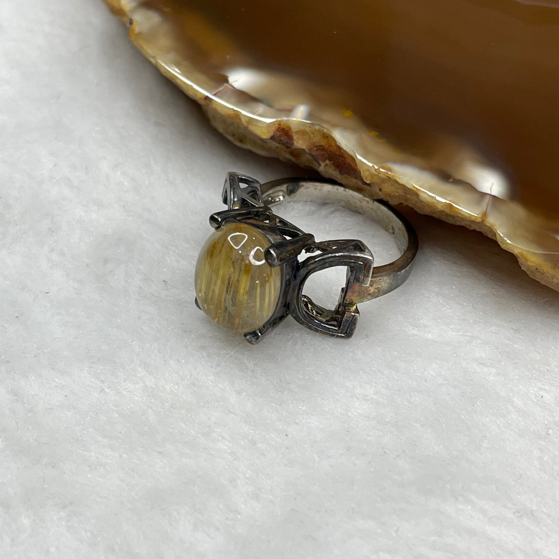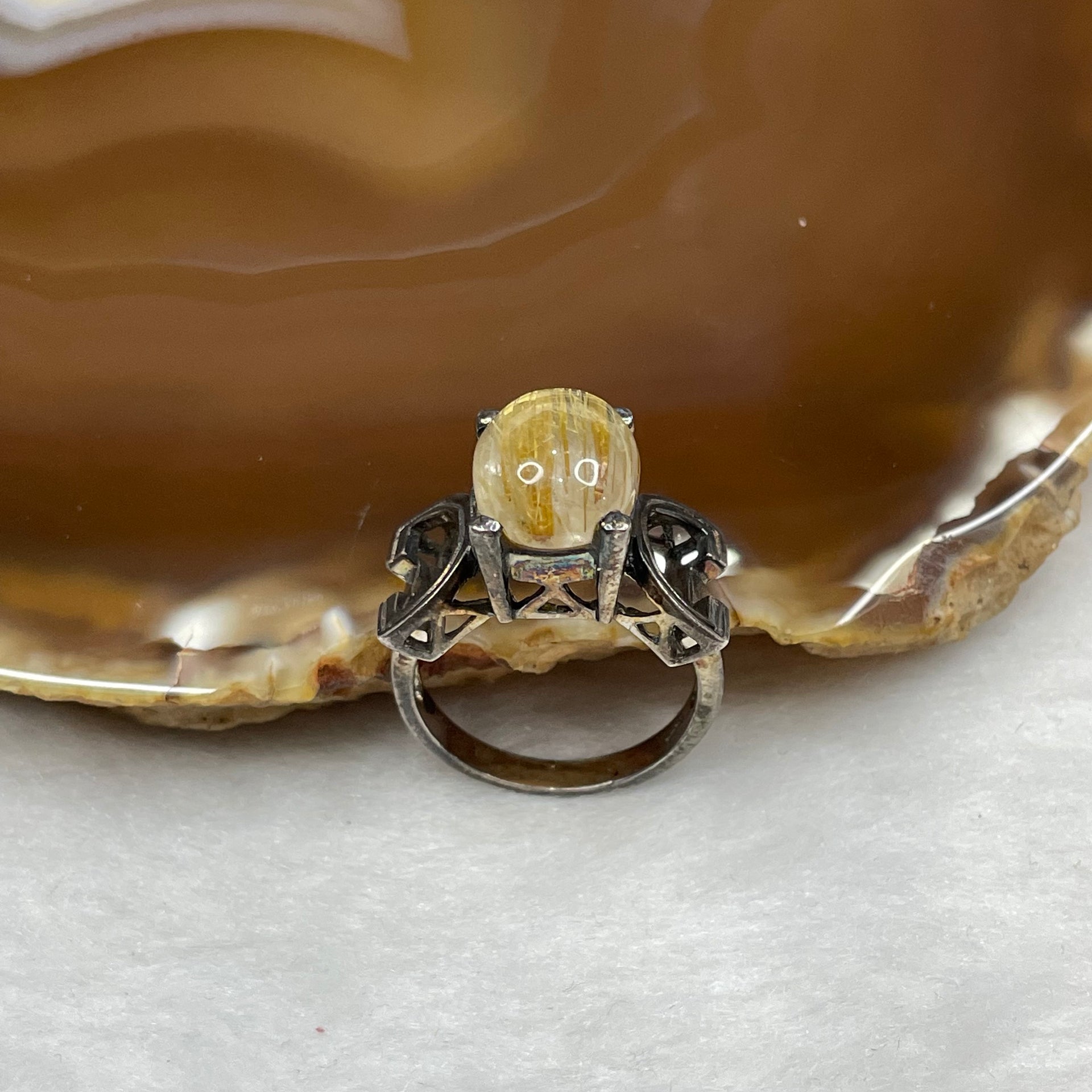 Natural Golden Rutilated Quartz 925 Silver Ring US 8 HK 17.5 6.11g 12.0 by 21.4 by 11.4mm