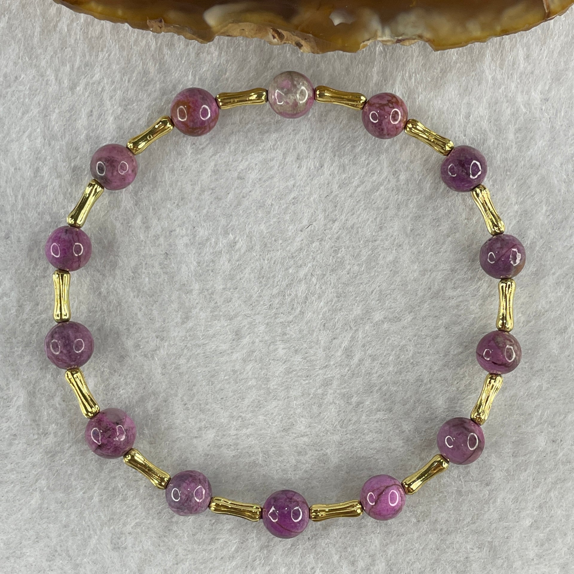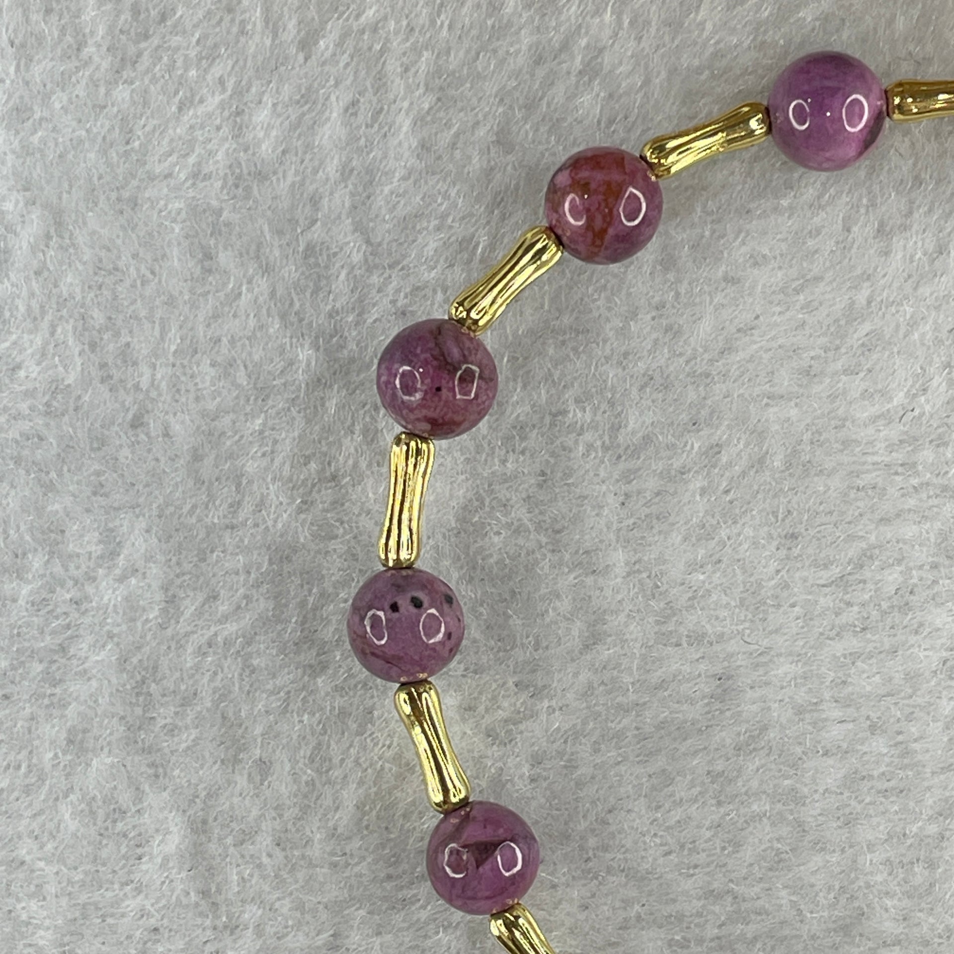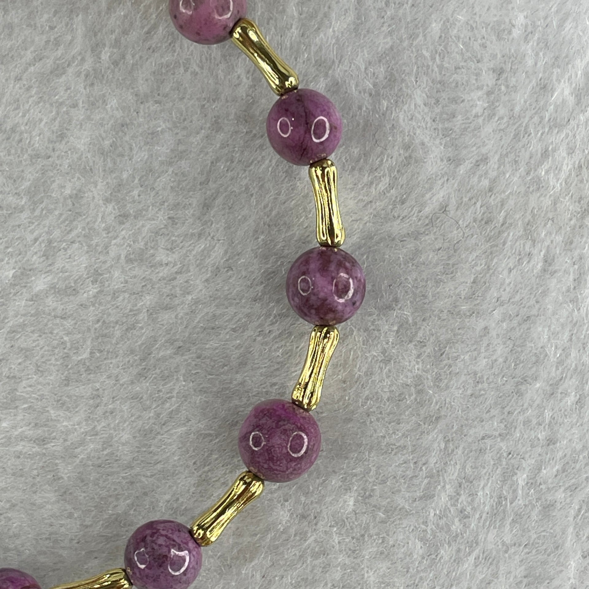 Natural Lepidolite Beads Bracelet with Charms 6.46g 16cm 6.3mm 14Beads