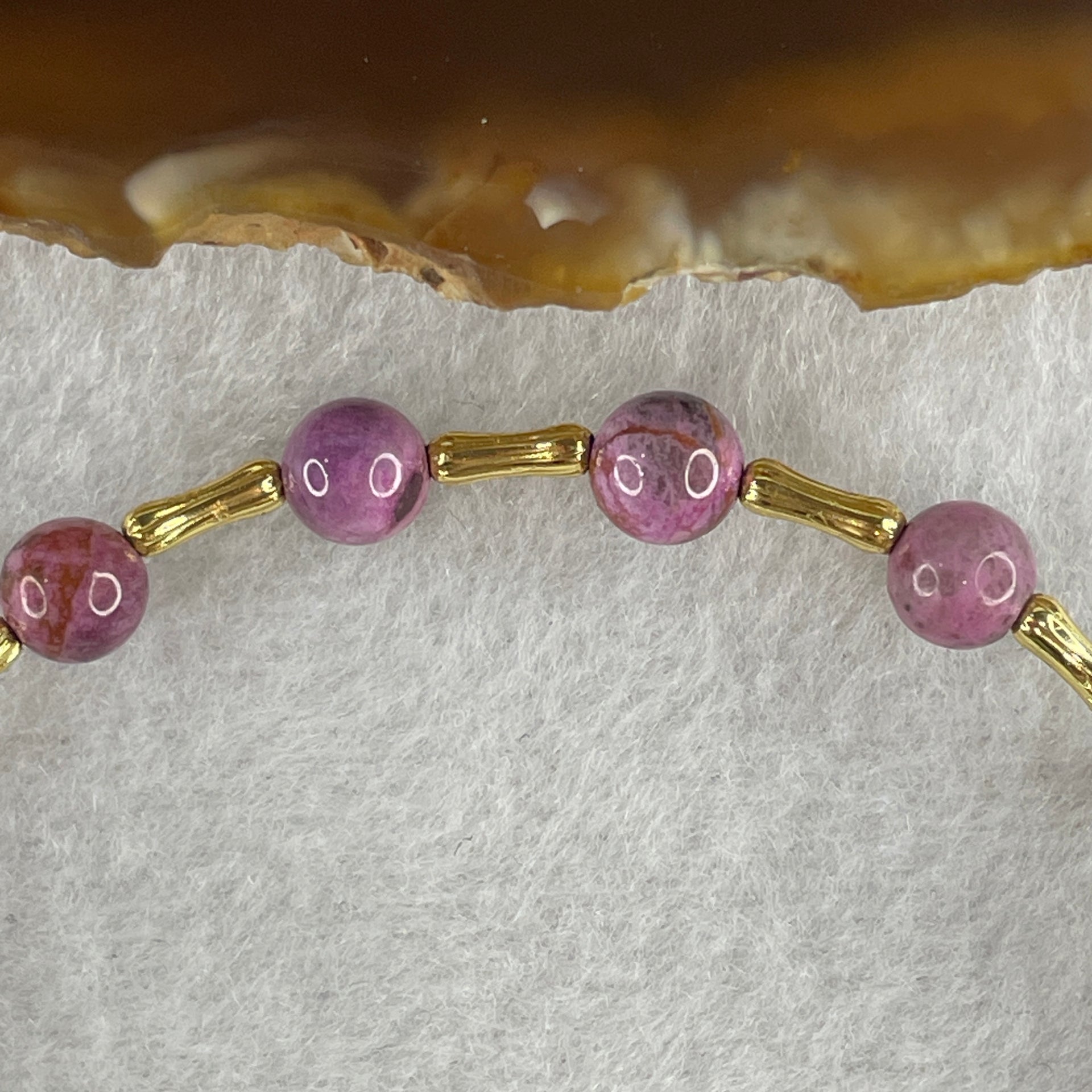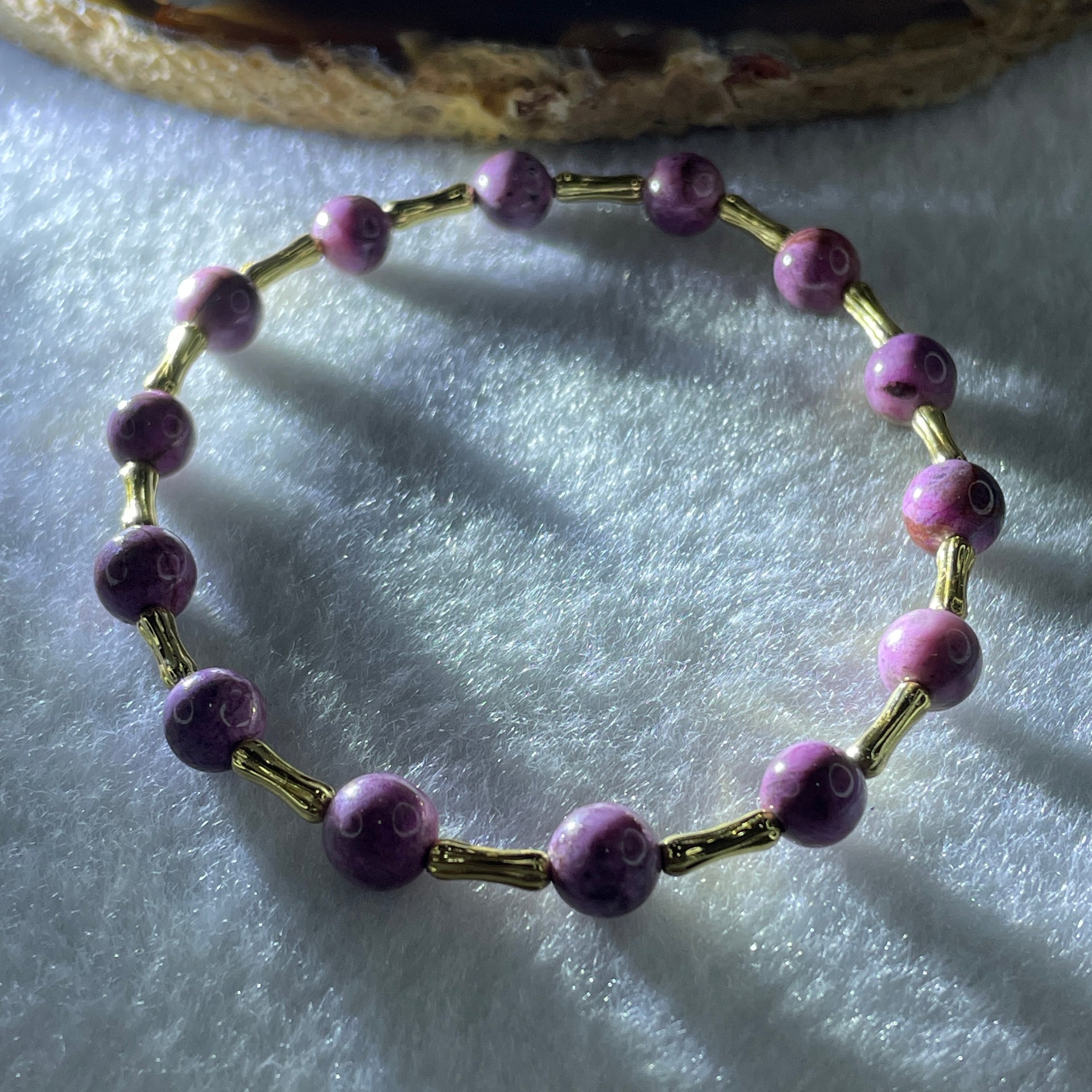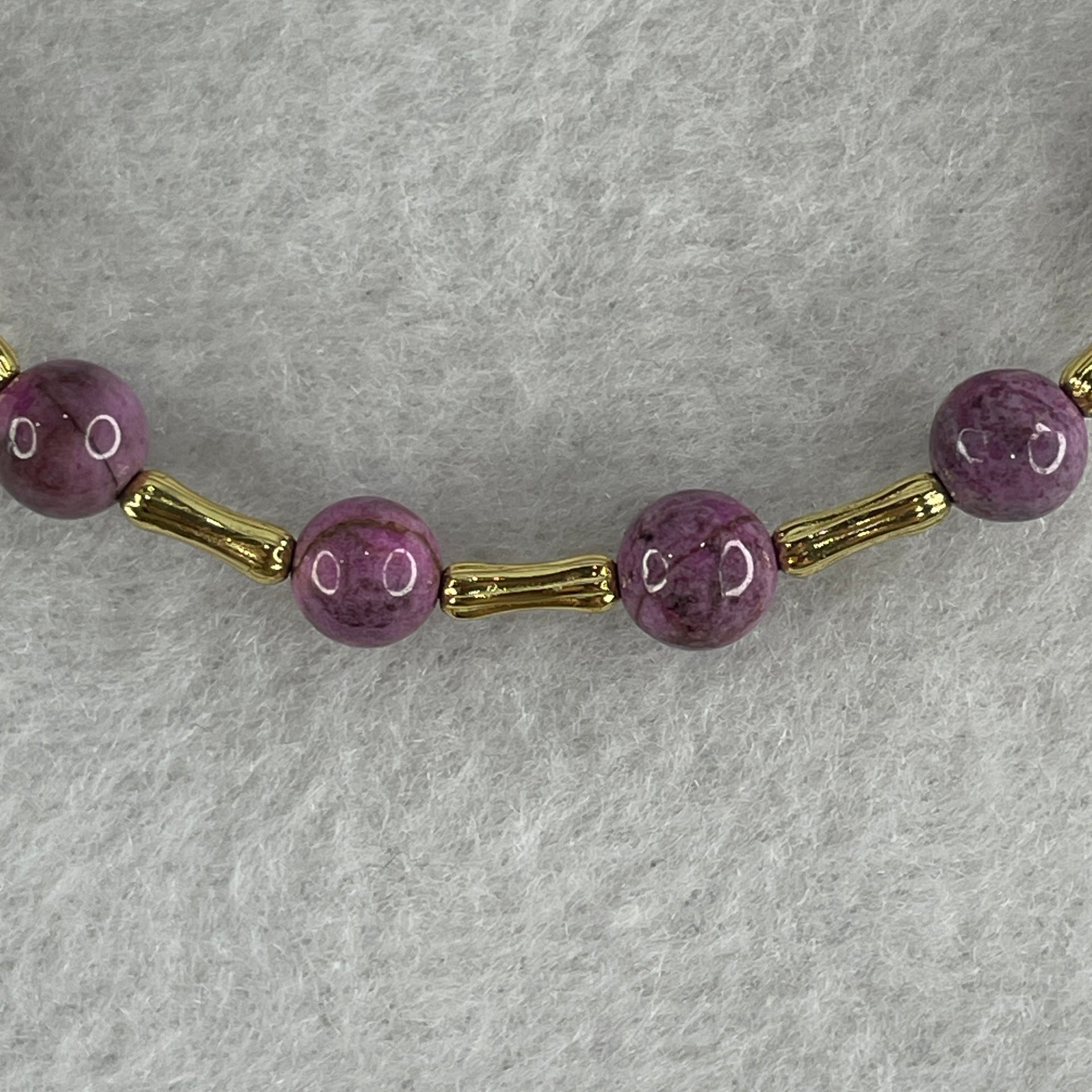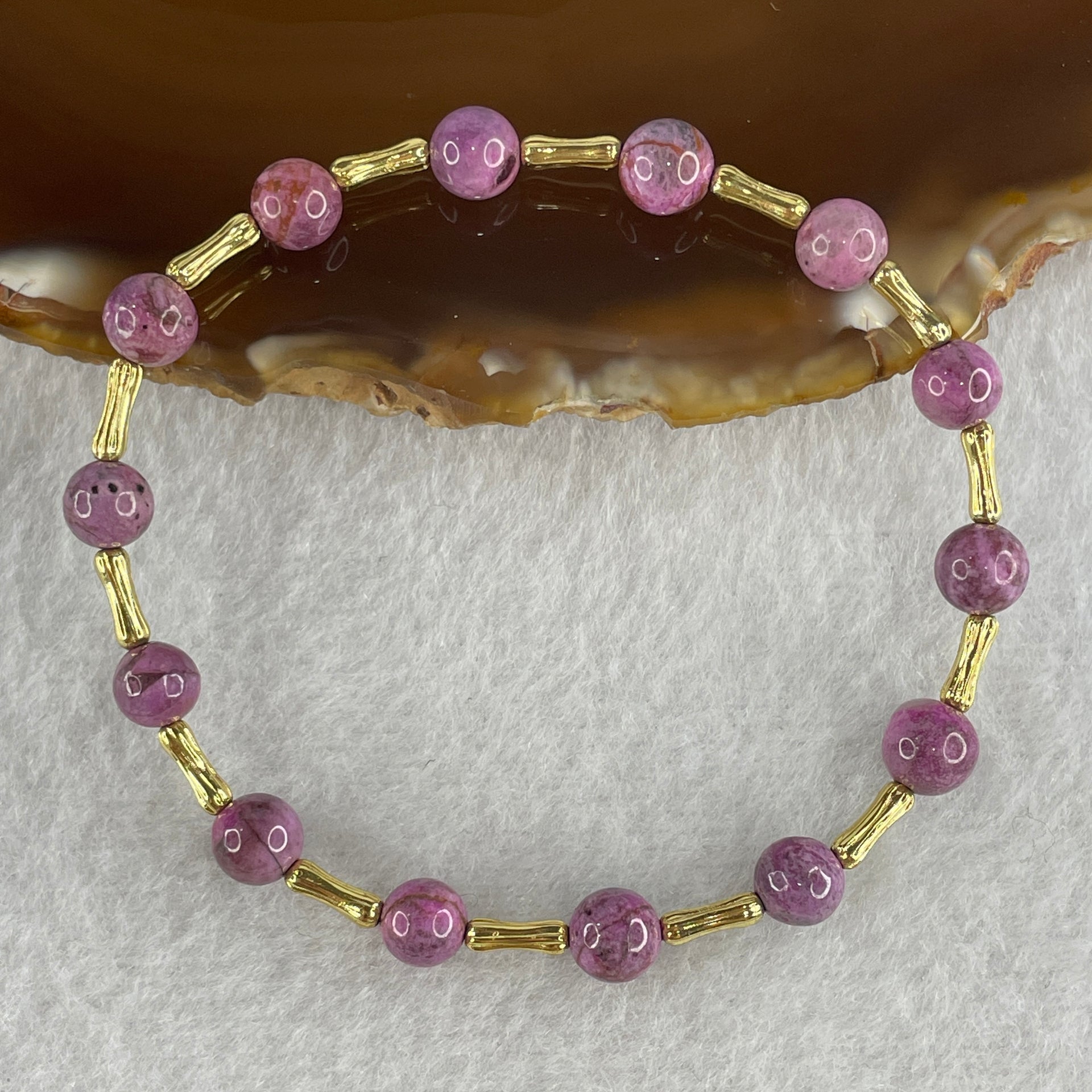 Natural Lepidolite Beads Bracelet with Charms 6.46g 16cm 6.3mm 14Beads