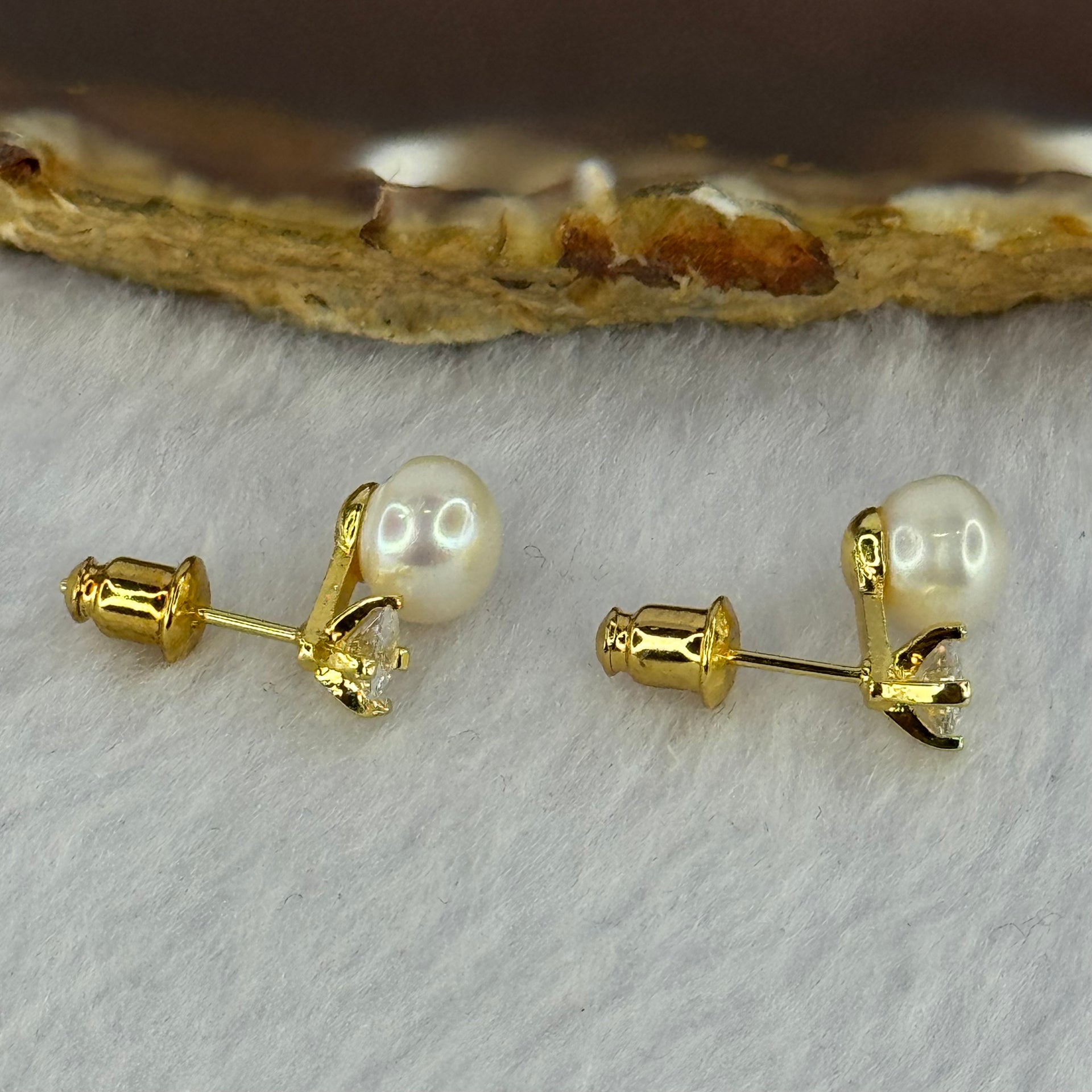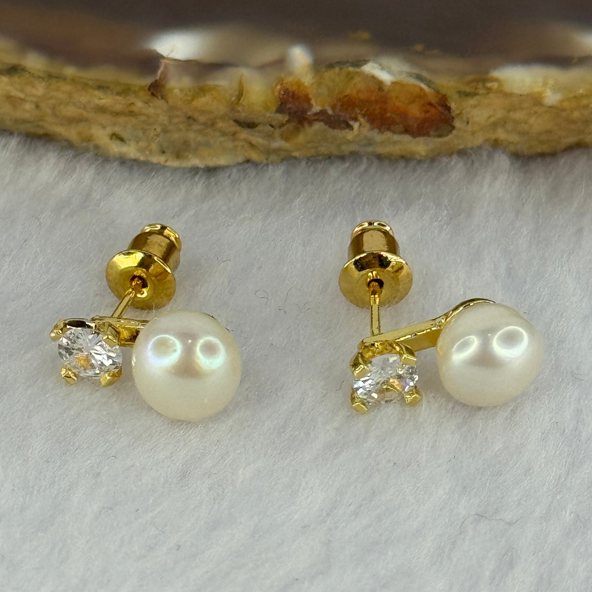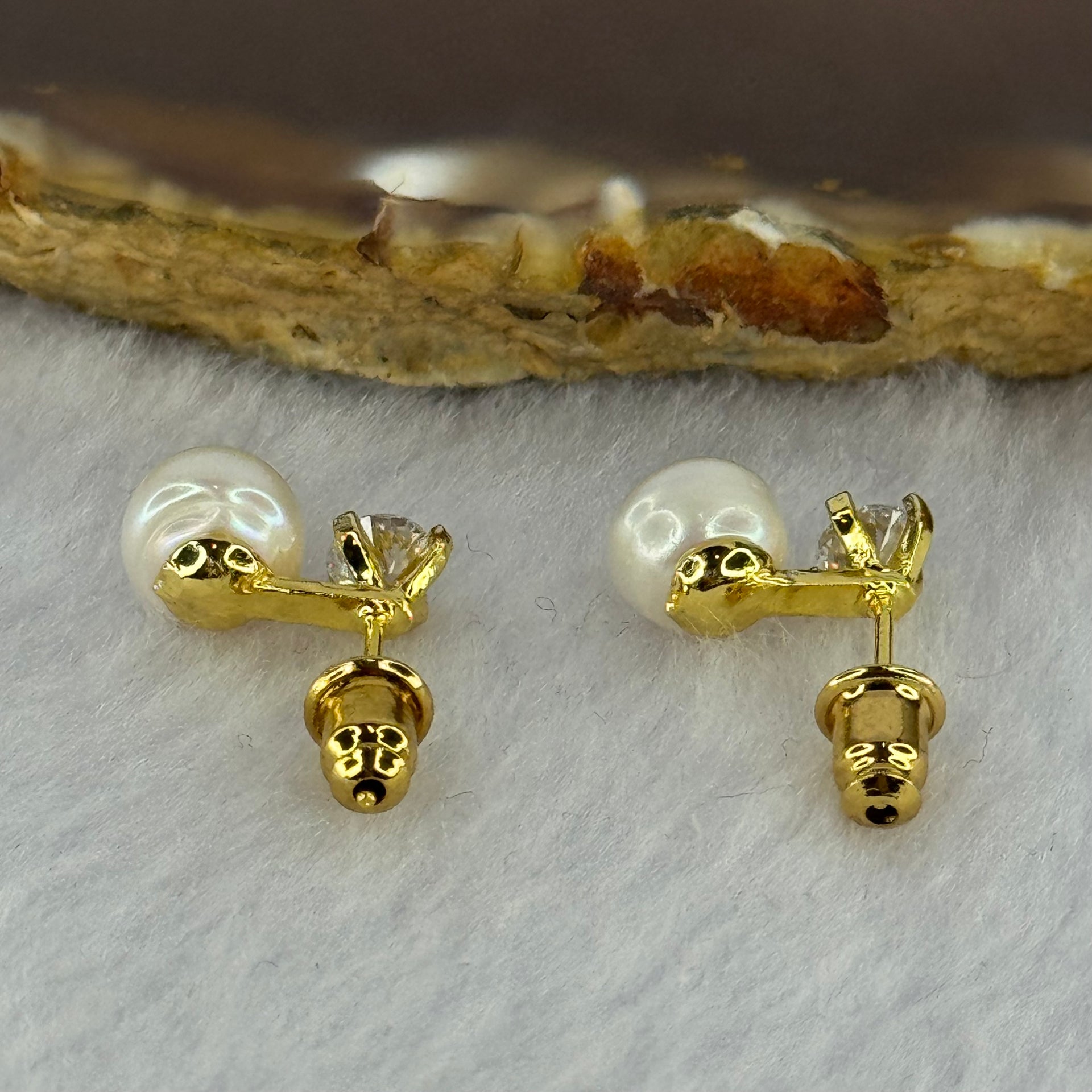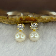 Natural Pearl and Crystal in Sliver Gold Color Earrings 2.33g 7.5mm