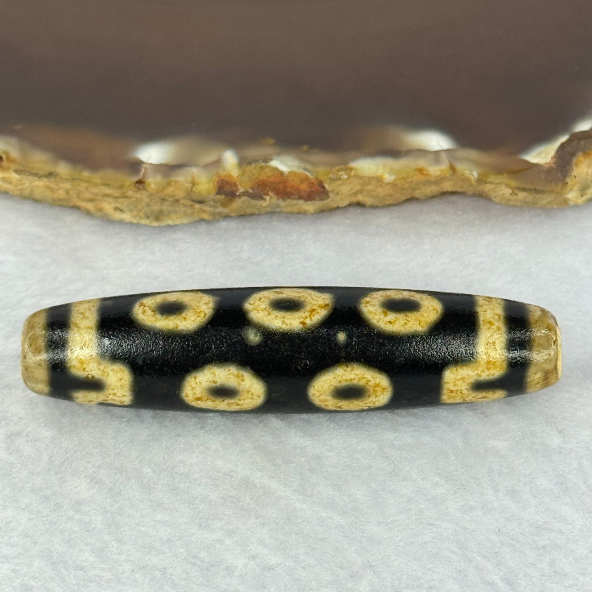 Natural Powerful Tibetan Old Oily Agate 10 Eyes Dzi Bead Heavenly Master (Tian Zhu) 十眼天诛 17.68g 59.4 by 14.0mm