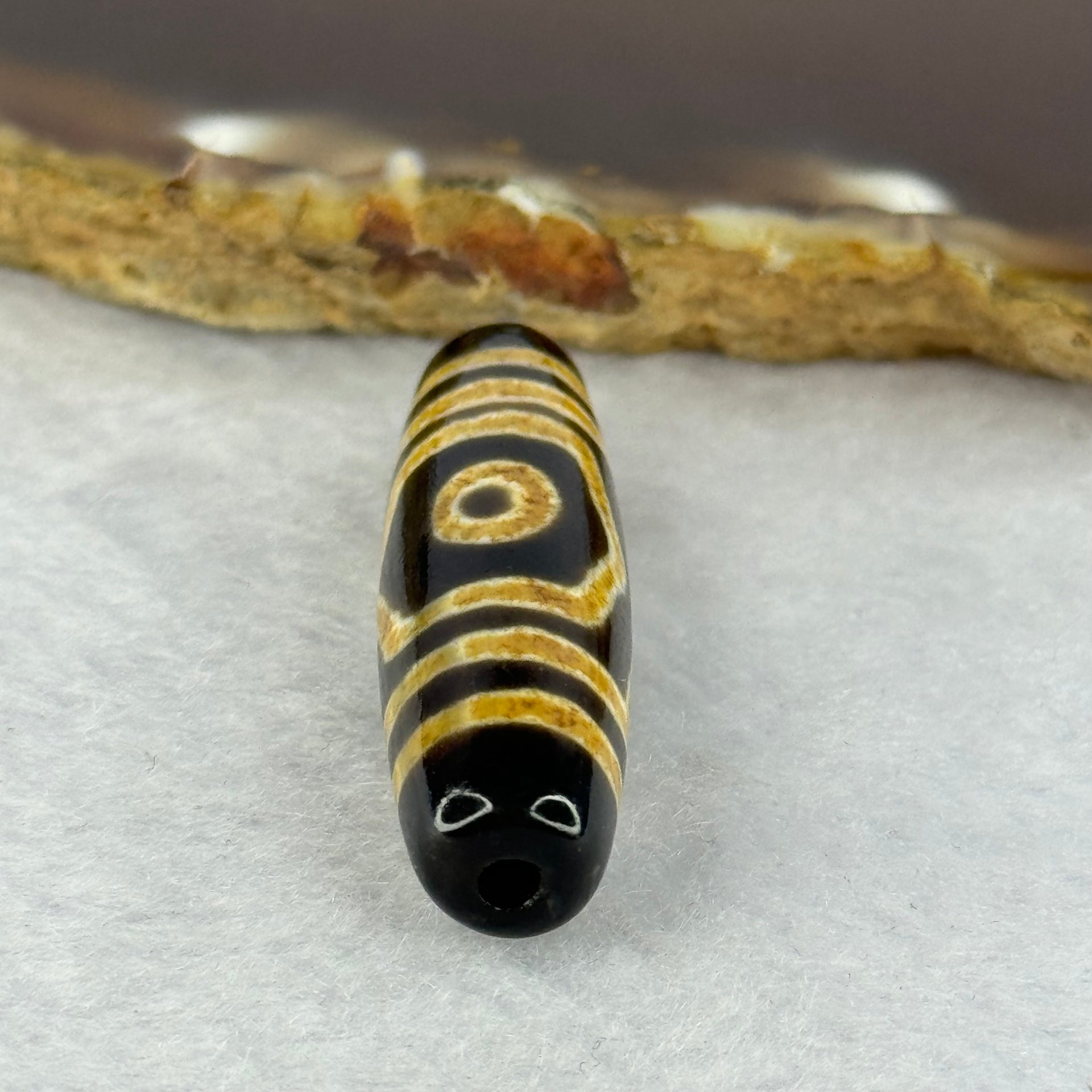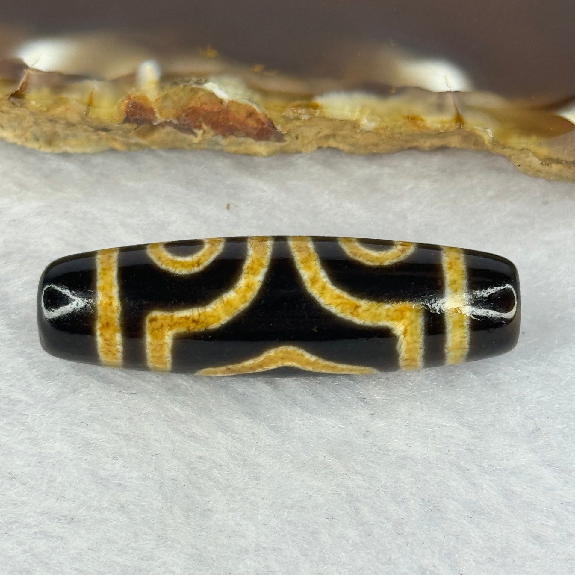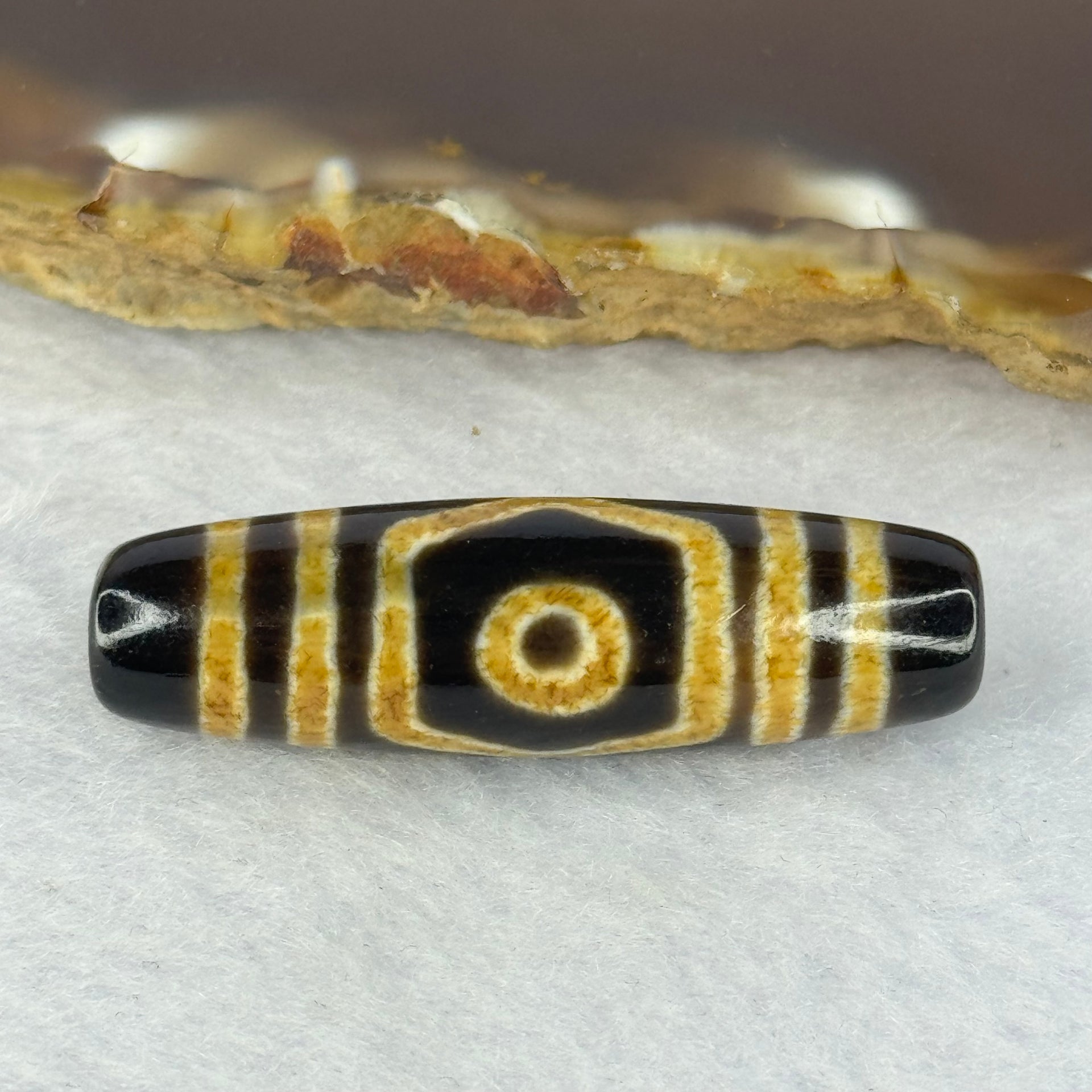 Natural Powerful Tibetan Old Oily Agate 3 Eyes Dzi Bead Heavenly Master (Tian Zhu) 三眼天诛 7.24g 37.9 by 11.2mm