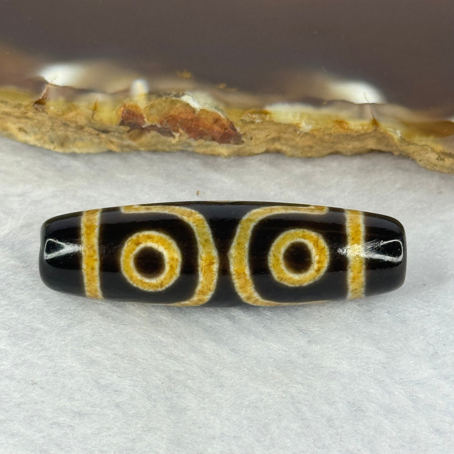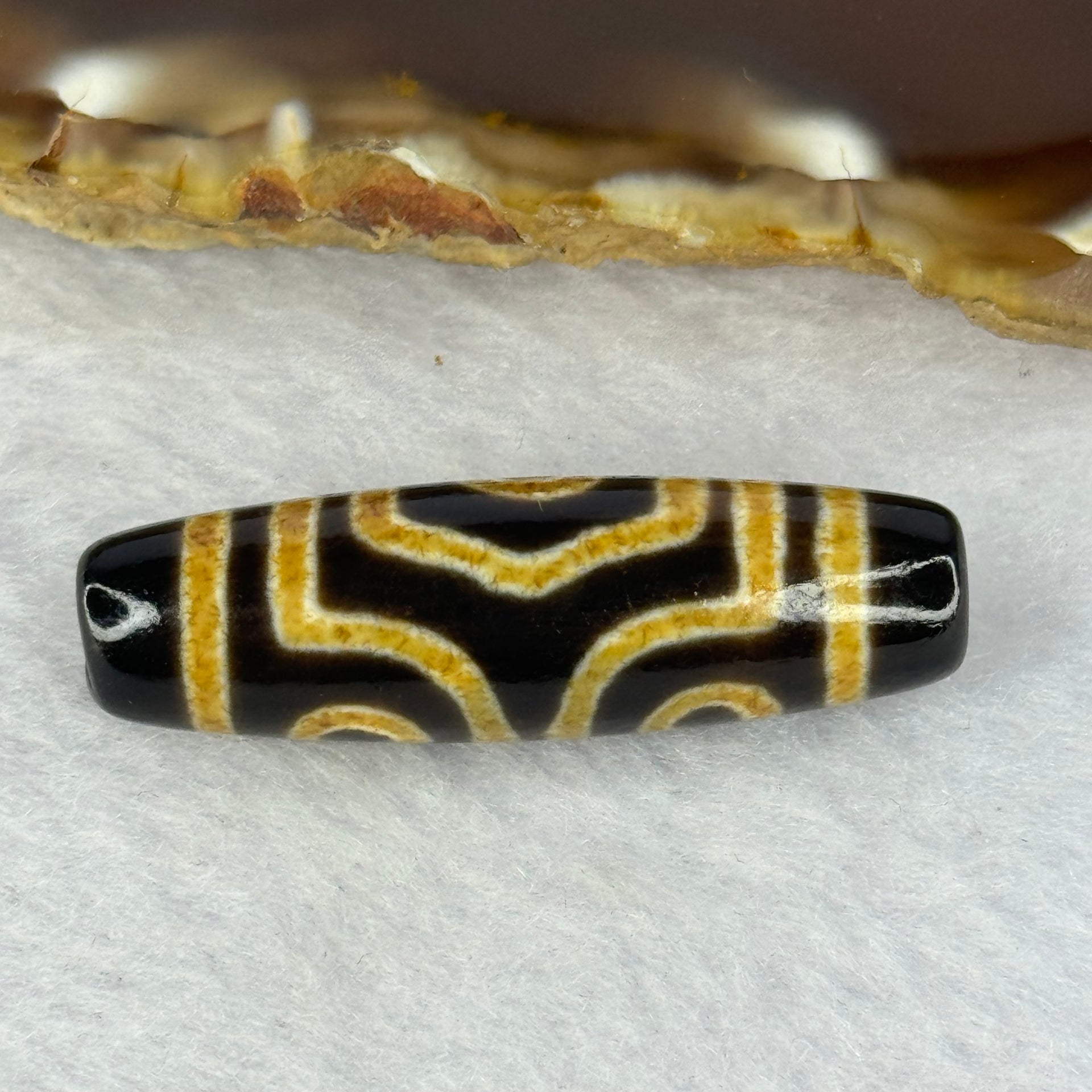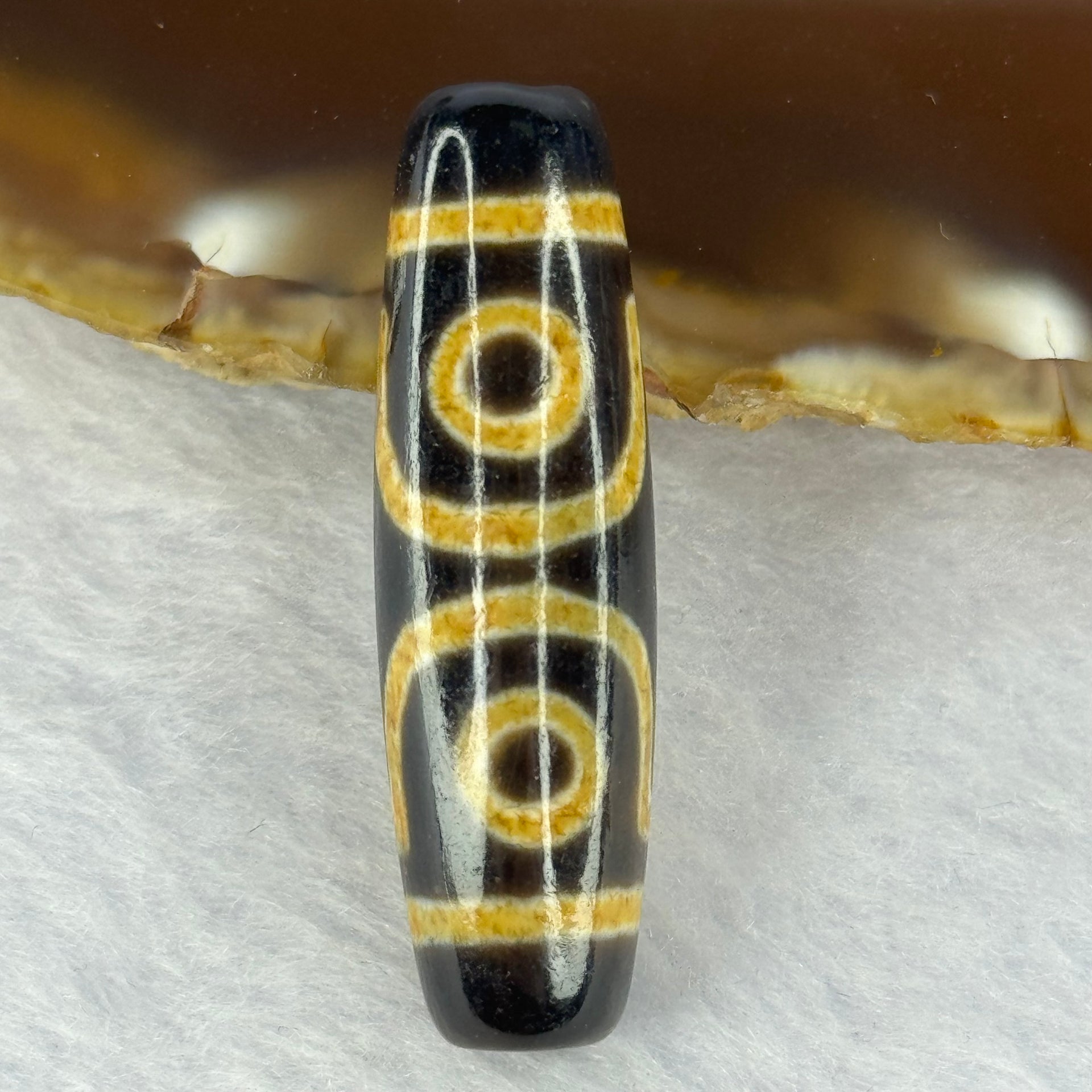 Natural Powerful Tibetan Old Oily Agate 3 Eyes Dzi Bead Heavenly Master (Tian Zhu) 三眼天诛 7.24g 37.9 by 11.2mm