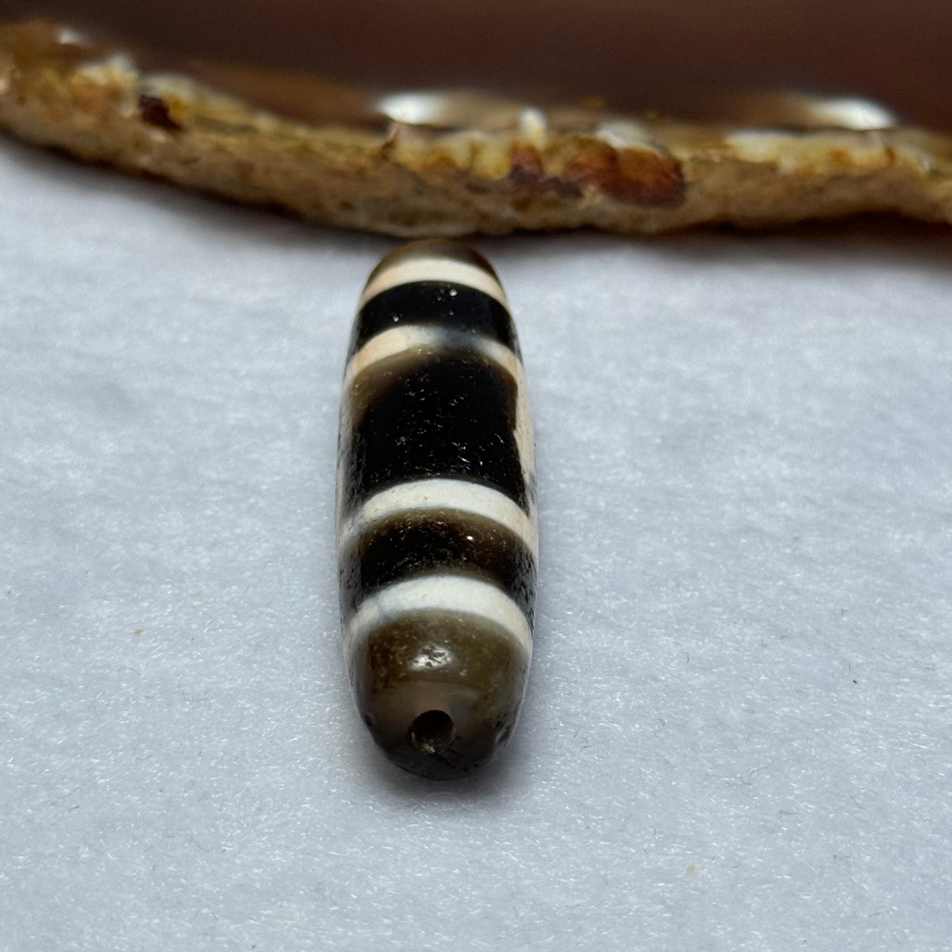 Natural Powerful Tibetan Old Oily Agate Sky Door Serenity 1 Eye Dzi Bead Heavenly Master (Tian Zhu) 一眼天诛 12.55g 47.9 by 12.6mm