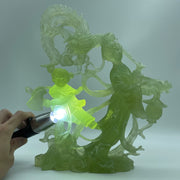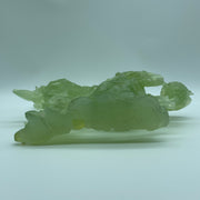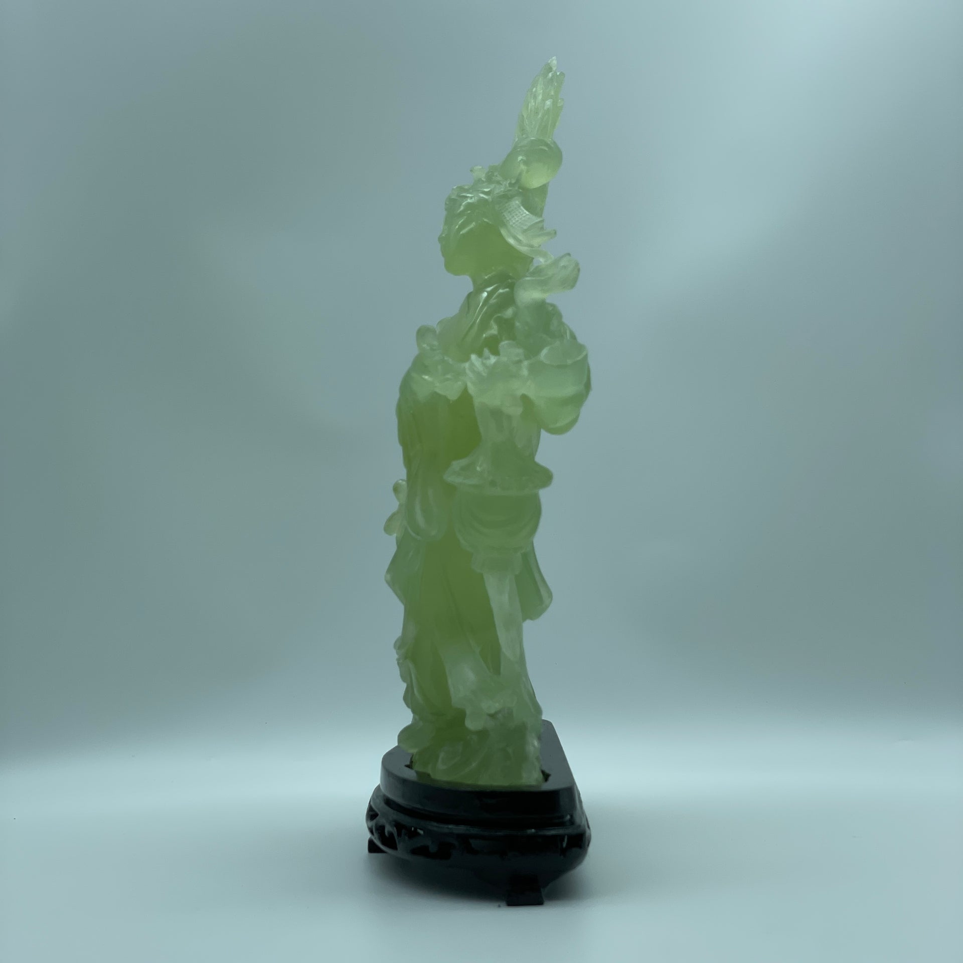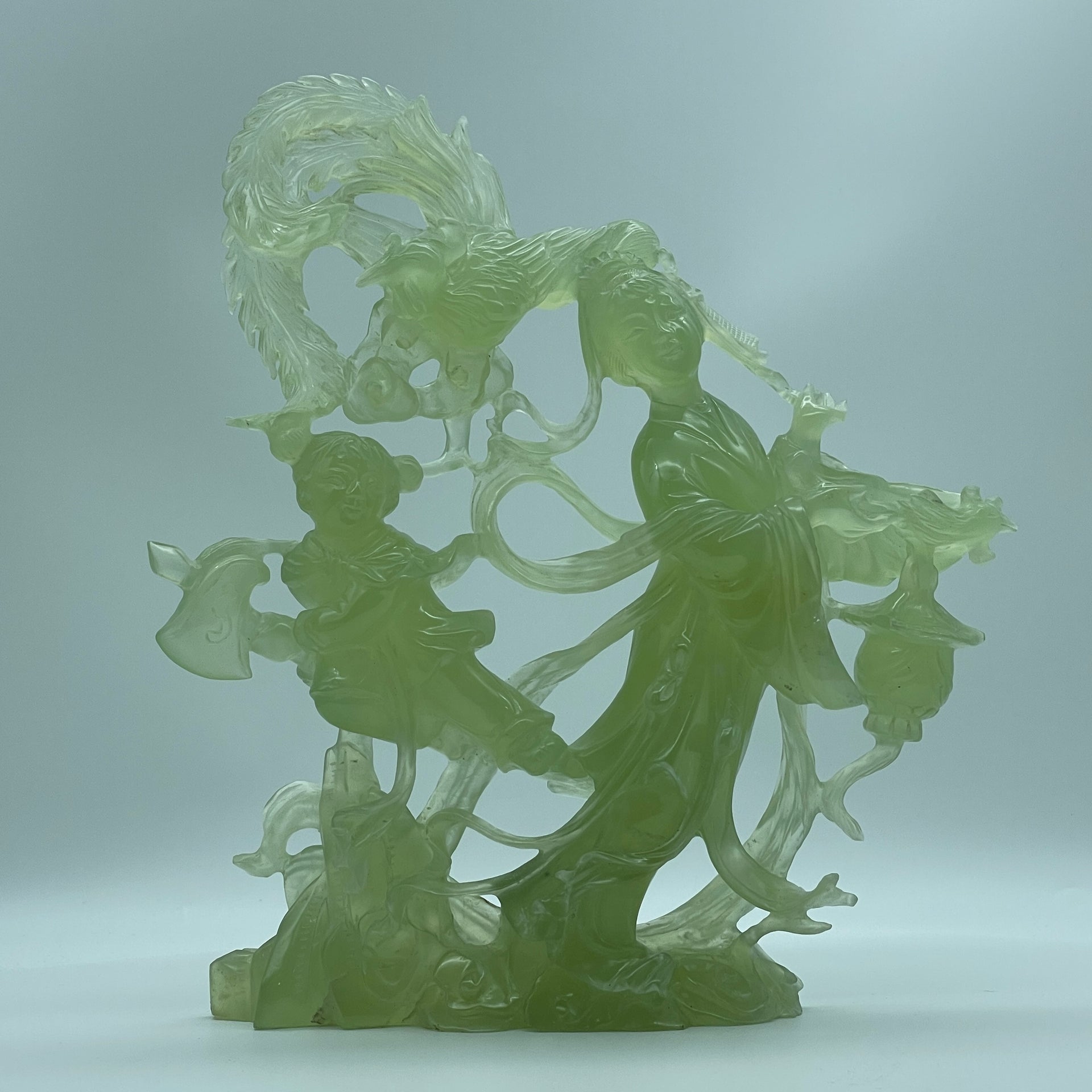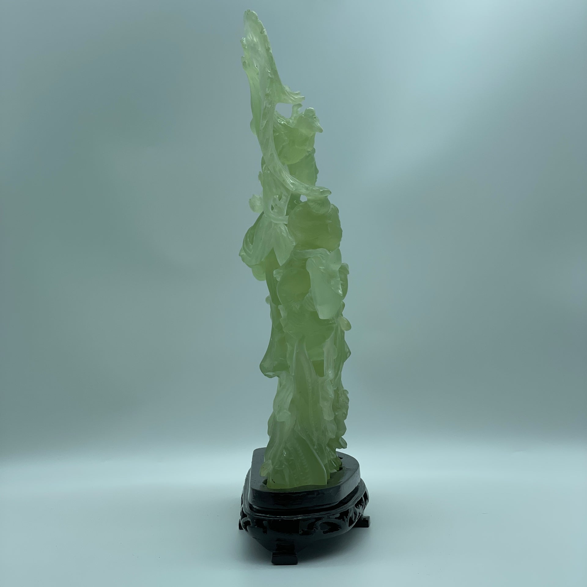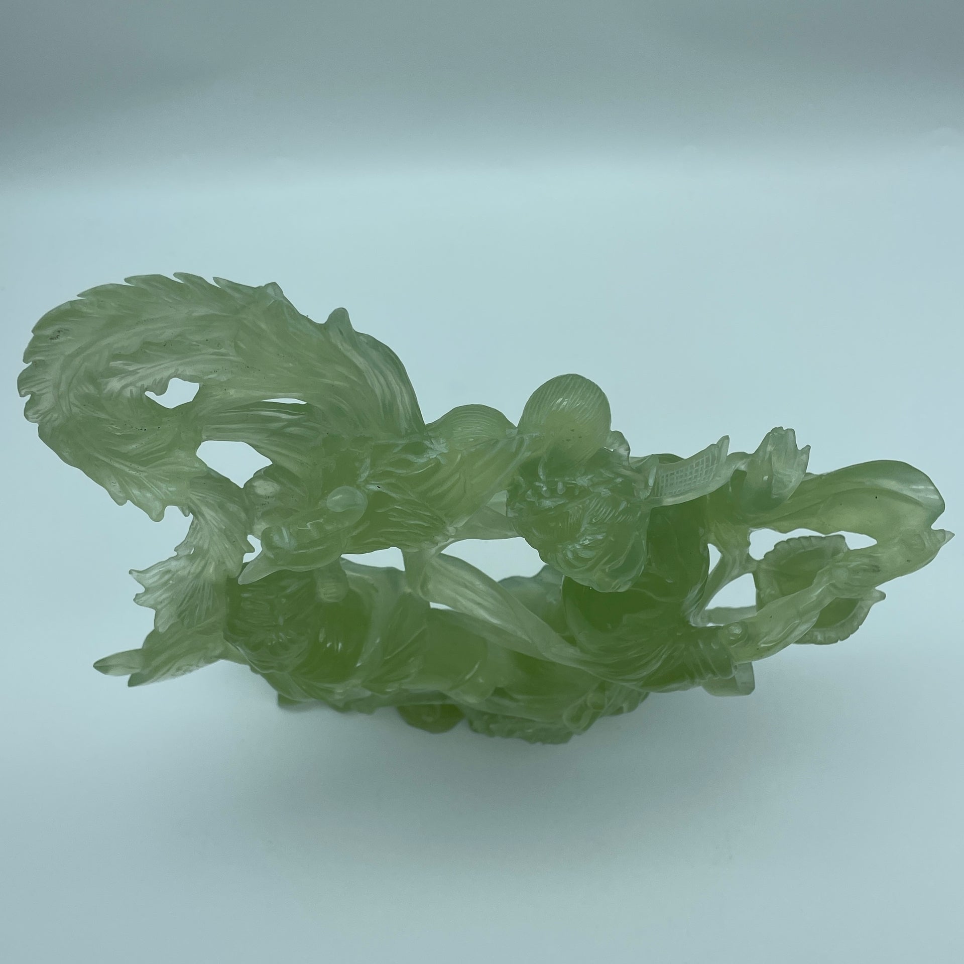 Natural Semi Icy Green Serpentine Fairy with Ne Zha and Phoenix with Wooden Stand Display 1,607.0g 248.0 by 80.0 by 198.0mm