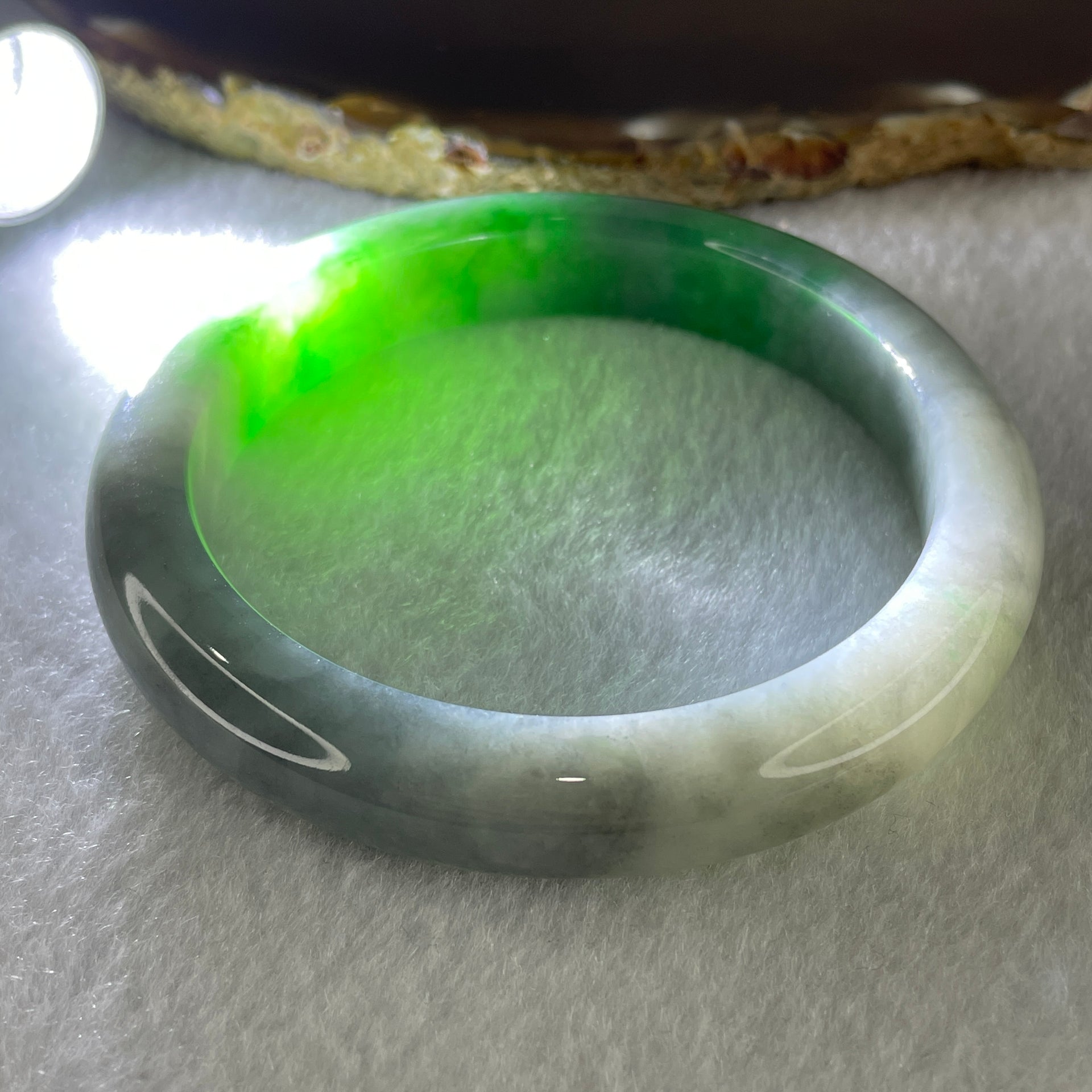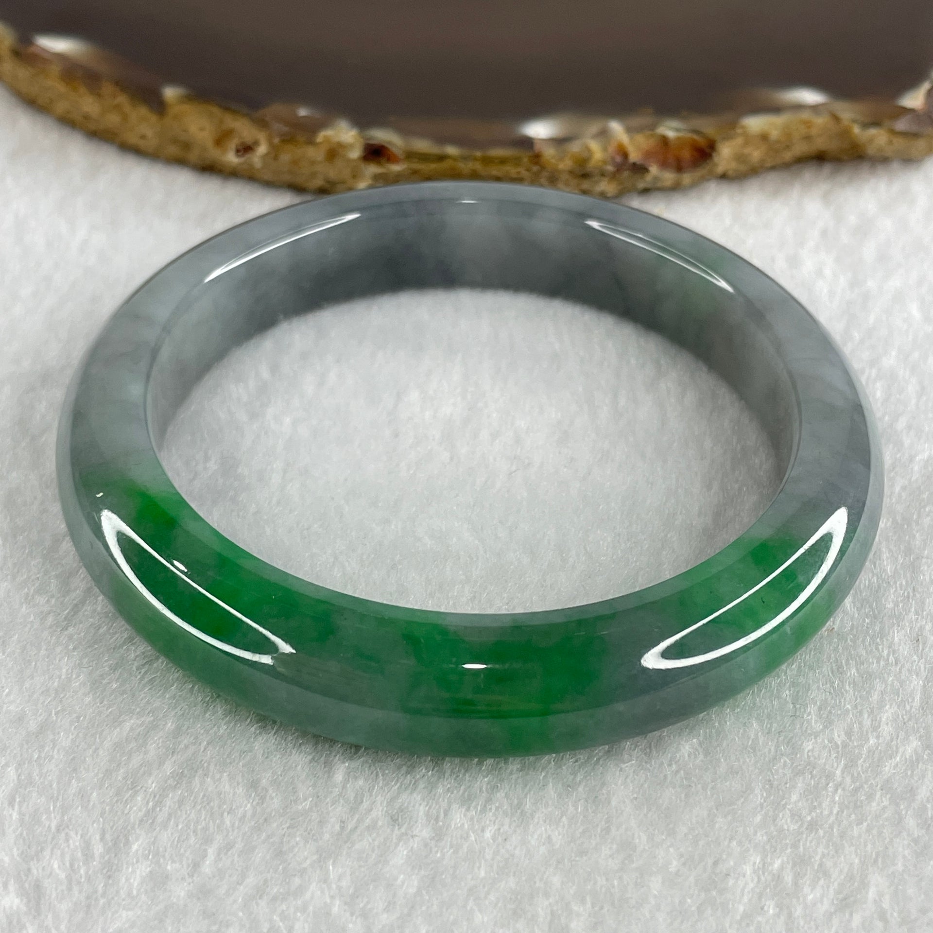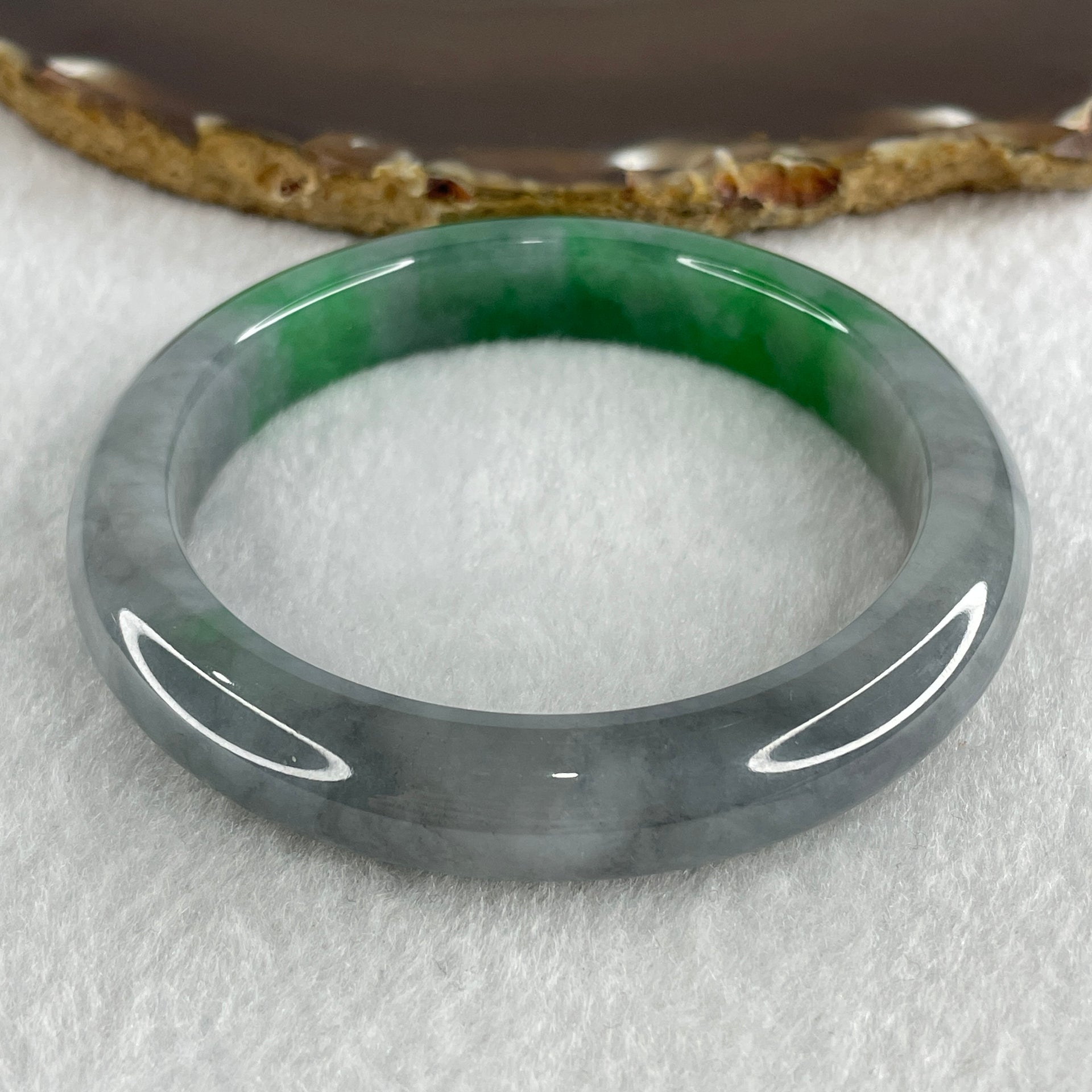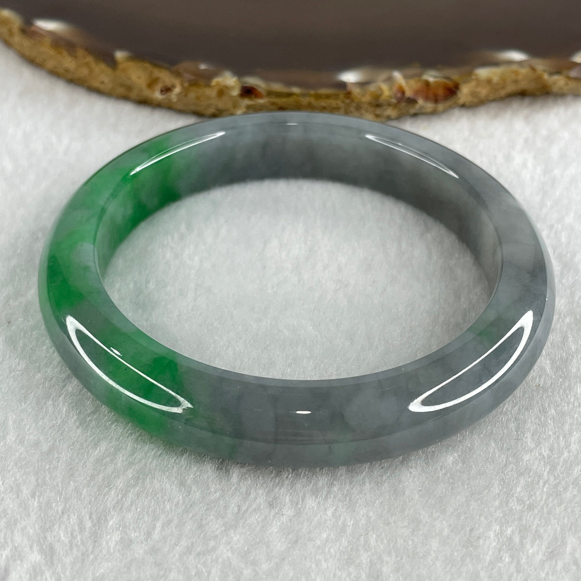 Rare Natural Type A Wuji Grey with High End Bright Green Jadeite Bangle 59.74g Inner Diameter 58.9mm 11.4 by 9.0mm
