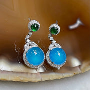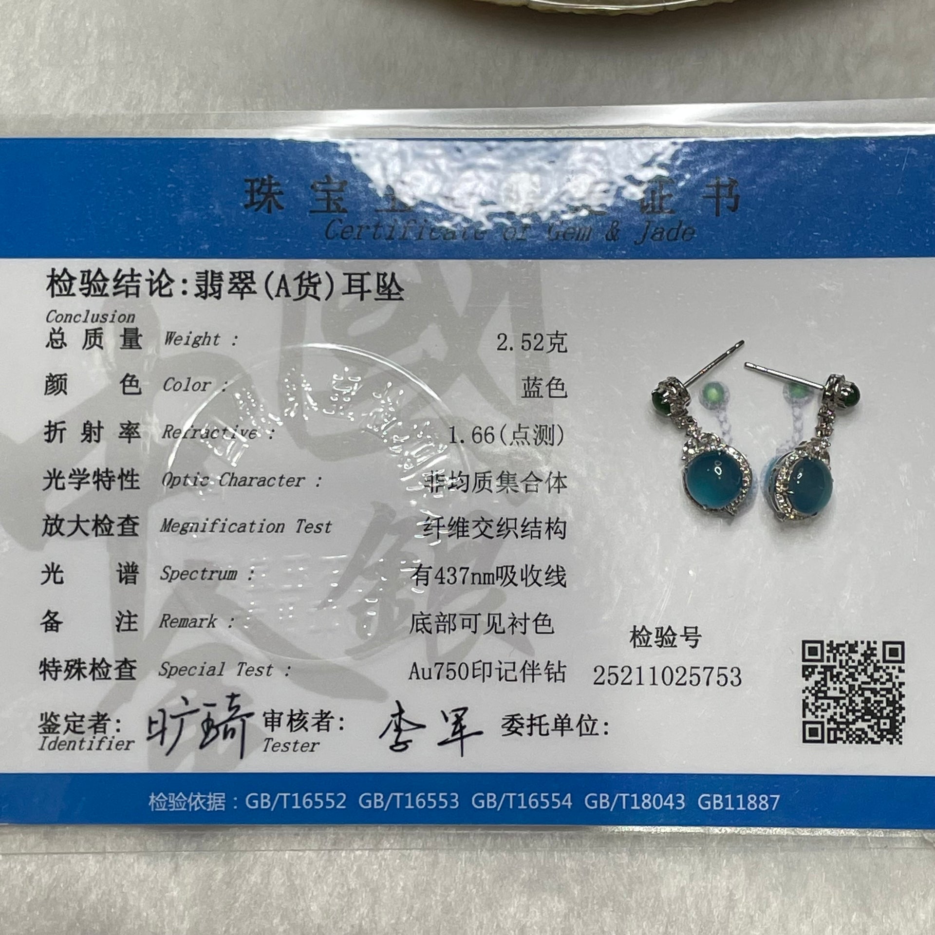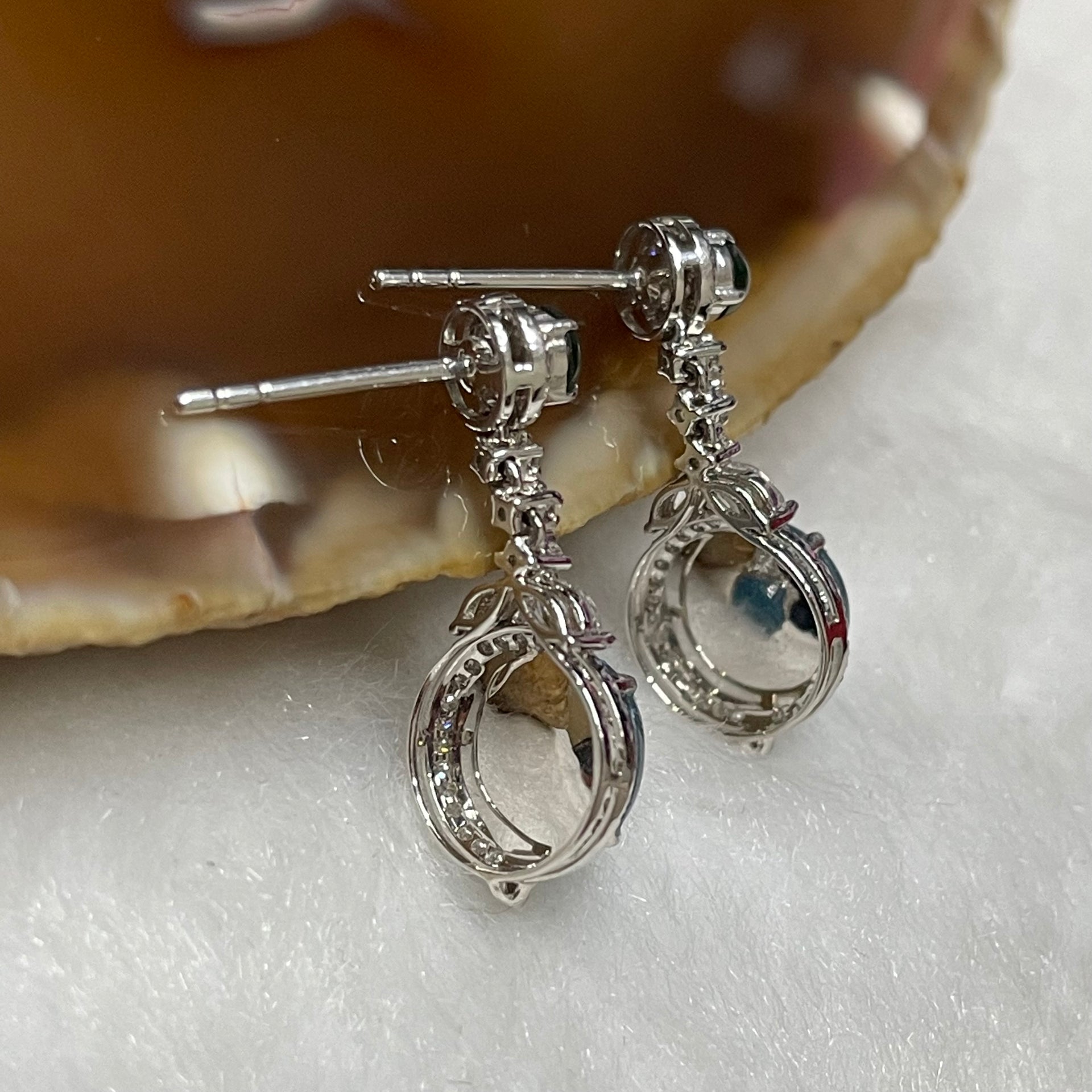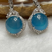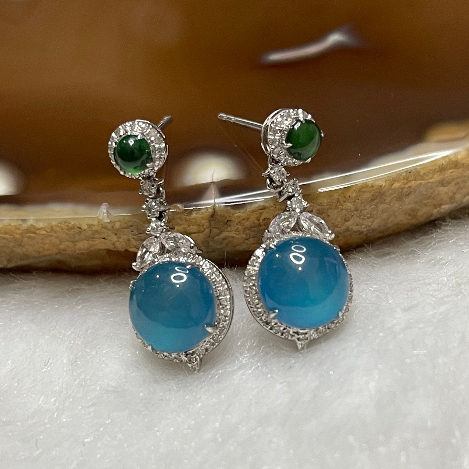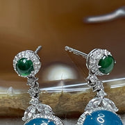 RARE Type A Blue Jade Jadeite Earring 18k white gold, natural diamonds & white sapphires 2.52g 21.7 by 8.7 by 5.2mm