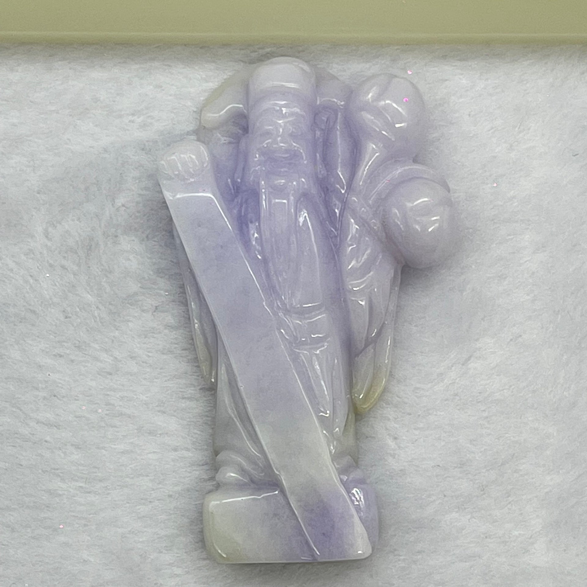 Type A Bright Lavender with Yellow Piao Hua Jadeite God of Fortune Cai Sheng Feng Shui Wealth Pendant 49.57g 71.1 by 41.1 by 11.8mm