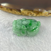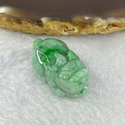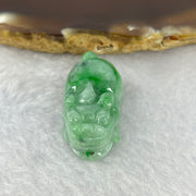 Type A Green with Spicy Green Flora Piao Hua Jadeite Pixiu Pendent A货浅绿漂辣绿花色翡翠貔貅牌 8.74g 24.8 by 14.0 by 12.1 mm