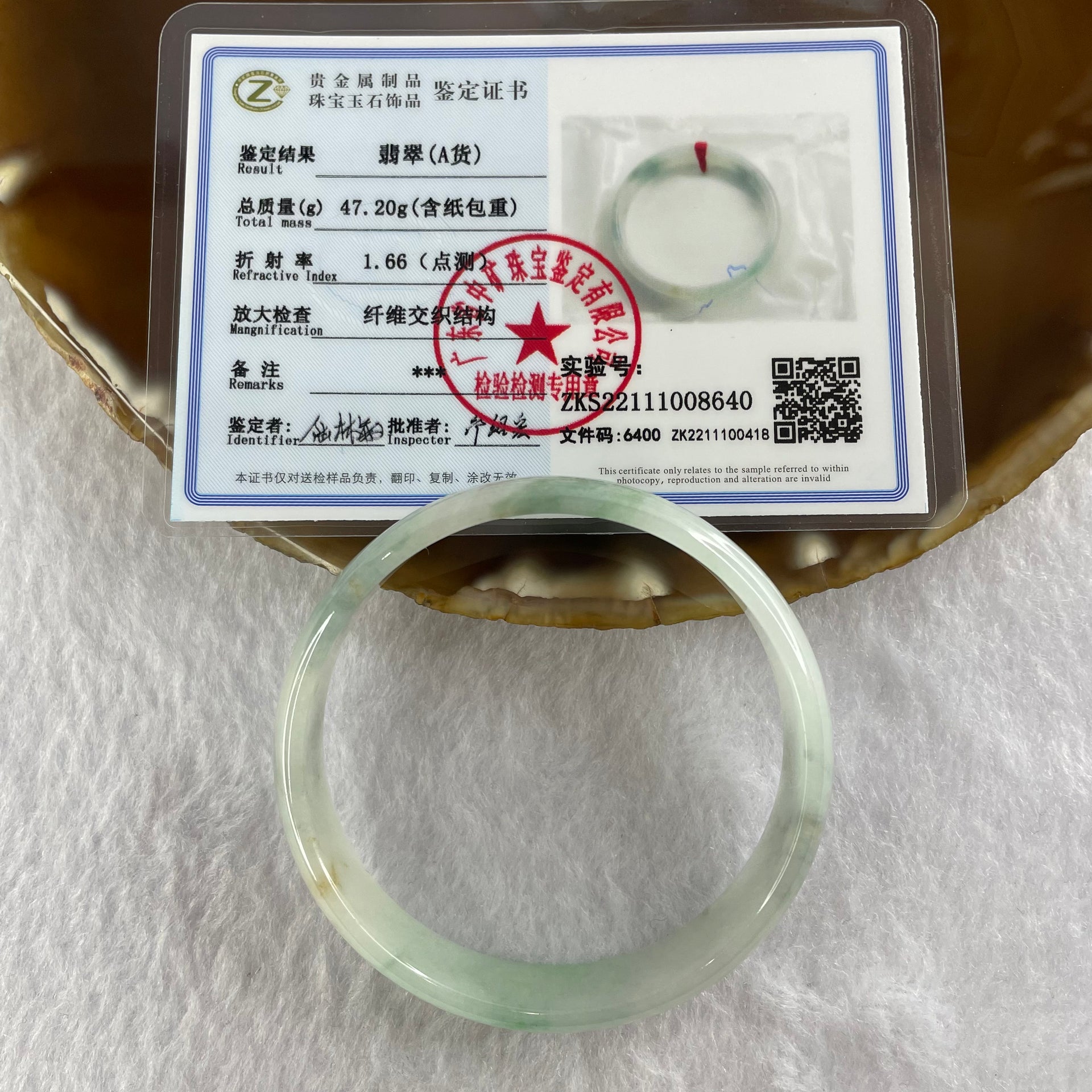 Type A Jelly Sky Blue with Green and Yellow Piao Hua Jade Jadeite Bangle 24.64g inner Dia 53.0mm 12.3 by 4.3mm (Internal Lines)