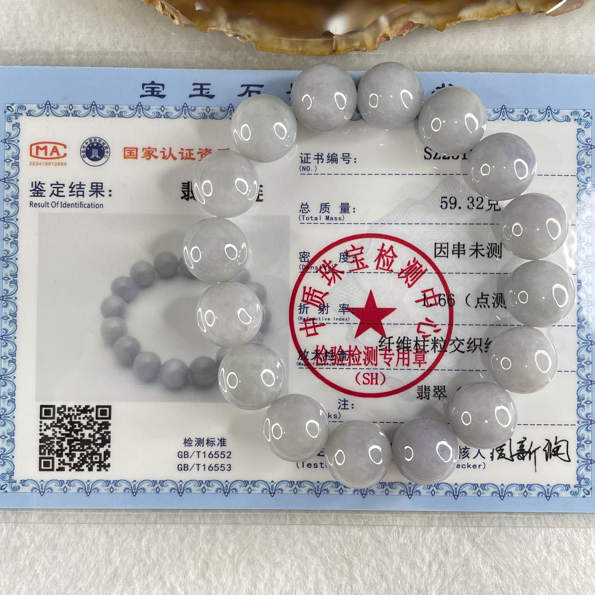 Type A Lavender with Slight Light Green Jadeite Beads Bracelet 59.32g 16.5cm 12.9mm 16 Beads