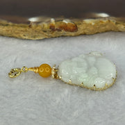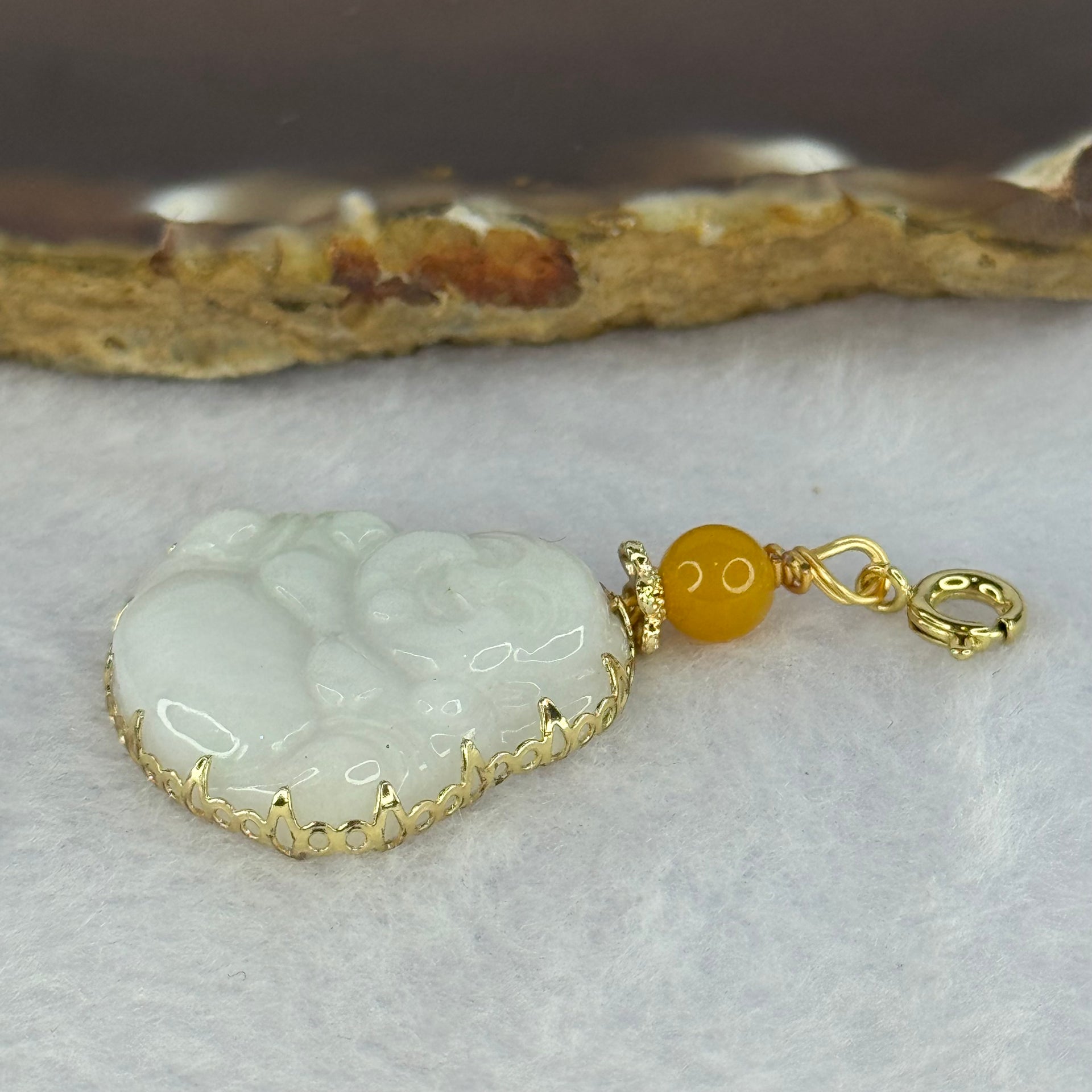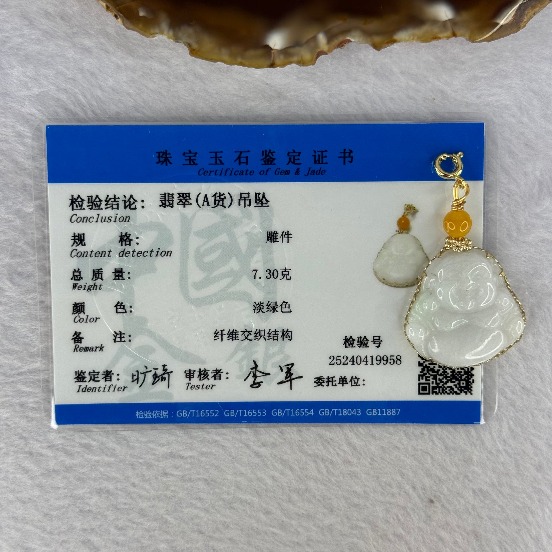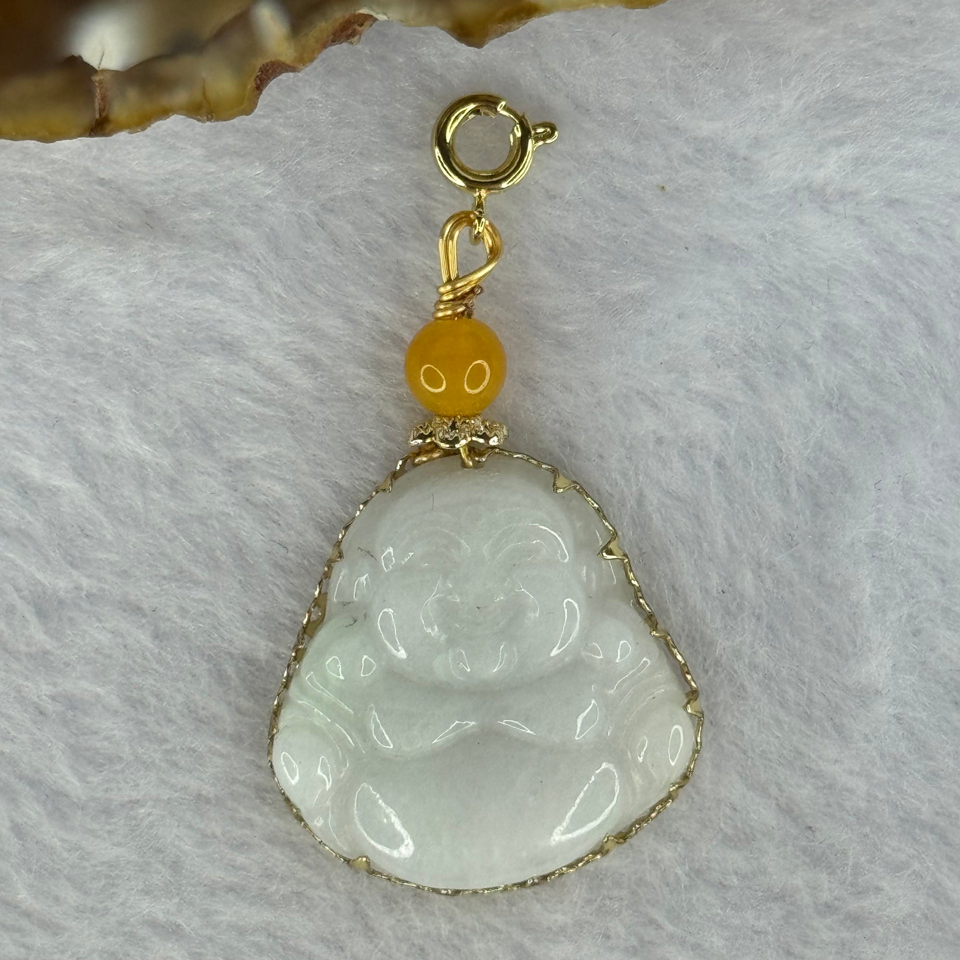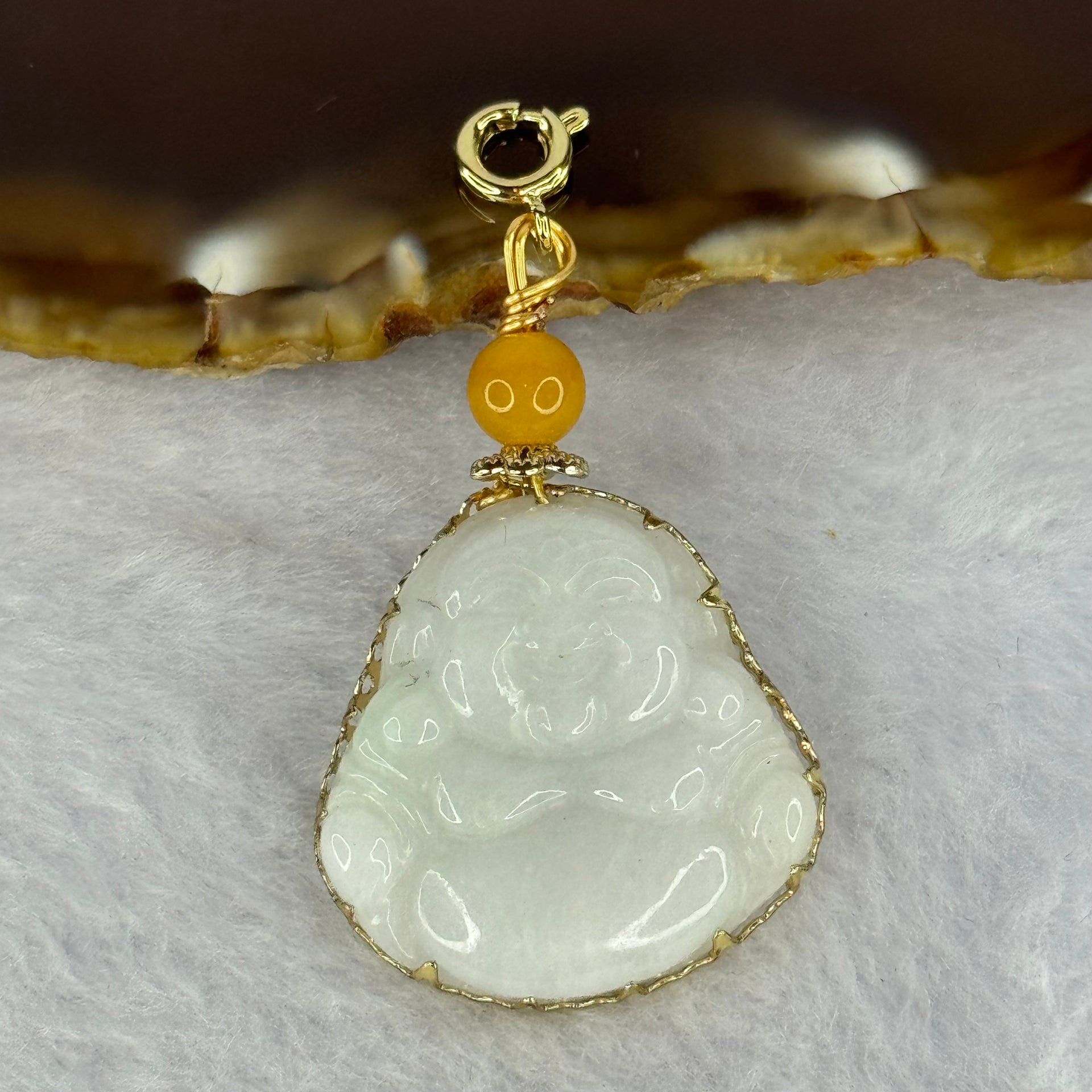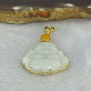 Type A Light Green Lavender Jadeite Milo Buddha 14KGF Charm Pendent 7.30g 23.2 by 24.0 by 5.5mm