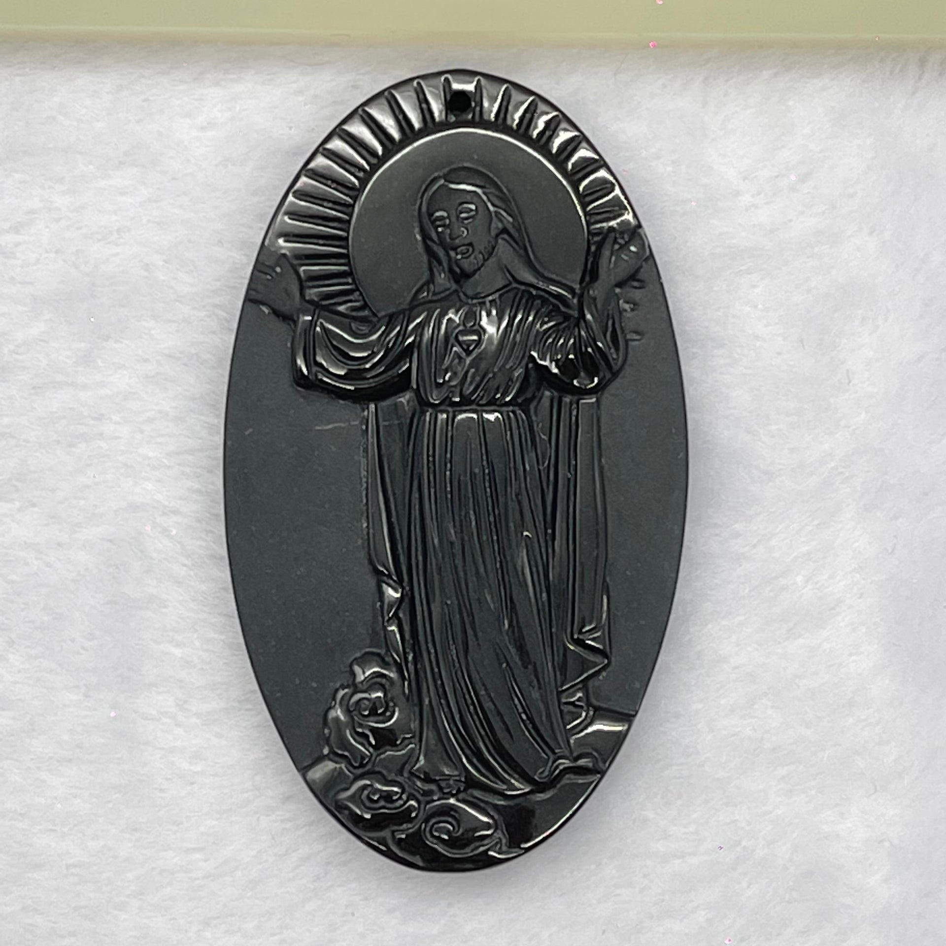 Type A Opaque Black Jade Jadeite Jesus Pendant 44.83g 69.5 by 40.4 by 7.9mm