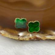 Type A Spicy Green Jade Jadeite Clover 18k Gold Earrings 2.28g 11 by 11 by 1.8mm each