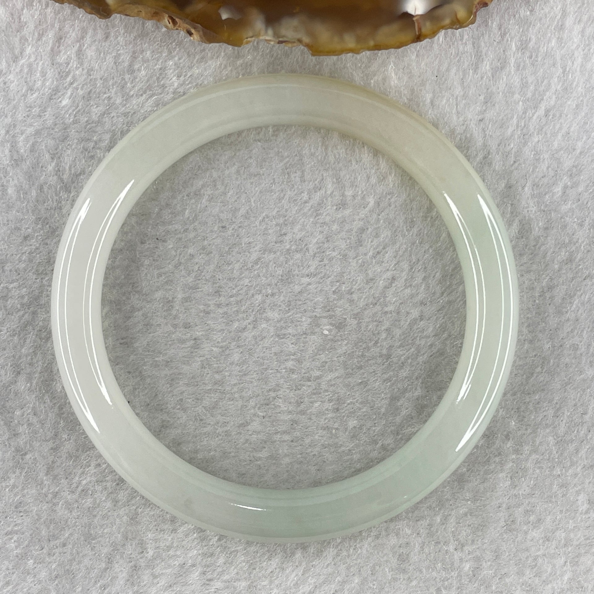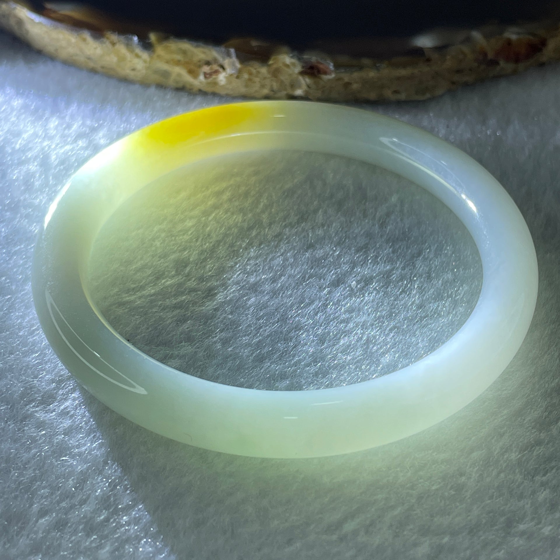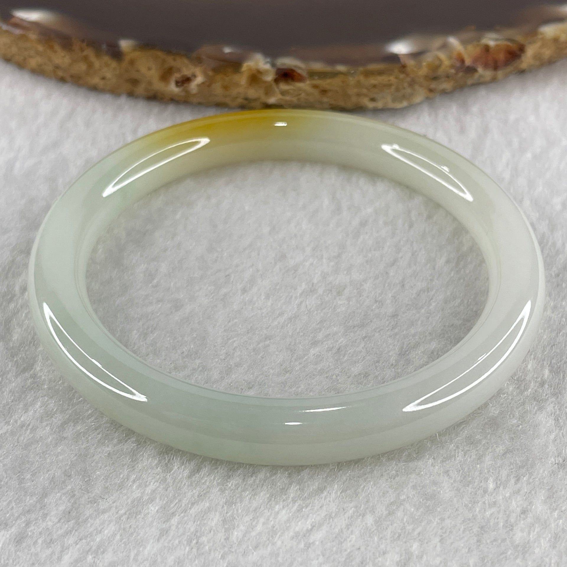 Certified Type A White to Faint Green with Yellowish Spot Jadeite Bangle Internal Diameter 53.1mm 53.18g 7.6 by 7.6m ( Close to Perfect )