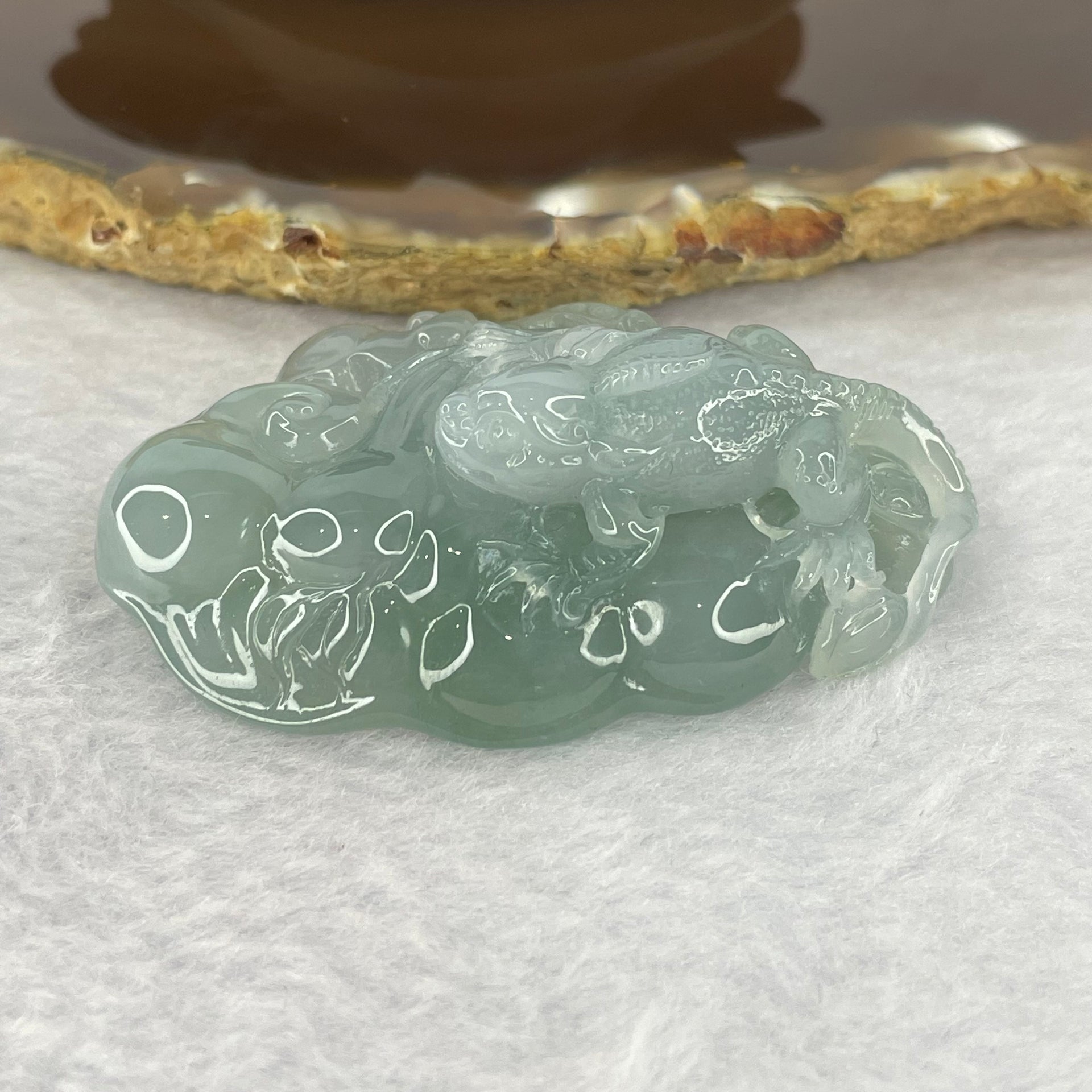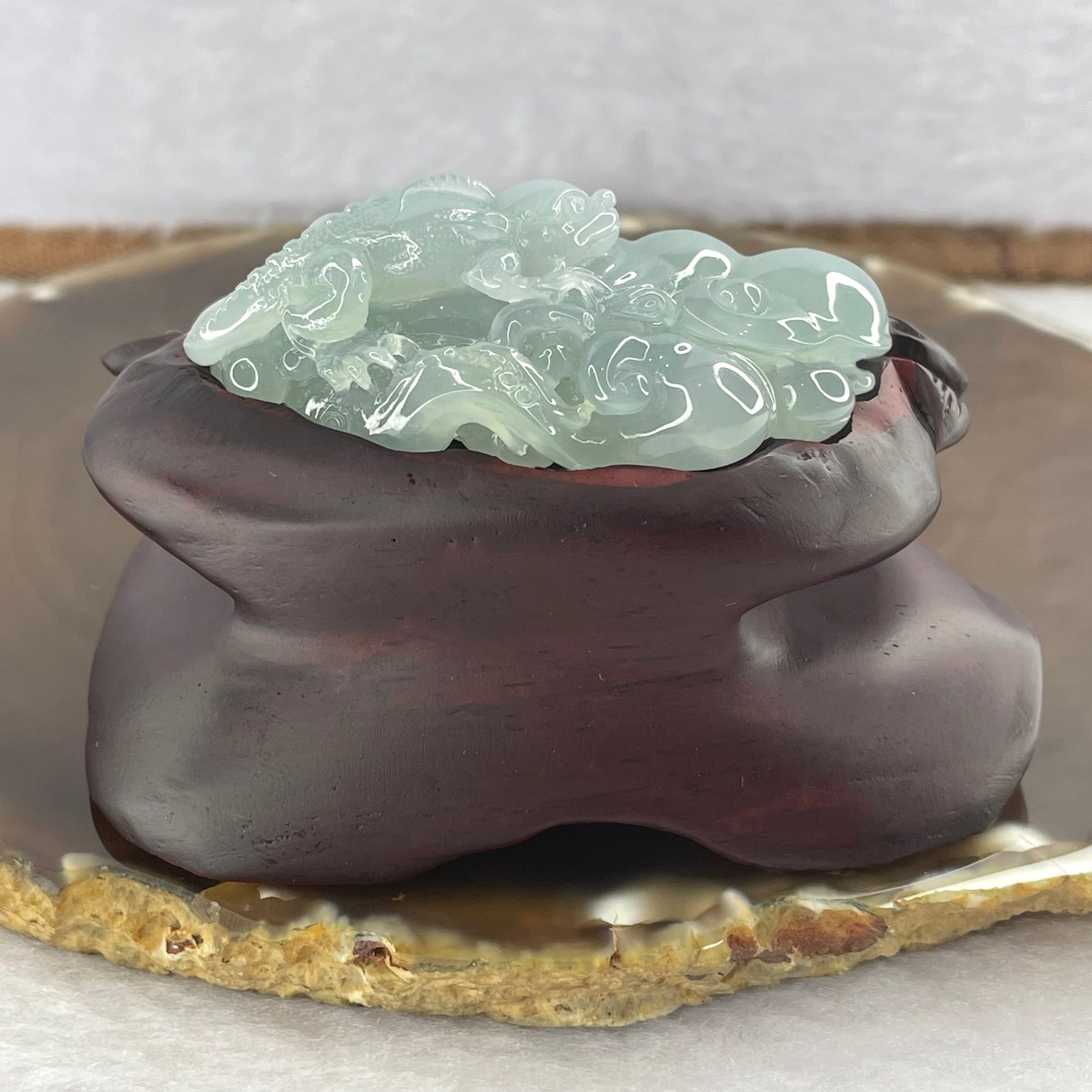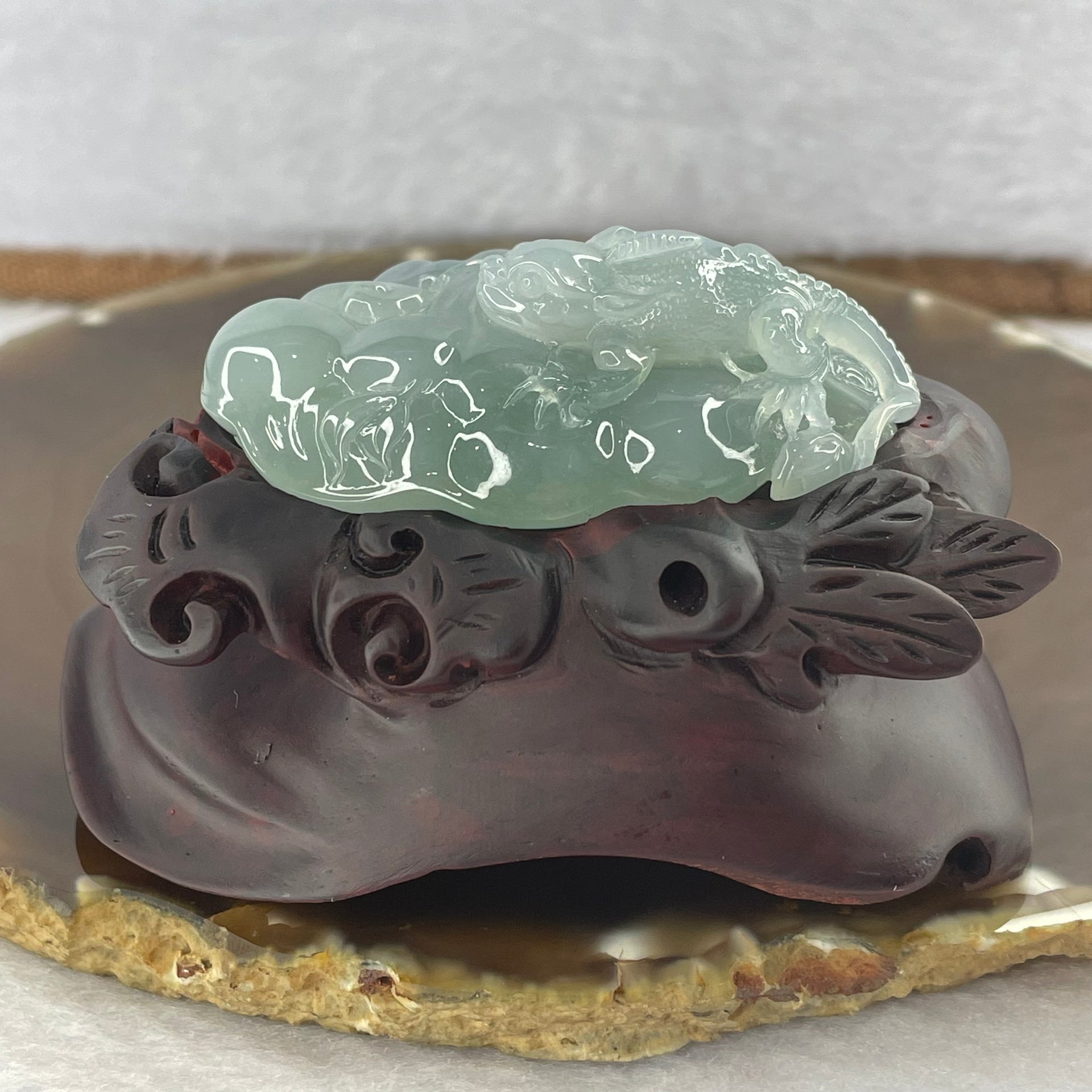 Very Rare High Icy Type A Sky Blue 3D Lizard on 3D Ruyi 42.82g 56.5 by 34.9 by 16.7mm with Wooden Stand