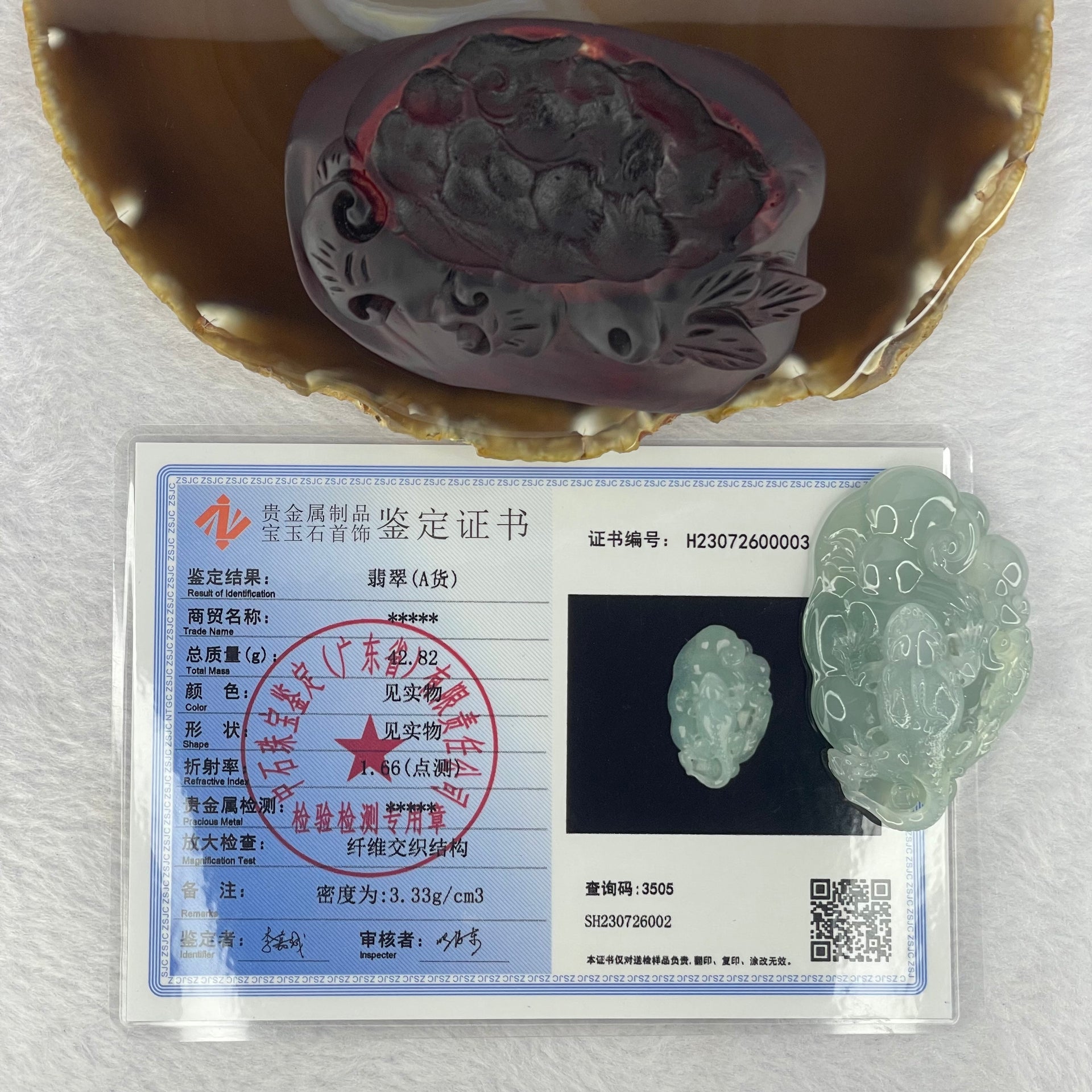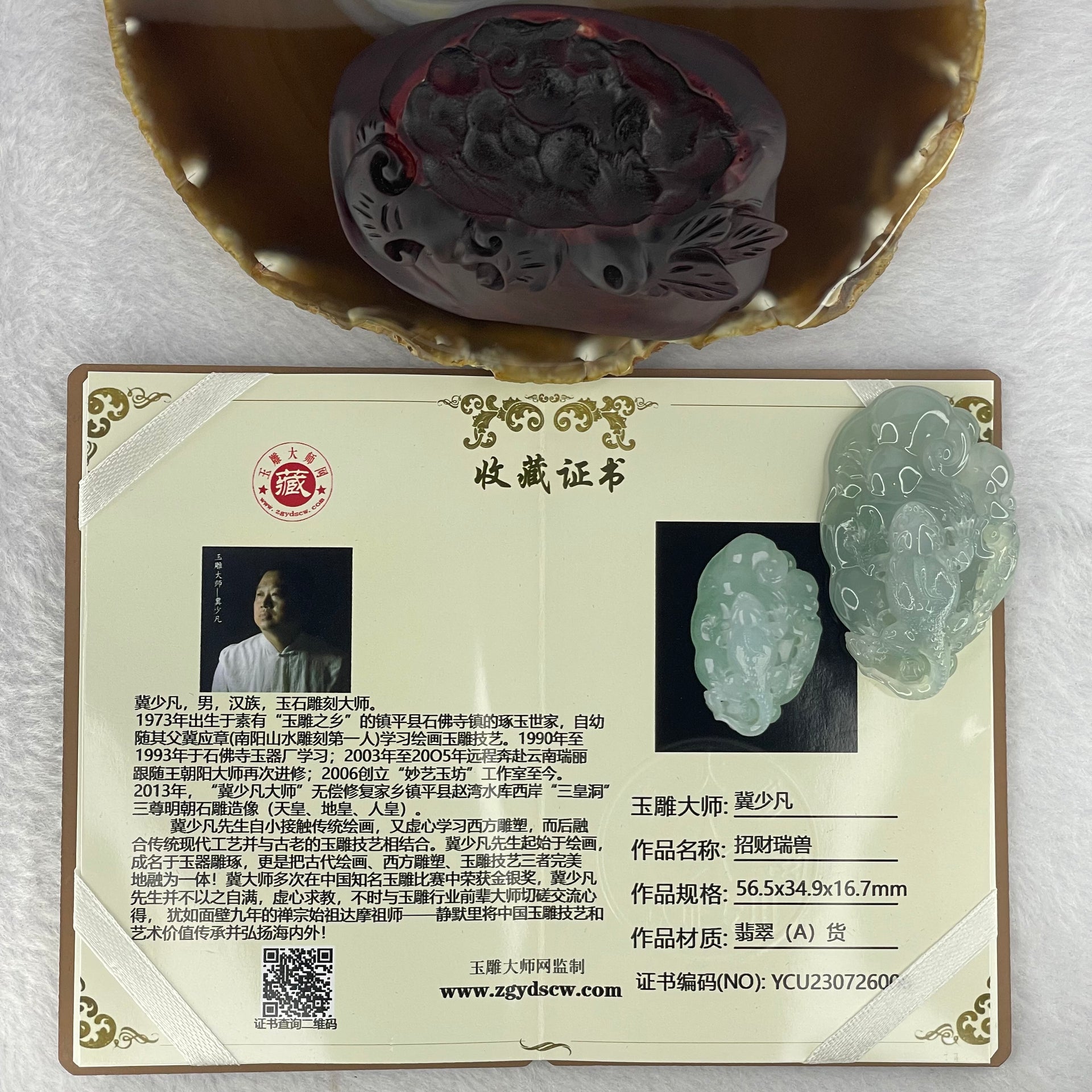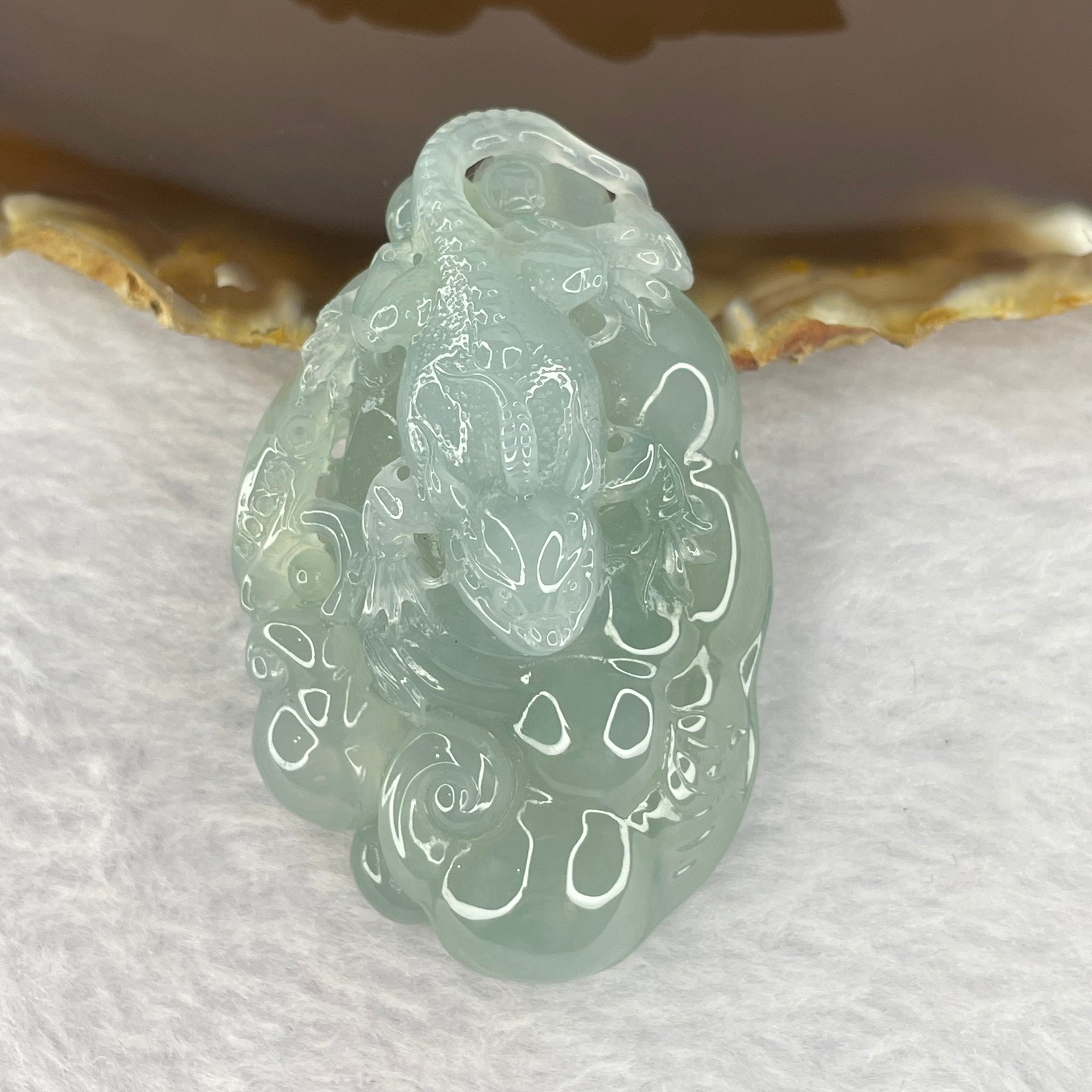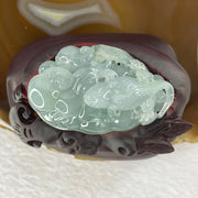 Very Rare High Icy Type A Sky Blue 3D Lizard on 3D Ruyi 42.82g 56.5 by 34.9 by 16.7mm with Wooden Stand