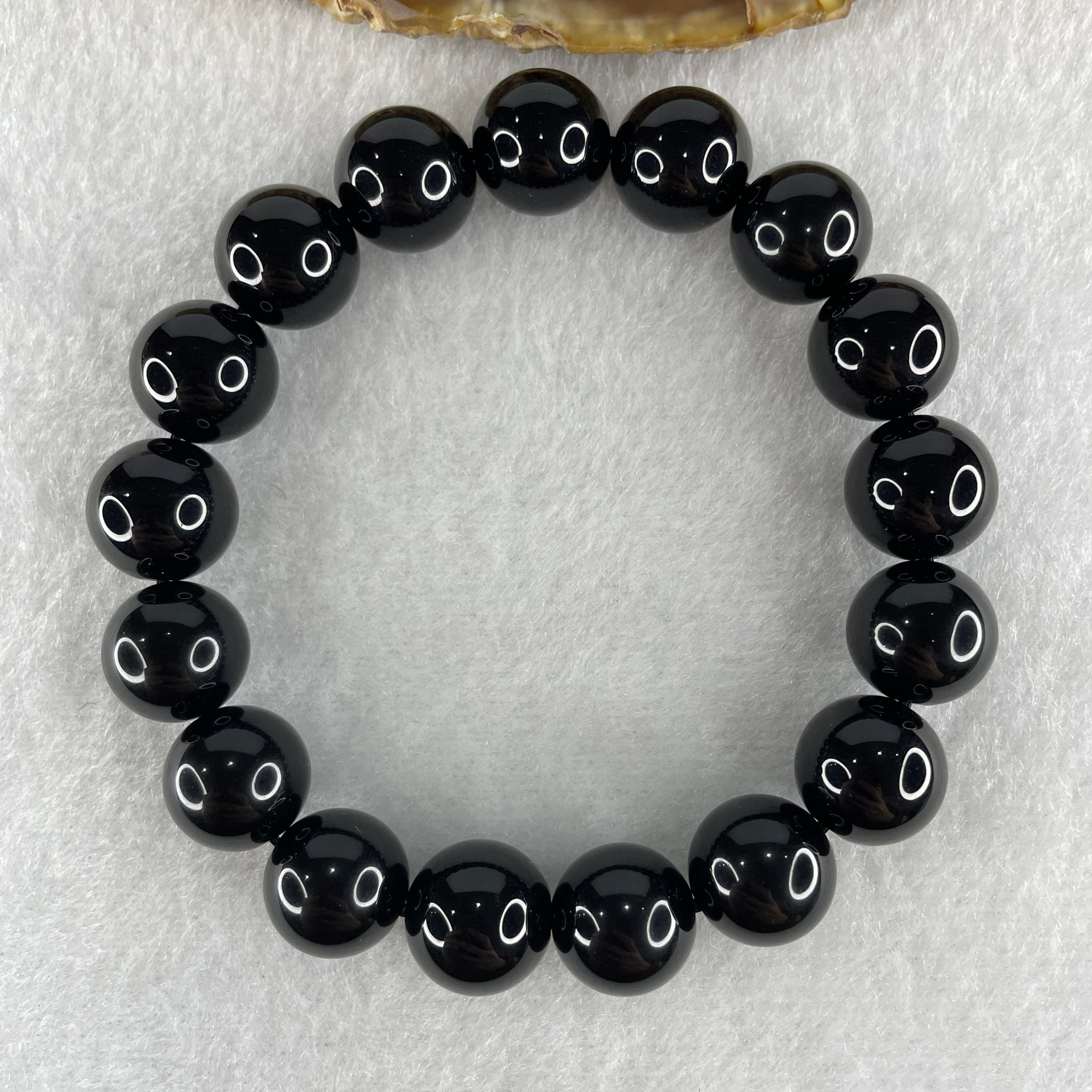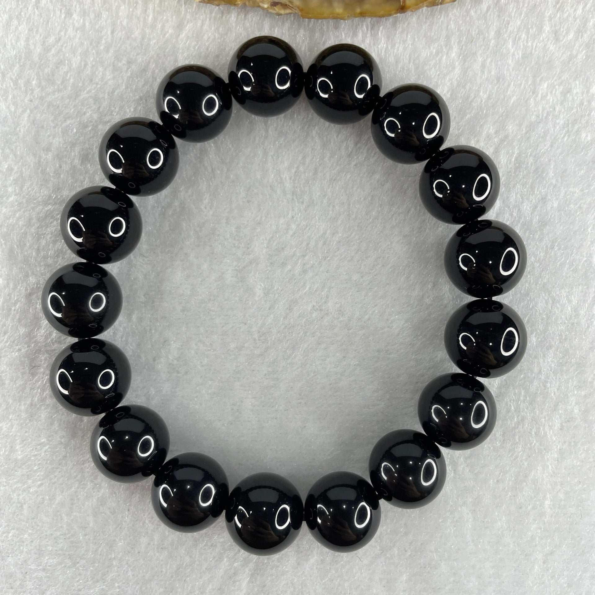 Natural Black Moldavite Meteorite Crystal Beads Bracelet 35.64g 16cm 12.1mm 17 Beads