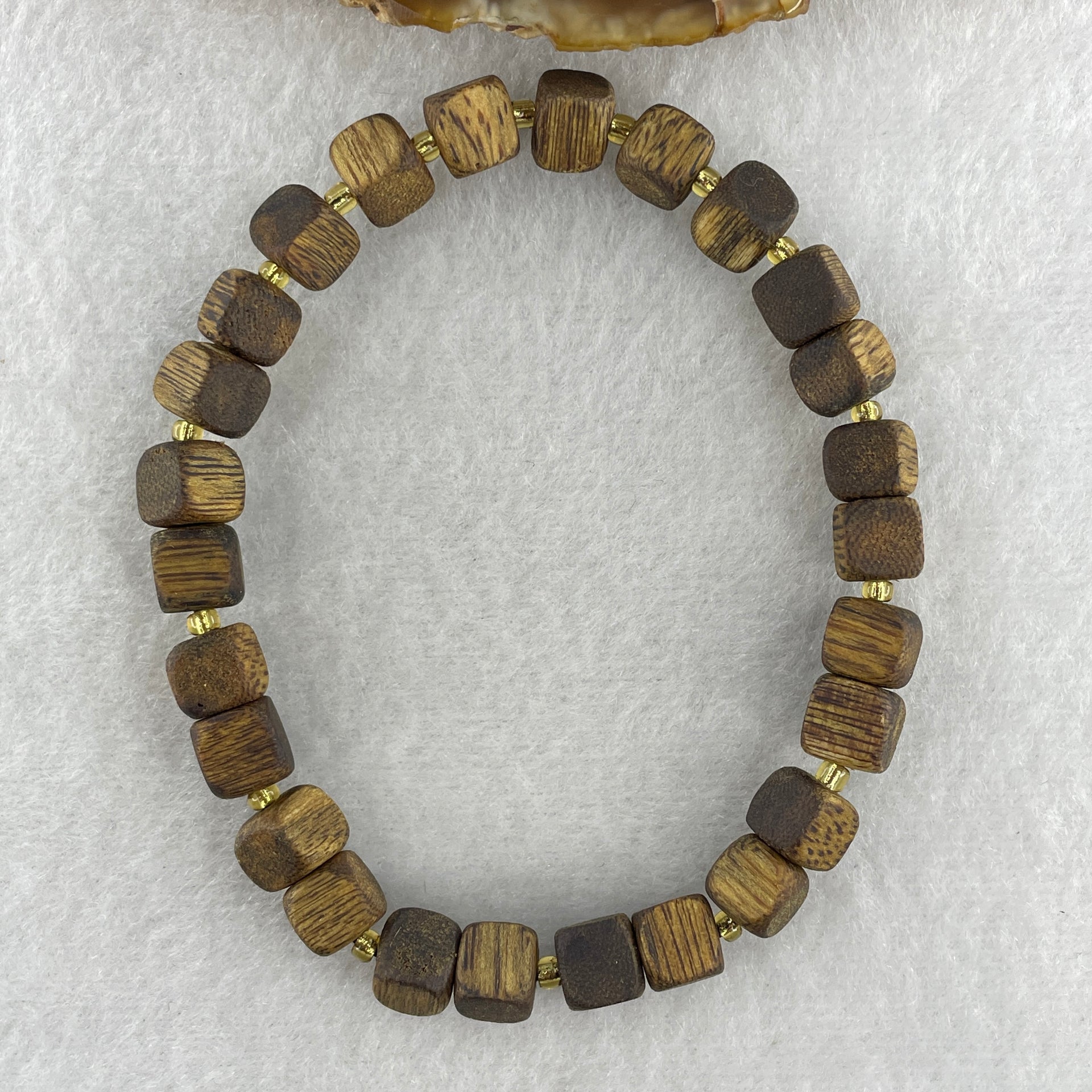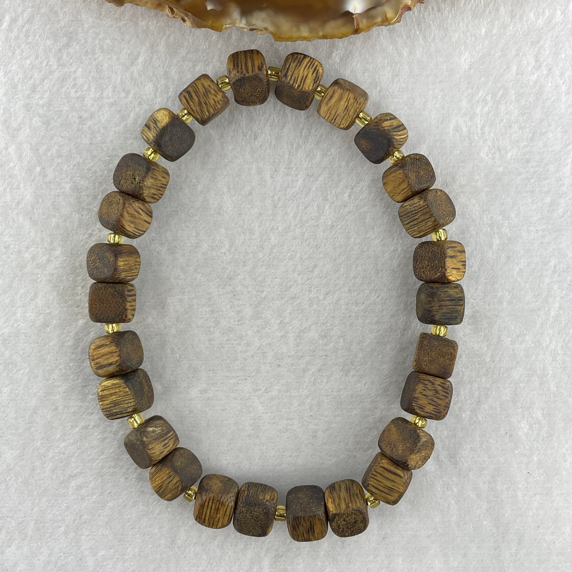 Natural Agarwood Square Beads Bracelet 6.68g 19.5cm 8.4mm 26 Beads