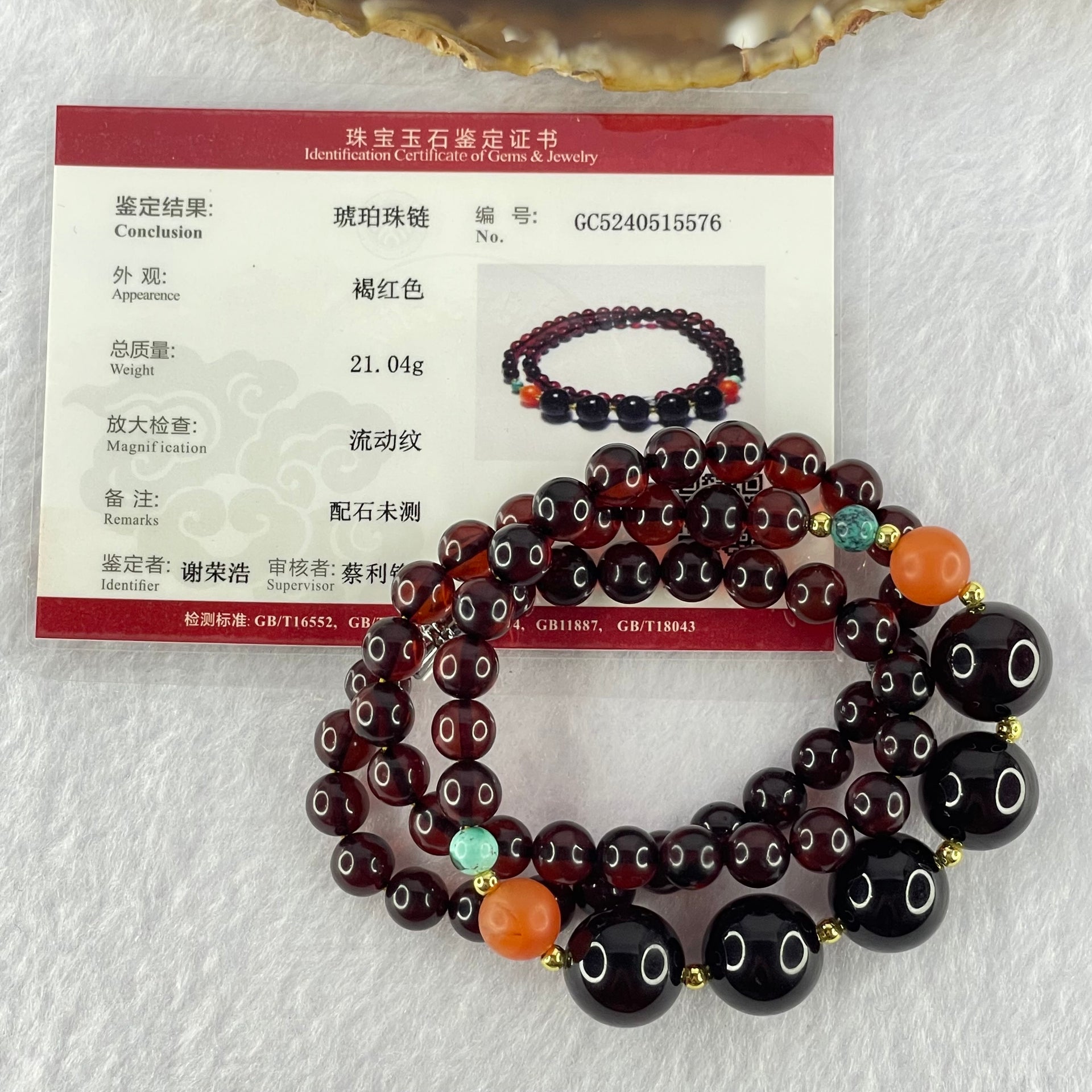 天然黑金王红琥珀珠项链天然黑金翁王琥珀手链 21.04g 4.8cm 7.1 - 13.3mm 59 颗珠子